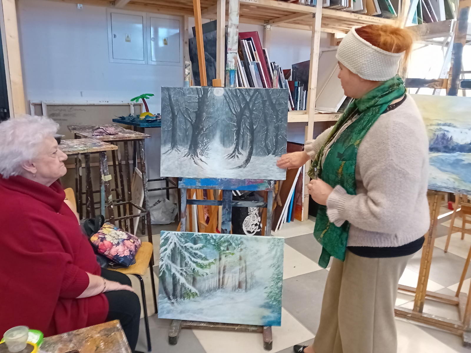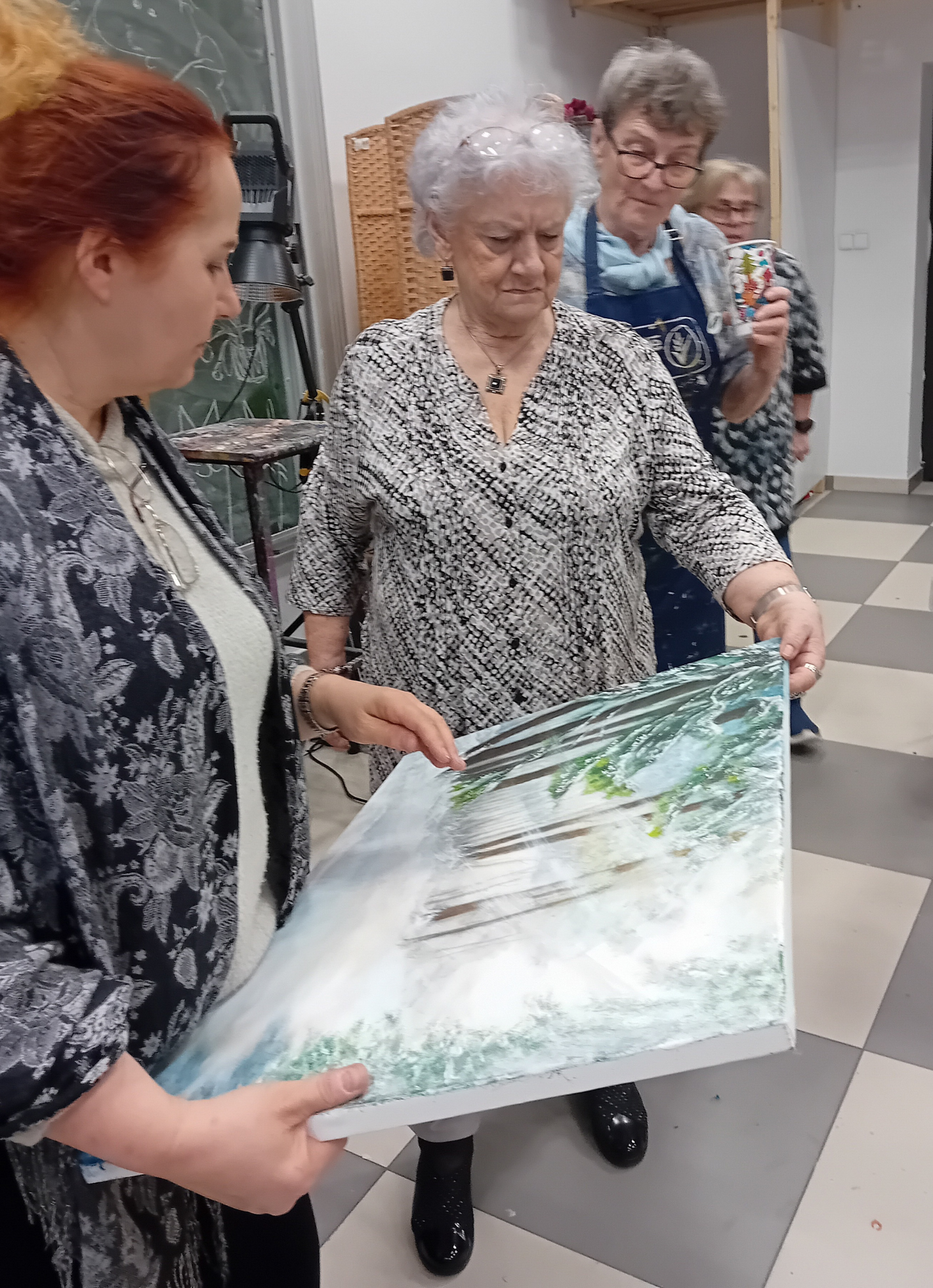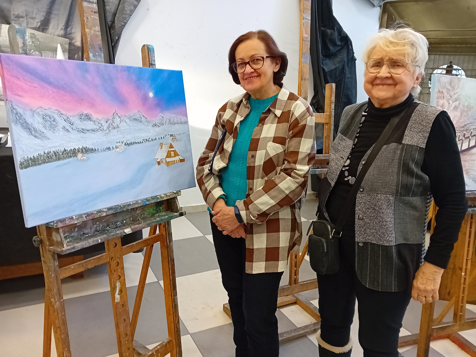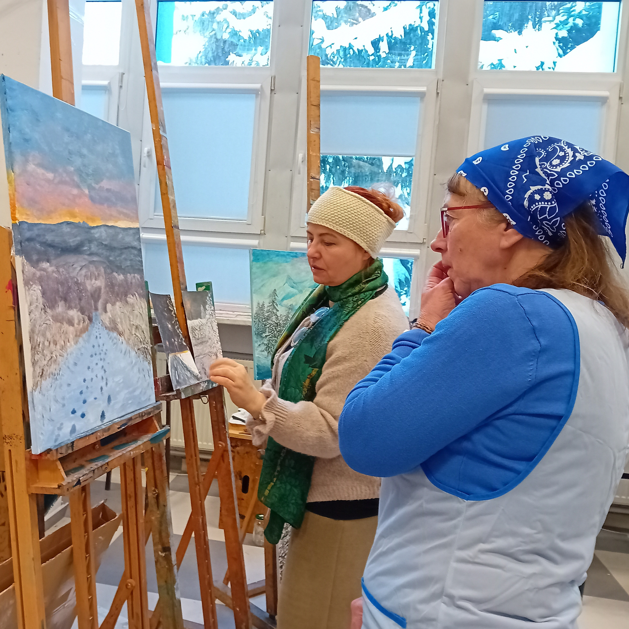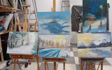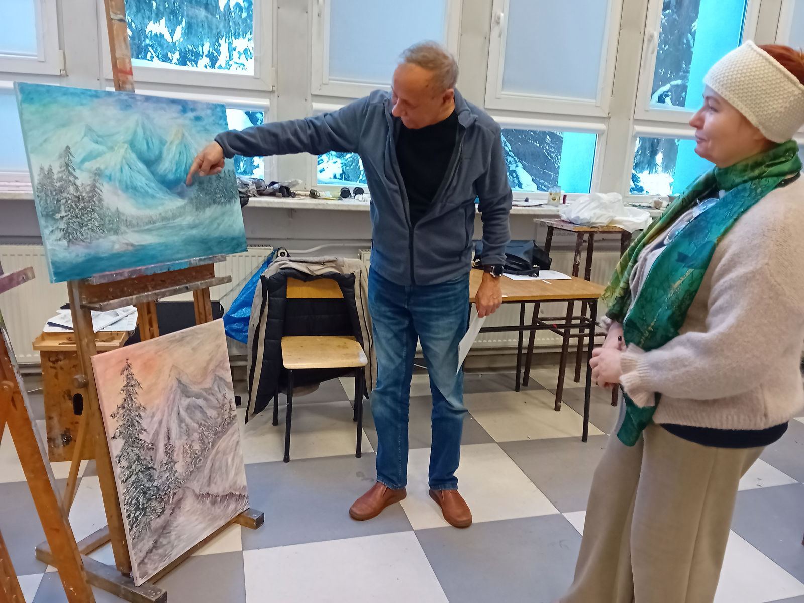 Grupa wybrała temat obrazów – ZIMA. Każdy uczestnik miał namalować 2 obrazy: