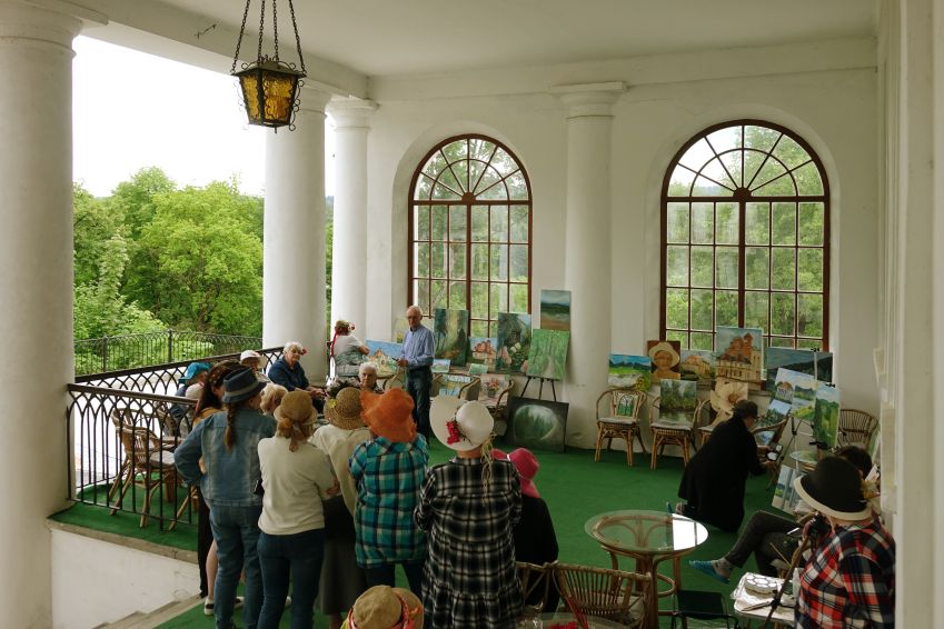 Wiosenny plener Klubu malarstwa UTW-UR miał miejsce w Lesku w dniach 23-27.05.2022 r. Uczestnicy mieszkali w komnatach zamkowych dostosowanych do potrzeb XXI w., na posiłki schodzili po 35 spiralnie kręconych schodkach do stylowej jadalni, a malowali na tarasach. Powitali wiosnę kwiatowo-kapeluszową sesją, świętowali urodziny kolegi Zbyszka, wreszcie urządzili na tarasie wystawę swych prac. Syci wrażeń i pełni twórczej energii powrócili 27.05. do domów, wyczekując na plener jesienny.