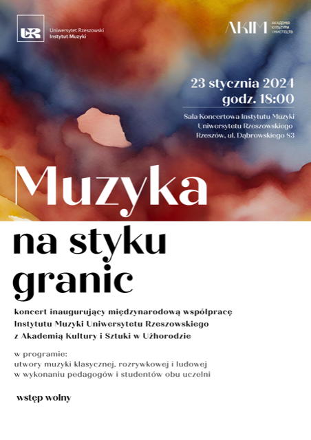 serdecznie zapraszamy w najbliższy wtorek - 23 stycznia o godzinie 18:00 na koncert inaugurujący międzynarodową współpracę Instytutu Muzyki Uniwersytetu Rzeszowskiego z Akademią Kultury i Sztuki w Użhorodzie.