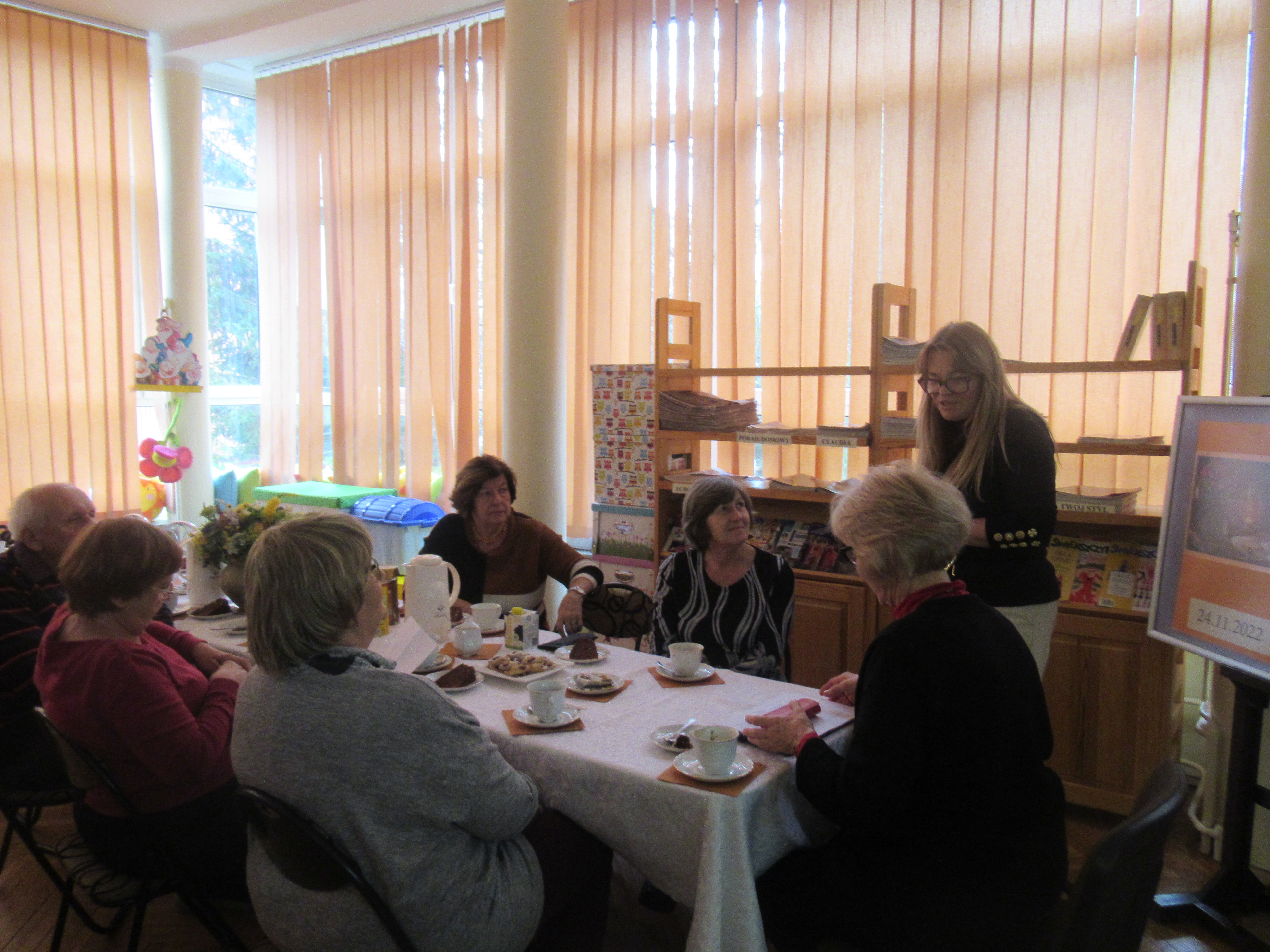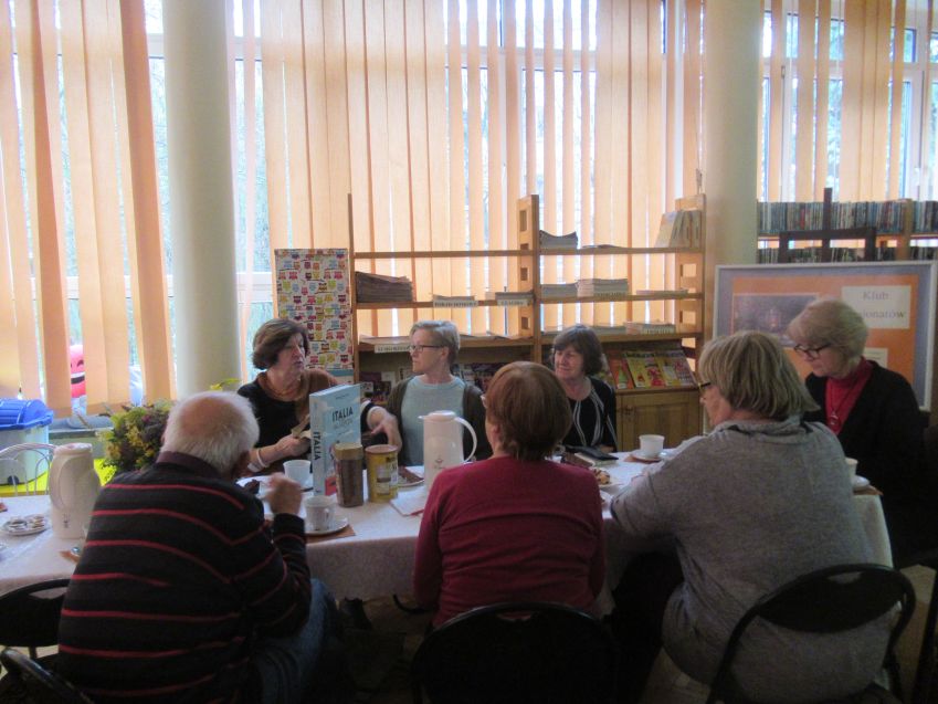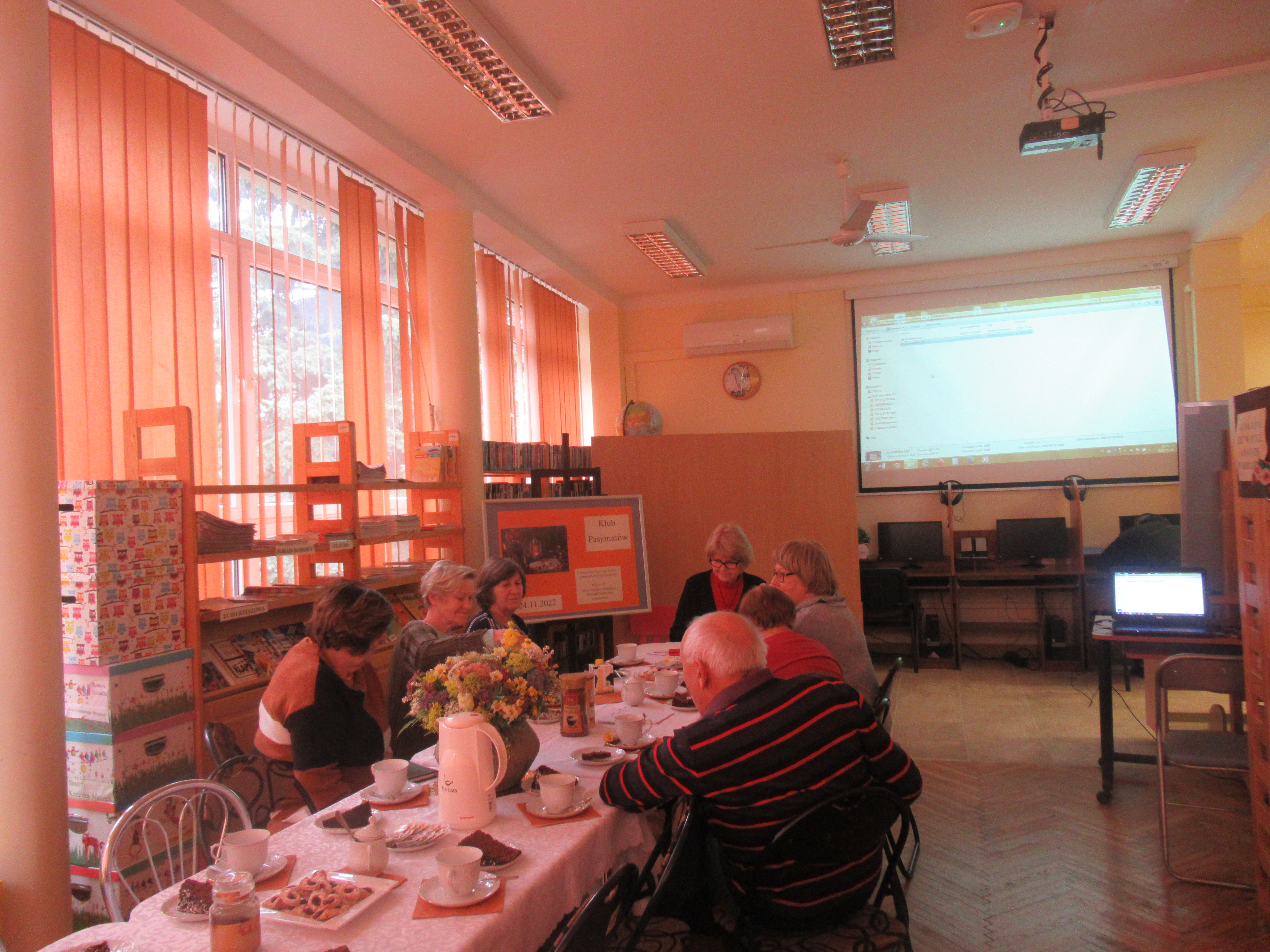 Na Pasjonatów czekał pięknie nakryty stół, słodycze i nieodzowna filiżanka kawy. Stwarzało to klimat sprzyjający opowieściom o własnych doświadczeniach, zainteresowaniach i marzeniach, o rozwijaniu pasji, na podjęcie których dotychczas brakowało czasu. Dominowały wspomnienia z podróży, tych dalekich w przestrzeni, ale także odległych w czasie, pod hasłem „Podróże małe i duże i na emeryturze”. Okazało się, że ciekawym elementem podróży mogą być także przeżycia kulinarne. Zaproponowano więc, aby spotkanie zaplanowane na czwartek, 8 grudnia 2022, przeznaczyć na wyprawę kulinarną. Przewodnikami w tej podróży będą stare i współczesne książki kucharskie nagromadzone przez jedną z koleżanek w liczbie ponad 200 egzemplarzy! Wypada tylko żałować, że w warunkach biblioteki nie będzie można sprawdzić wszystkich prezentowanych przepisów, ale pomysłodawczyni obiecuje ciasteczka adwentowe!