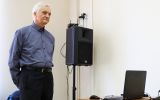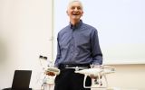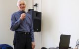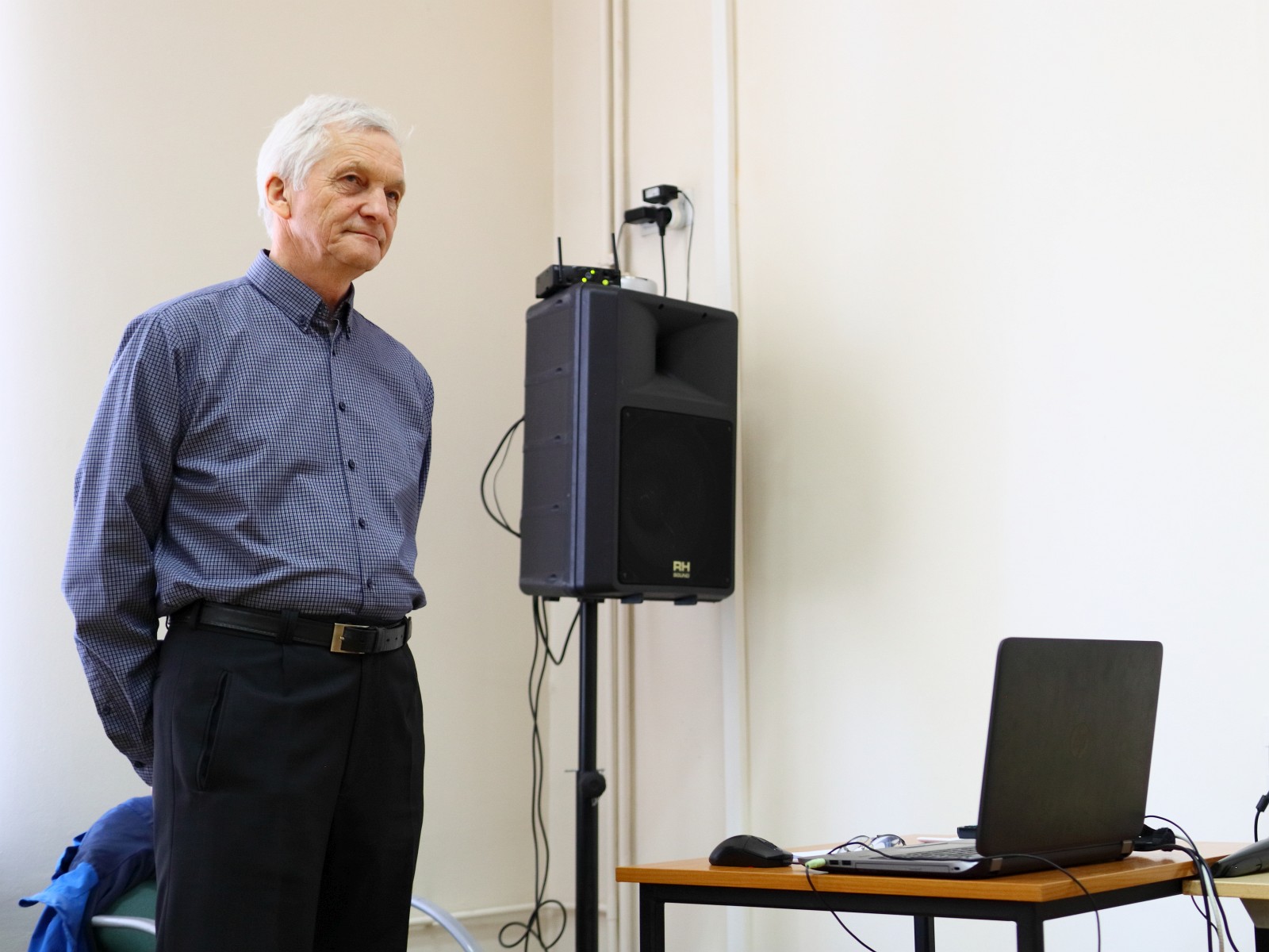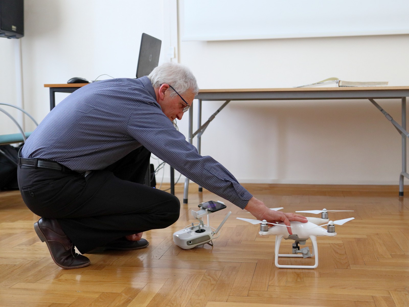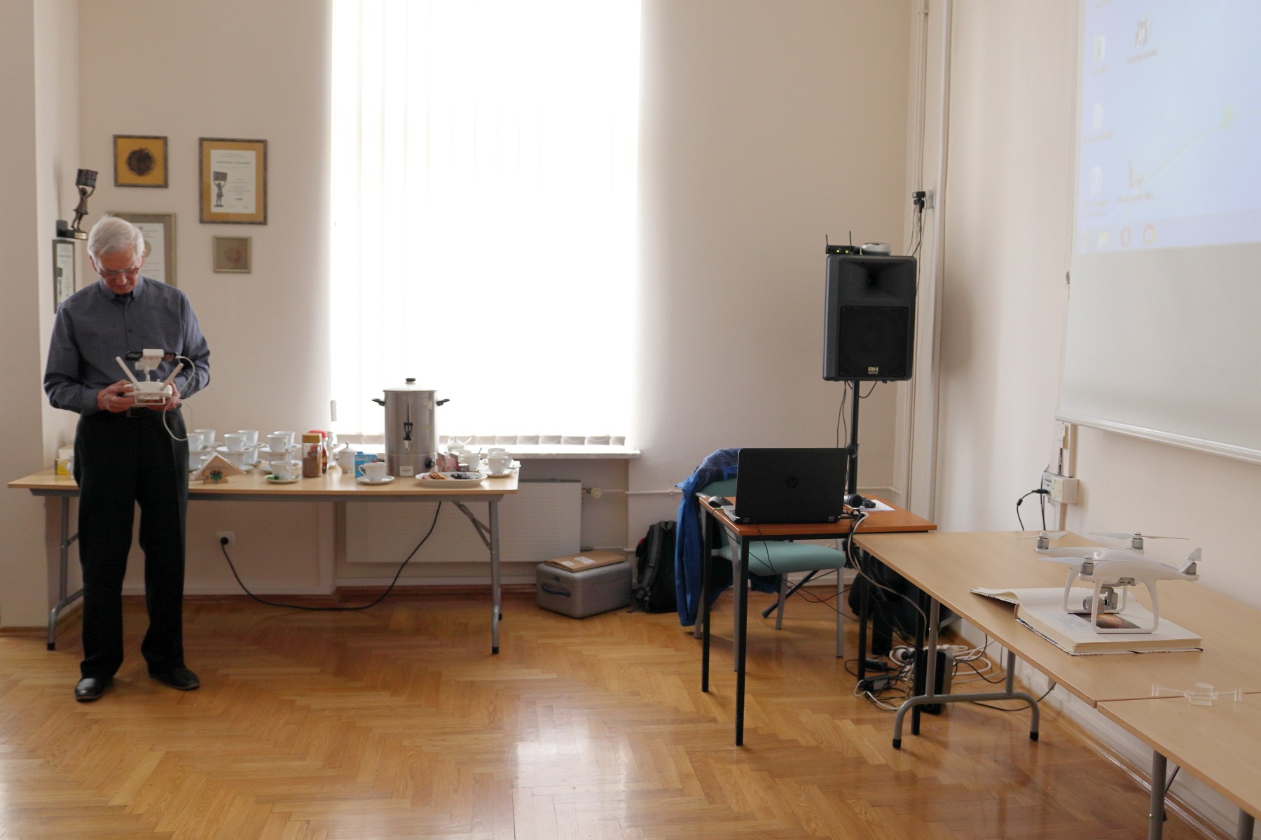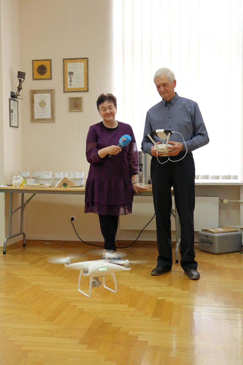 Jan Stachura, którego fotografie były prezentowane w Muzeum Samorządowym Ziemi Strzyżowskiej oraz na indywidualnych i zbiorowych wystawach Klubu Fotografii UTW-UR, rozpoczął spotkanie od krótkiego przedstawienia historii swojej pasji, jaką od 20 lat jest latanie na paralotni i motoparalotni. Najpierw pokazał zebranym krótkie filmiki z początków swojego latania na paralotni – były to loty swobodne, z wykorzystaniem ukształtowania terenu i wznoszących prądów powietrznych. Sterowanie paralotnią odbywa się za pomocą balansu ciała. Potem przyszedł czas na demonstrację motoparalotni – paralotni z podpiętym trójkołowym wózkiem z napędem. Motoparalotnia nie wymaga specjalnych warunków terenowych – można startować na zwykłej, płaskiej łące. Taki właśnie „pas startowy” Jan Stachura posiada na swojej działce. Opowiadaniu o warunkach technicznych latania towarzyszyły filmiki i przepiękne zdjęcia. Prelegent zachwycił zebranych całą serią zdjęć tematycznych, pokazujących między innymi krajobrazy zmieniające się z porami roku - jesienne, zimowe czy wiosenne. Jednak najwięcej westchnień podziwu wzbudziły zdjęcia wykonane we mgle. Tym razem były to już zdjęcia zrobione z wykorzystaniem drona – latanie we mgle na motoparalotni byłoby zbyt niebezpieczne. W trakcie wystąpienia prelegent wielokrotnie podkreślał, że dzięki swojej pasji odwiedził z powietrza całe Podkarpacie i inne regiony Polski, a także sąsiednie kraje. Fotografią zajmował się od zawsze, tworząc archiwum domowe. W pewnym momencie pomyślał, że warto, aby także inni zobaczyli, jak piękny z lotu ptaka jest nasz kraj, a zwłaszcza Podkarpacie. Dzięki aktywności w Klubie Fotografii UTW-UR doskonali techniki fotografowania, bardzo często zwracając uwagę na światło, które potrafi „namalować” wspaniałe krajobrazy, godne impresjonisty. Pobyt wysoko nad ziemią to nie tylko wrażenia wizualne, to także czas na chwilę refleksji nad kruchością życia i słabością człowieka wobec natury. W końcowej części spotkania Jan Stachura zademonstrował swojego drona i zasady jego wykorzystania przy fotografii z lotu ptaka. Ta część spotkania obudziła wiele emocji, co obecni koledzy – fotografowie uchwycili na zdjęciach.