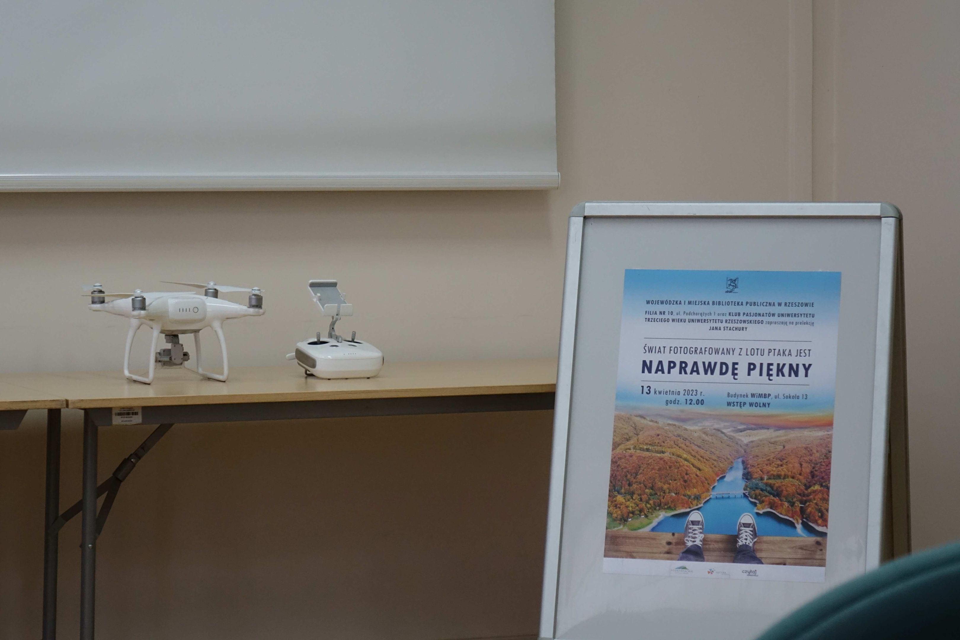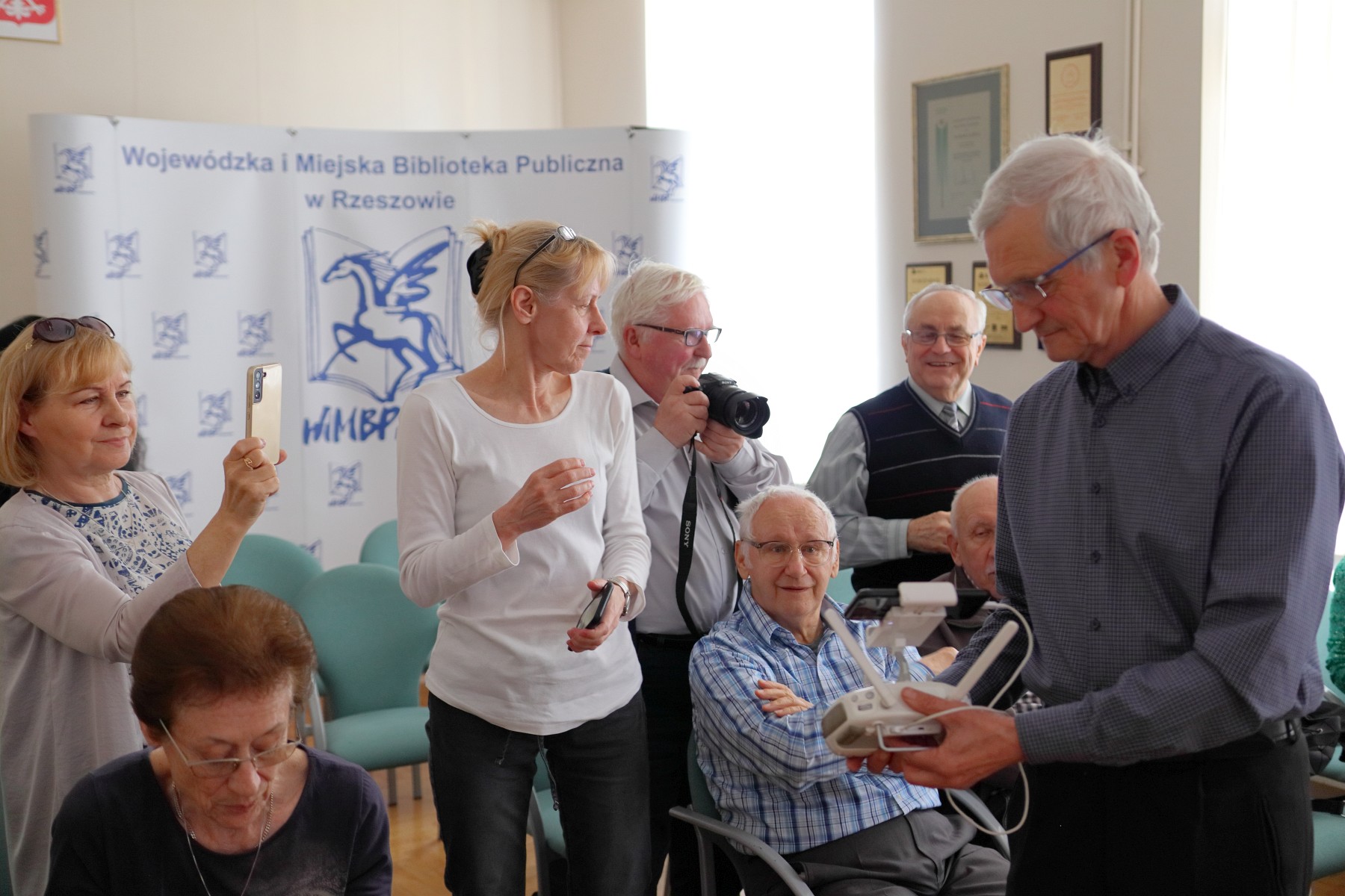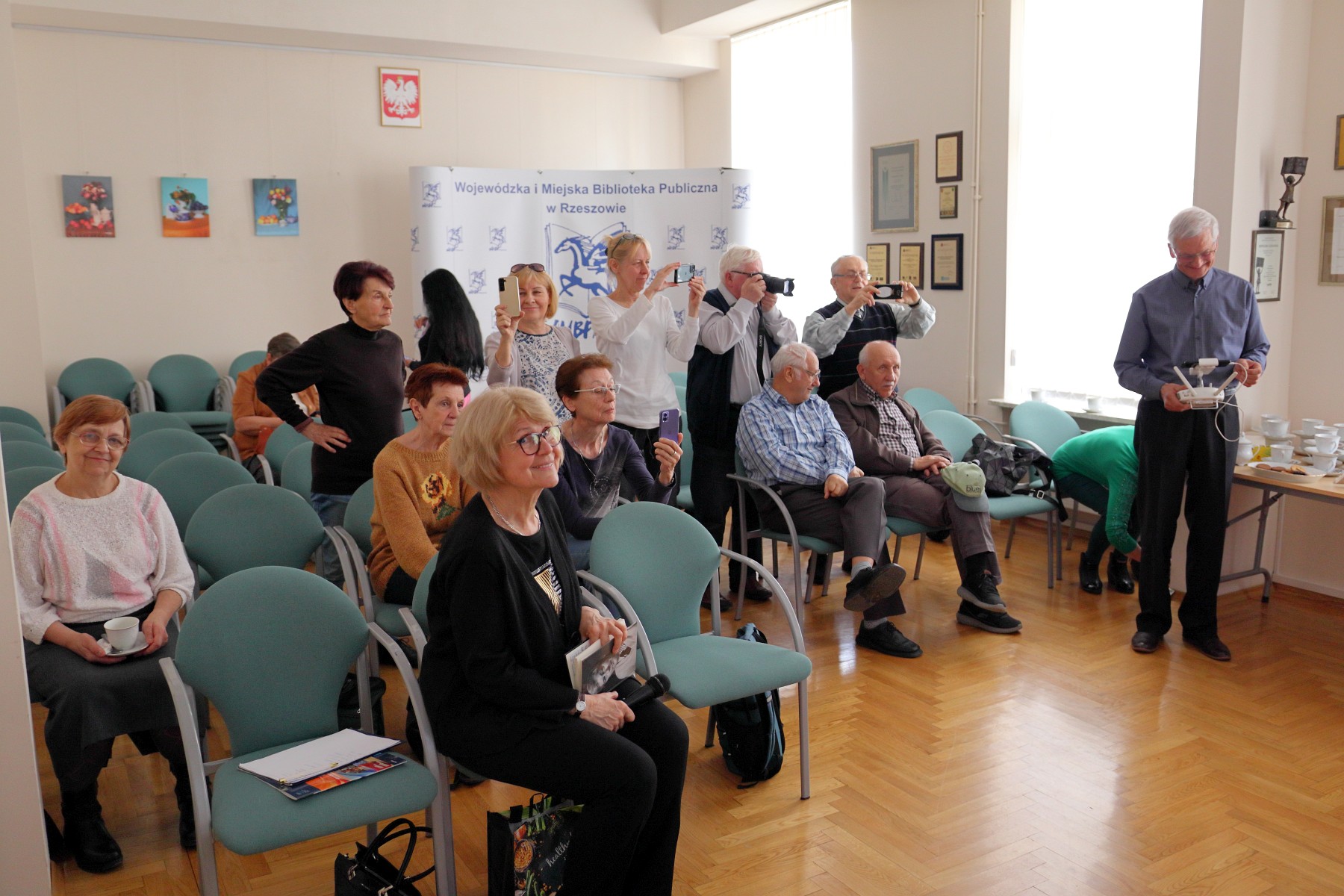 Kolejny raz spotkanie Klubu Pasjonatów UTW-UR odbyło się w Wojewódzkiej i Miejskiej Bibliotece Publicznej w Rzeszowie w budynku przy ul. Sokoła 13. Treścią spotkania w czwartek, 13 kwietnia 2023 r. była prelekcja kol. Jana Stachury „Świat fotografowany z lotu ptaka jest naprawdę piękny”. Temat prelekcji, chociaż ciekawy, tym razem zgromadził niespełna 20 osób, w tym członków Klubu Fotografii UTW-UR i stałych członków Klubu Pasjonatów. Wydarzenie dokumentowali kol. Paweł Niemczak i kol. Janusz Obarski z Klubu Fotografii UTW-UR. Zaproszenie na spotkanie przyjęła także pani Anna Leśniewska z Polskiego Radia „Rzeszów”. Zebranych powitała dyrektor WiMBP w Rzeszowie pani Bożena Janda, wyrażając zadowolenie z możliwości wsparcia aktywności seniorów i zwracając uwagę na nowatorski charakter spotkań pasjonatów – seniorów. Moderator Klubu Pasjonatów Maria Suchy podkreśliła, że dzięki życzliwości Dyrektor WiMBP seniorzy mogli znaleźć nie tylko miejsce do realizacji swoich pasji, ale także satysfakcję z opublikowania w miesięczniku „Poradnik bibliotekarza” informacji o działaniach Klubu Pasjonatów. Swoje podziękowania moderator skierowała też na ręce pani Jolanty Jędryki, bibliotekarki  Filii Nr 10 WiMBP, za stałą życzliwą pomoc dla seniorów.