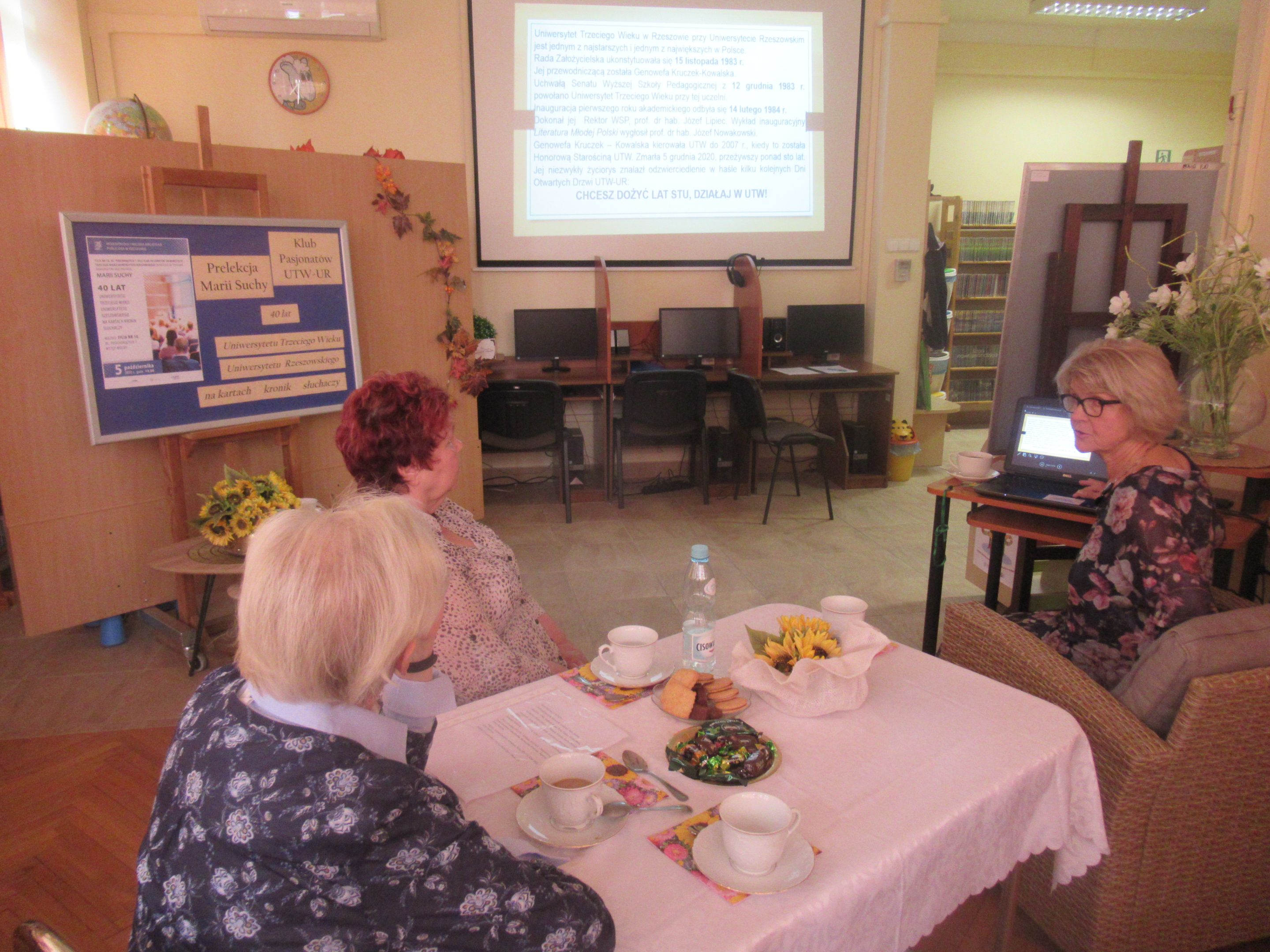 Informacje przedstawione w prezentacji uzupełniła obecna na spotkaniu Wiceprezes Zarządu UTW-UR d/s naukowych Danuta Kamieniecka–Przywara, która opowiedziała o swoich bardzo osobistych relacjach z założycielką i długoletnią starościną UTW śp. Genowefą Kruczek-Kowalską, a także o obchodach jubileuszu XXX-lecia Uniwersytetu Trzeciego Wieku w Rzeszowie w maju 2014, w których wzięli udział znani politycy, jak też osoby związane z ruchem UTW w skali kraju. Czwartkowe spotkanie zakończyły wywiady, jakich udzieliły Radiu Rzeszów Danuta Kamieniecka–Przywara i Maria Suchy.