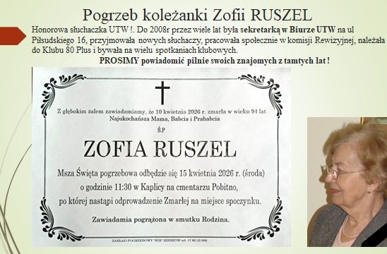 Ze smutkiem informujemy o śmierci kol. Zofii Ruszel.