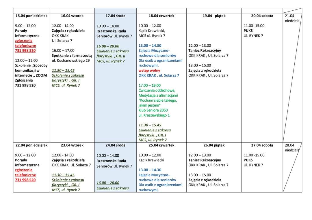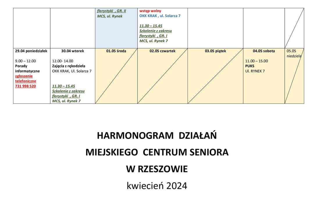 Aktualizacje harmonogramu działań Miejskiego Centrum Seniora na kwiecień.