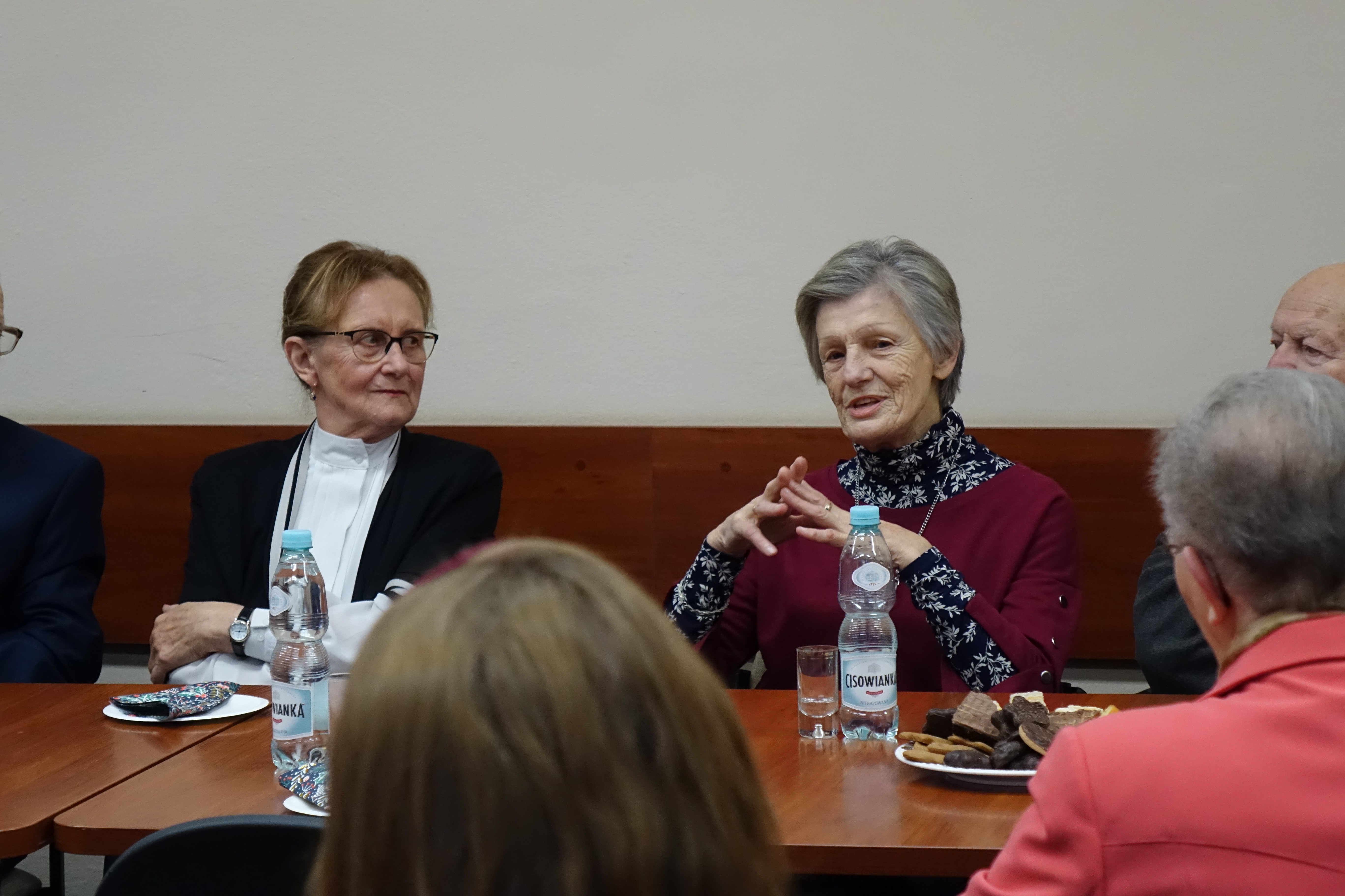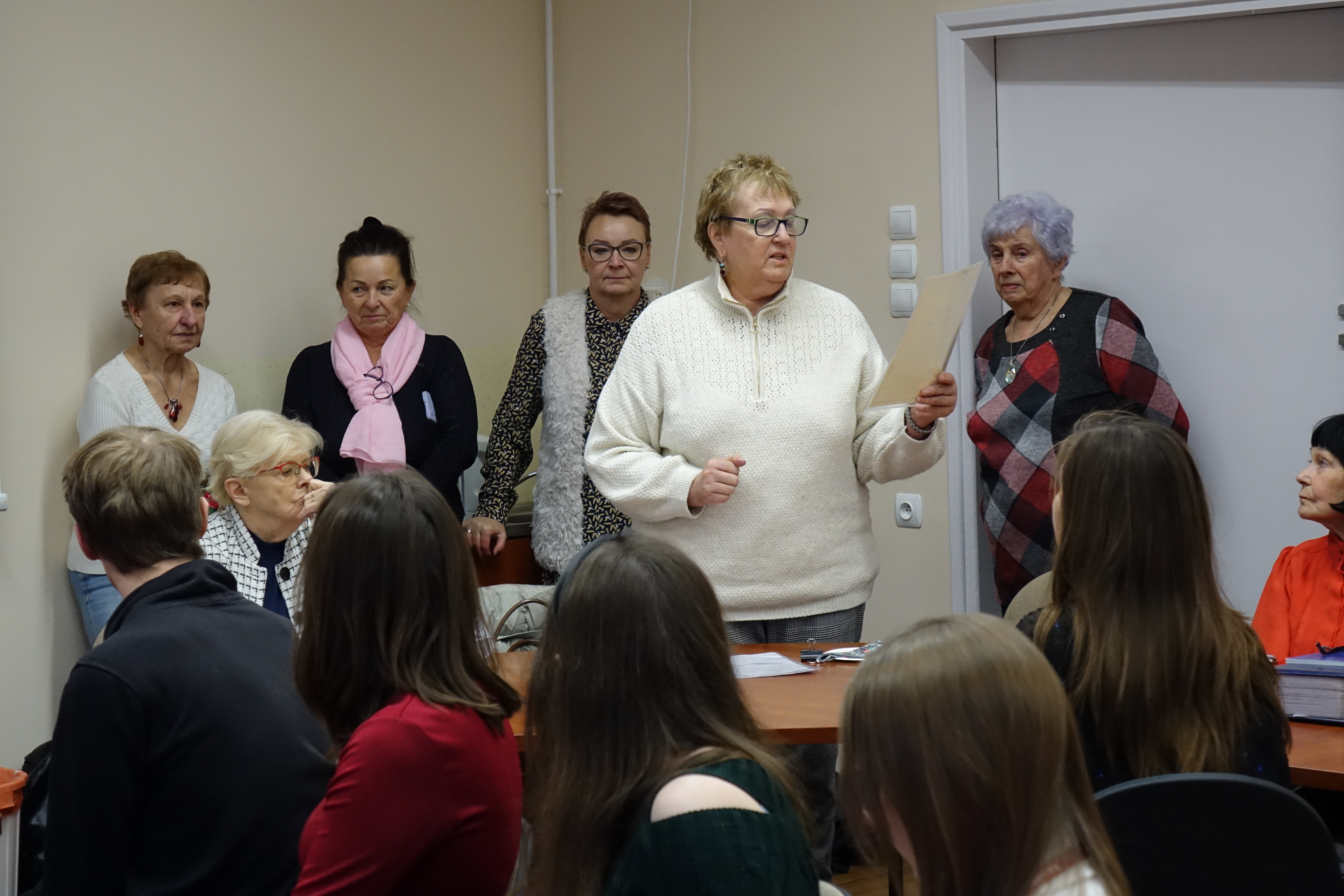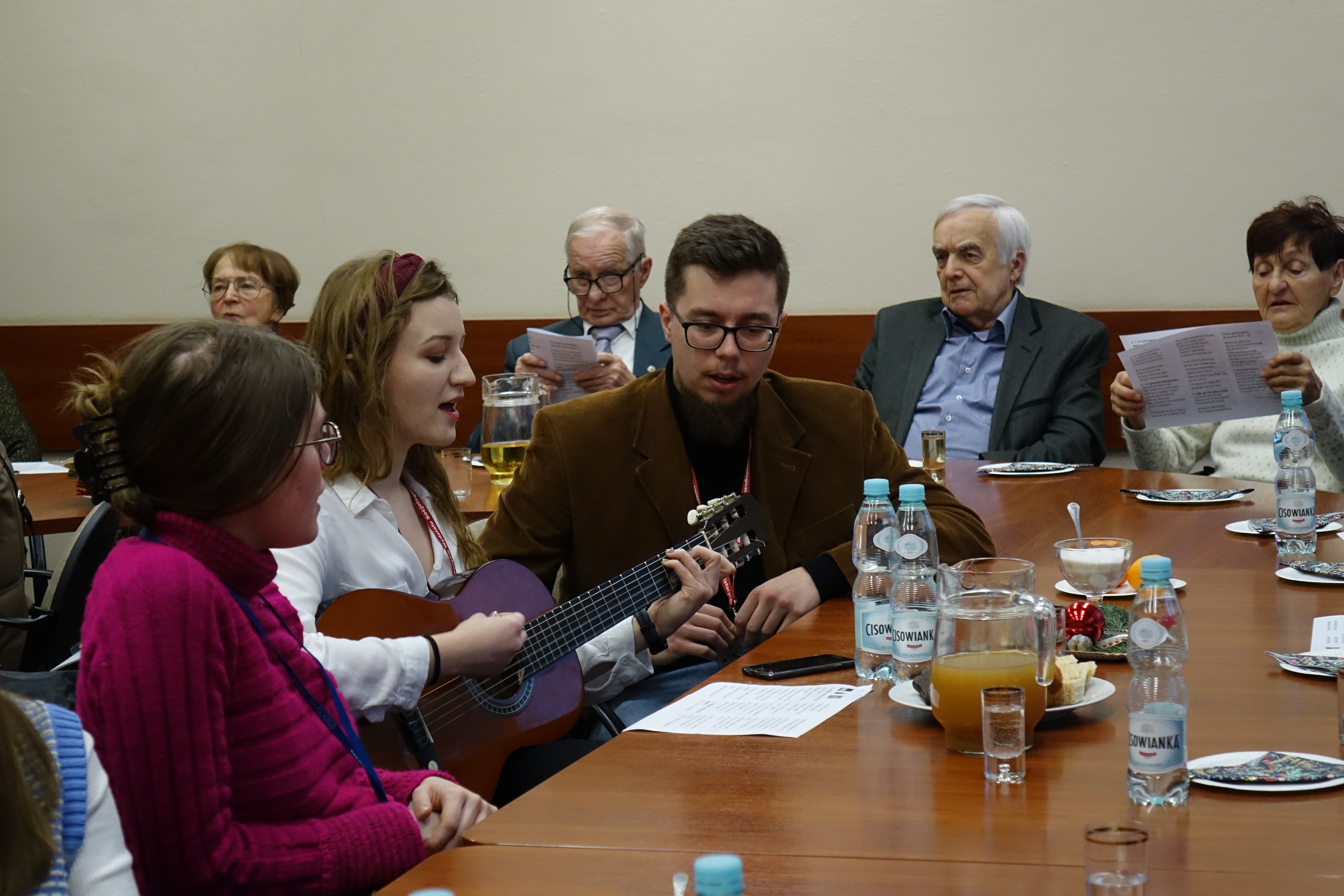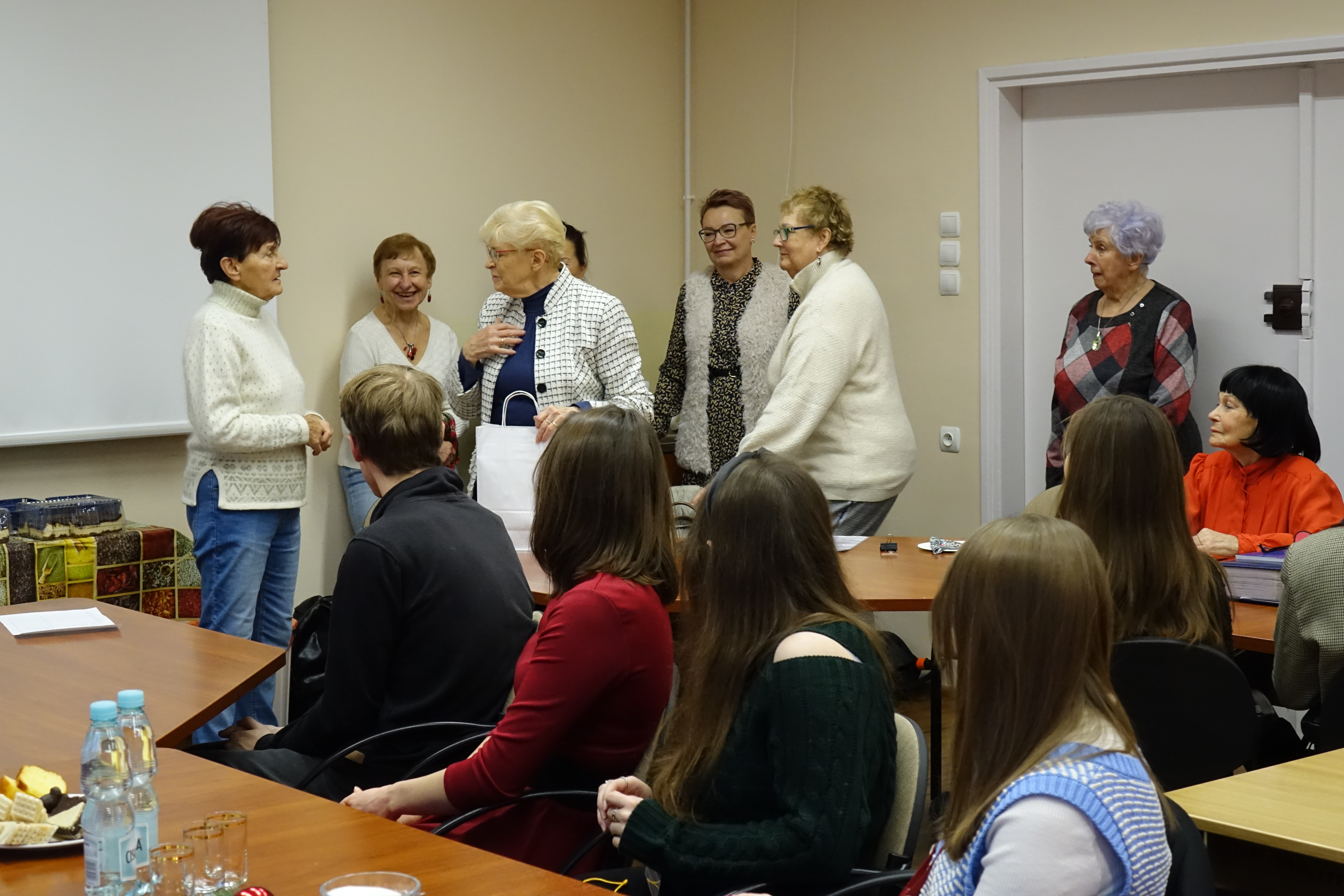 Po bardzo udanym spotkaniu wiosennym, członkowie Klubu Seniora 80+ spotkali się po raz kolejny, tym razem na terenie Uniwersytetu Rzeszowskiego przy ul. Rejtana. Uroczyste spotkanie świąteczne zorganizowano 16 grudnia 2022 r. w sali 226 budynku A-1. Mimo bardzo uciążliwych warunków pogodowych, frekwencja dopisała. Przybyło 25 osób – członków Klubu Seniora 80+, którzy na przywitanie otrzymywali "Biuletyn Nr 21-22" i „Głos Seniora”. Było też 10 słuchaczy UTW-UR zaangażowanych w organizację wydarzenia oraz 11 studentów z Instytutu Historii UR. Zebranych powitała Prezes Zarządu UTW-UR Małgorzata Siuta, która wyraziła radość z możliwości ponownego spotkania seniorów uczestniczących w wydarzeniach proponowanych przez Klub Seniora 80+ oraz złożyła obecnym serdeczne życzenia świąteczne i noworoczne. Potem prowadzenie spotkania przejęła Wiceprezes Zarządu UTW-UR Danuta Kamieniecka–Przywara. Zasługą organizatorów było zapewnienie ciepłego, świątecznego klimatu od pierwszych chwil spotkania. Zgodnie z wieloletnią tradycją spotkań Klubu Seniora 80+ obchodzono także urodziny – tym razem swoją „osiemdziesiątkę” świętowała i otrzymała drobny upominek kol. Halina Cisak, była koordynatorka sekcji języków obcych, która obecnie realizuje swoje pasje w klubie malarstwa i w klubie fotografii. Przy blasku lampek choinkowych rozpoczęto serwowanie tradycyjnego barszczu i pierożków, a w międzyczasie kolejni seniorzy prezentowali swoje pasje, podobnie jak to było na spotkaniu wiosennym. Duży aplauz wzbudził kol. Henryk Pelc, który w nakryciu głowy ze stroju Beduina opowiadał o swoim pobycie w Dubaju. Zachęcił także jedną ze studentek do nałożenia elementów egzotycznego damskiego stroju, co uchwycili koledzy fotografowie. Niestety, brak czasu nie pozwolił na zademonstrowanie tradycyjnego parzenia kawy z wykorzystaniem przyniesionych przez kol. Pelca akcesoriów. Swoje pasje zaprezentowała także kol. Maria Rudnicka, która zademonstrowała nie tylko swoje talenty poetyckie, ale także zaśpiewała po francusku popularną piosenkę. Dużą niespodzianką był udział studentów kulturoznawstwa, którzy przynieśli niezbędne rekwizyty i poprowadzili grę w BINGO. Gra cieszyła się dużym powodzeniem, a wygrał ją kol. Tadeusz Kunc. Nie brakło okazji do wspólnego zaśpiewania kolęd przy akompaniamencie gitary, którą na spotkanie przyniosła jedna ze studentek. Po deserze, na który złożyły się kawa, herbata, pyszny sernik, owoce i kruche ciasteczka, każdy z  seniorów otrzymał na pożegnanie tabliczkę czekolady. Nie było końca podziękowaniom i wyrazom wdzięczności za tak miłą uroczystość oraz skierowano prośby o zorganizowanie kolejnych podobnych spotkań. Na  zakończenie wiceprezes Danuta Kamieniecka–Przywara podziękowała organizatorom, studentom i członkom Klubu 80+ oraz złożyła życzenia zdrowych, spokojnych, radosnych Świąt Bożego Narodzenia oraz wszystkiego najlepszego w Nowym Roku. W finale wszyscy obecni zapozowali do wspólnego zdjęcia.