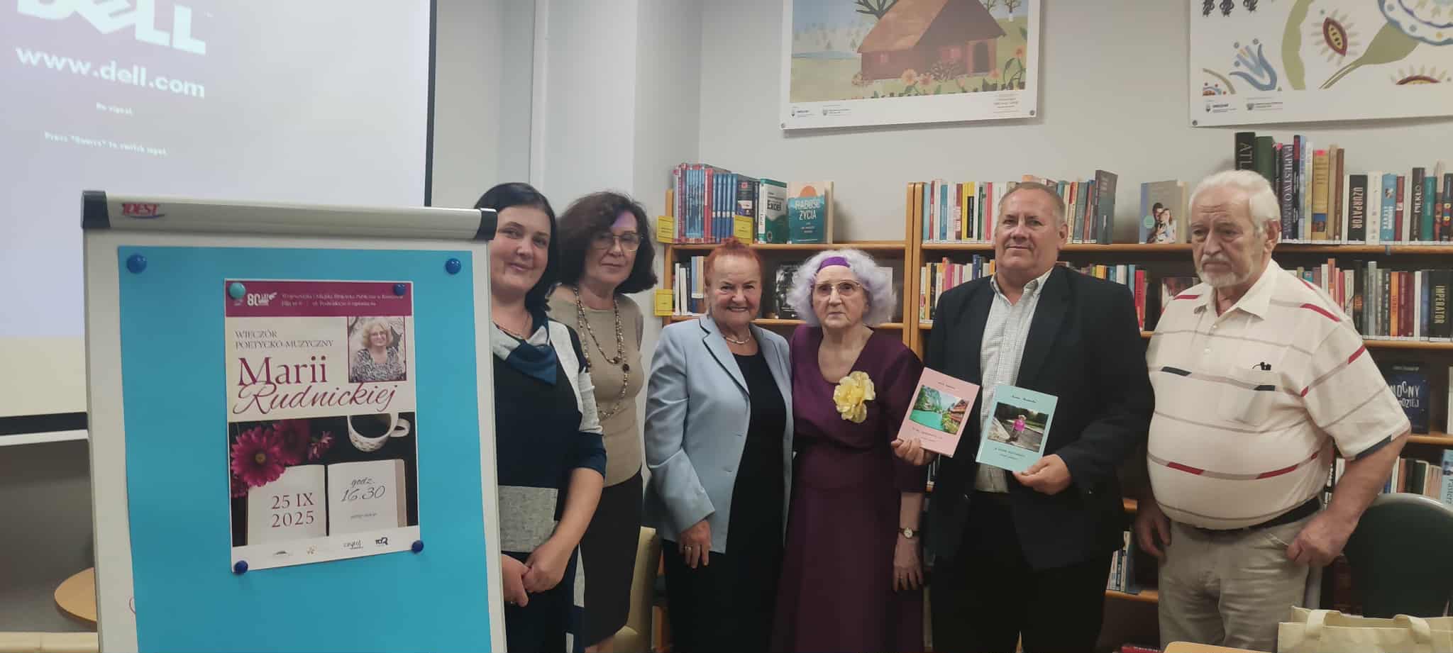 Czwartkowy wieczór 25 września br. Filia Nr 6 WiMBP wypełniła się wyjątkową atmosferą. Gościem biblioteki była rzeszowska poetka Maria Rudnicka, autorka 42 tomików wierszy, dwóch książek oraz śpiewnika, w których splatają się refleksje o codzienności, ludzkich emocjach i pięknych ulotnych chwil.