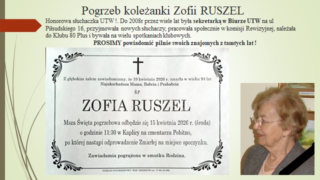 Ze smutkiem informujemy o śmierci kol. Zofii Ruszel.