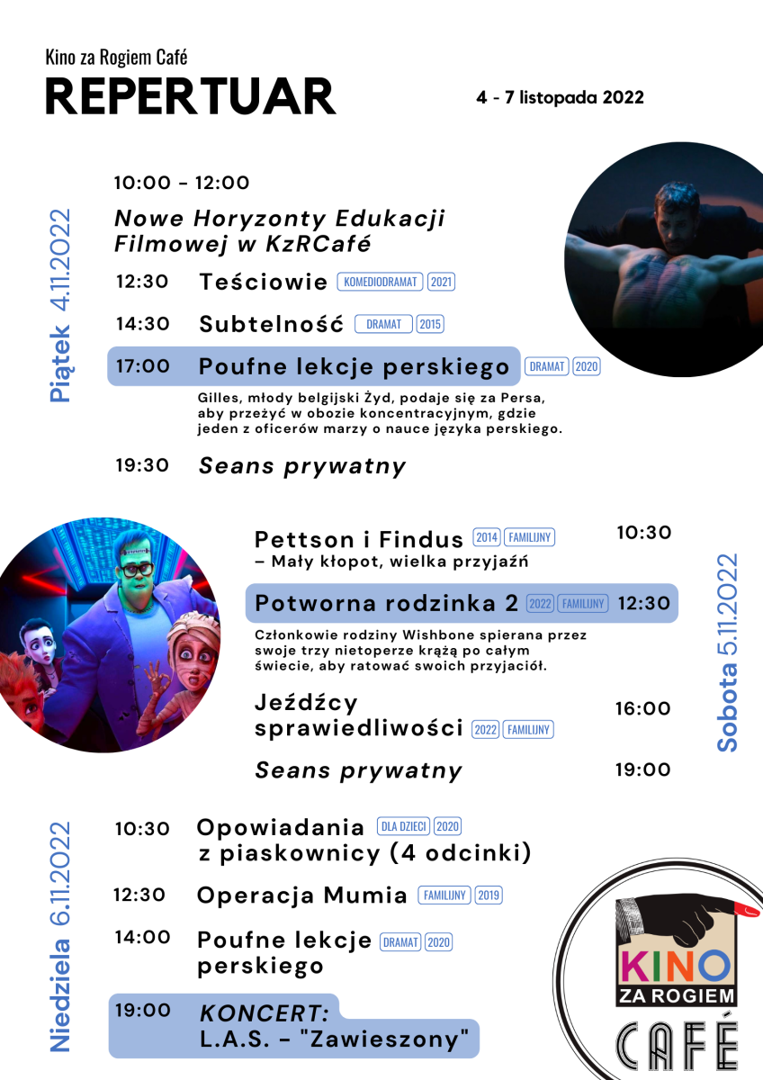 Wydarzenia i repertuar Kina za Rogiem Cafe 4.11- 10.11.