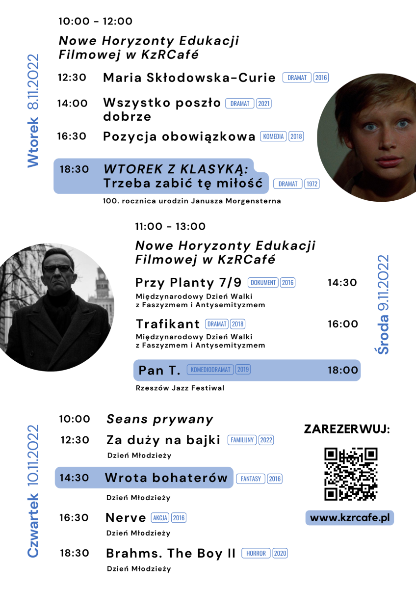 Przesyłamy repertuar kinowy i plan wydarzeń w Kinie za Rogiem Café w Rzeszowie (ul. Świętego Mikołaja 6). Załączamy również informacje prasowe ze szczegółami oraz grafiki.