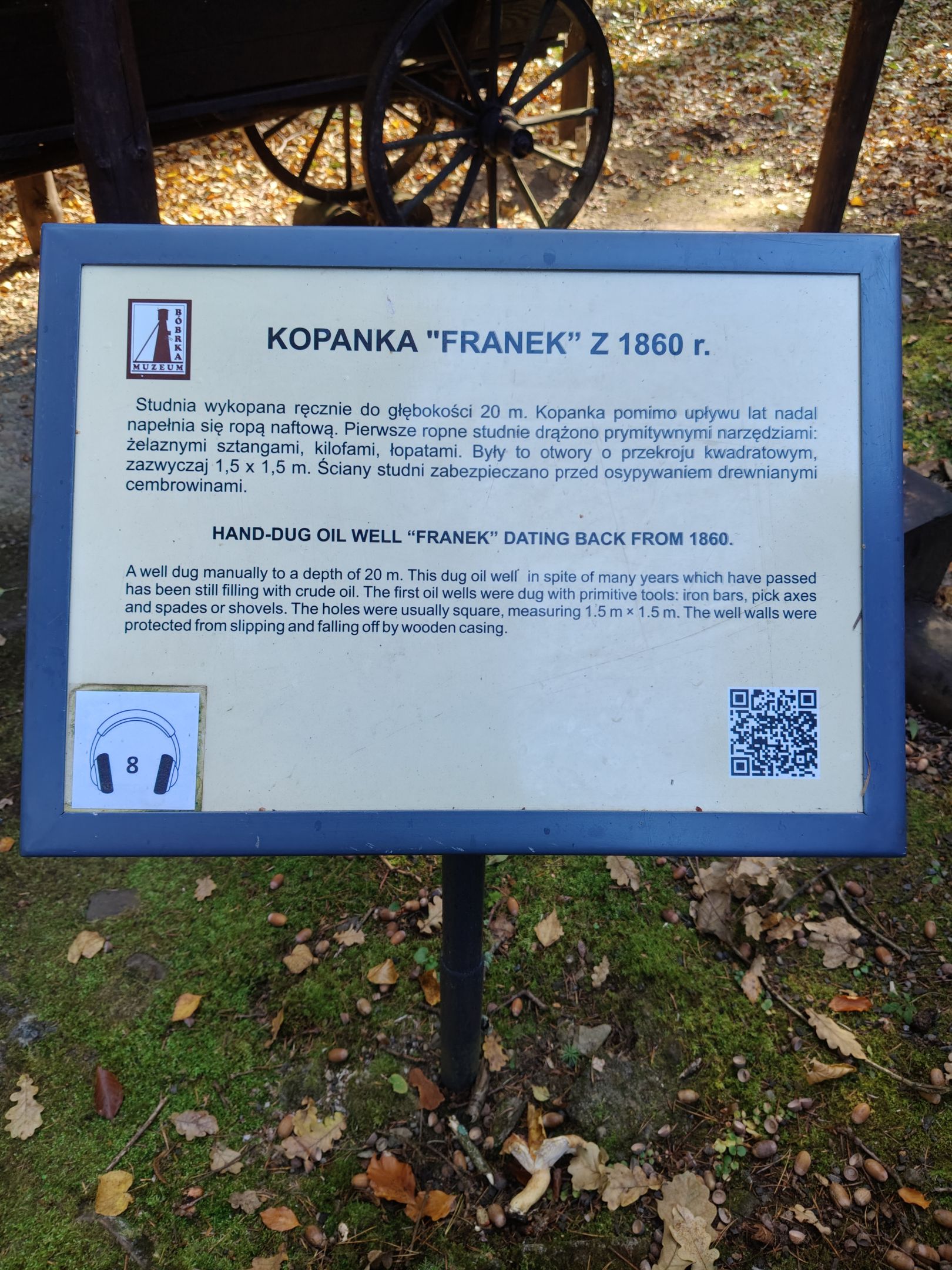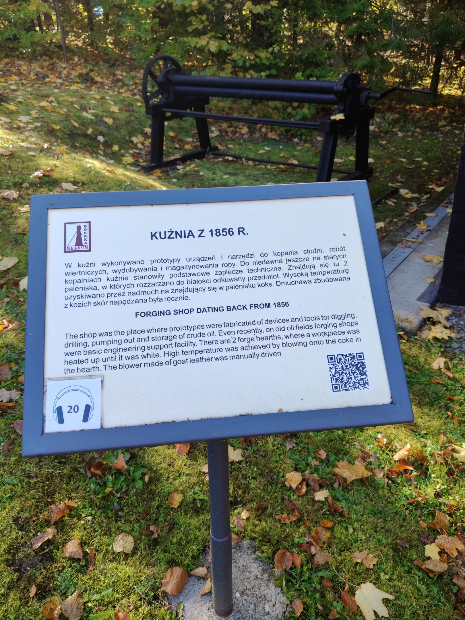 Następnie udaliśmy się do Bóbrki, gdzie, znajduje się Muzeum Przemysłu Naftowego i Gazowniczego im. Ignacego Łukasiewicza. To wyjątkowe miejsce, które znajduje się na terenie najstarszej na świecie nadal działającej kopalni ropy naftowej. Muzeum zostało otwarte w 1854 roku i jest poświęcone historii przemysłu naftowego i gazu w Polsce. W muzeum znajduje się kilka ciekawostek: obelisk Ignacego Łukasiewicza - ustawiony w 1872 roku na pamiątkę założenia kopalni Franek i Janina (naturalne złoże ropy naftowej, które są nadal eksploatowane), warsztat mechaniczny z 1864 roku, który służył do obsługi wiertarek metodą udarową. Jest też budynek administracyjny znany jako "Dom Łukasiewicza", w którym znajduje się ekspozycja apteczna. Muzeum znajduje się w miejscu, gdzie Ignacy Łukasiewicz odkrył metody wydobywania ropy naftowej. Muzeum to oddział Narodowego Instytutu Historii Przemysłu (Narodowe Centrum Kultury Przemysłu) i jest jednym z najważniejszych muzeów technologicznych w Polsce. Zostało otwarte w 1961 roku, aby upamiętnić 100 rocznicę odkrycia ropy naftowej w Bóbrce przez Ignacego Łukasiewicza. Znajduje się w budynku, który jest repliką pierwszej rafinerii ropy naftowej w Europie, zbudowanej w 1856 roku przez Łukasiewicza. W pięknej scenerii złocistej polskiej jesieni spacerowaliśmy wśród licznych eksponatów związanych z historią przemysłu naftowego i gazu, w tym modeli urządzeń, dokumentów, zdjęć i innych pamiątek. Muzeum organizuje różnorodne wystawy i zajęcia edukacyjne. Oferuje również nowoczesne ekspozycje multimedialne, które przenoszą zwiedzających w czasy, kiedy na kopalni pracował sam Ignacy Łukasiewicz. Jest to świetne miejsce dla miłośników historii przemysłu i technologii.
