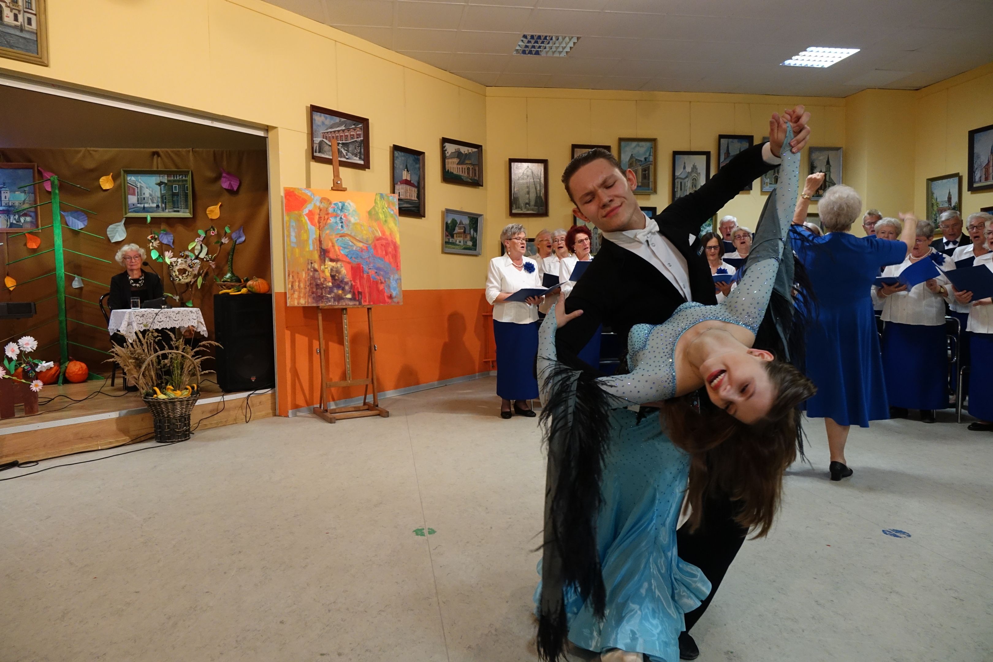 Skoro walce zatoczyły koło i powróciły z wirtualnej podróży do Rzeszowa, nie mogło zabraknąć dwóch utworów o tematyce związanej z naszym pięknym miastem. Były to „Rzeszowski Wiatr” oraz „Ulica Pańska” autorstwa J. Kupiszewskiej (słowa) i B. Słowik (muzyka). Niezwykłą wartością dodaną koncertu były utwory solowe w wykonaniu akompaniatora chóru mgr. Ryszarda Picha, który zagrał walce: na akordeonie „Pod Dachami Paryża” i dwa fortepianowe Fryderyka Chopina. Niezwykłego uroku i elegancji dodał temu wydarzeniu widowiskowy, turniejowy taniec utytułowanej pary z rzeszowskiej Szkoły Tańca „Aksel” (Bartosz Sebzda i Emilia Szetela), prowadzonej przez panią Annę Niedzielską instruktorkę i dyrektorkę szkoły. Całość merytoryczną ogarnęła swym scenariuszem, prowadząc wieczór z wdziękiem i niebywałym poetyckim polotem, znana rzeszowska poetka i malarka Jadwiga Kupiszewska (prywatnie: pasjonat i długoletni przyjaciel „Cantileny”), a pani Krystyna Perlak recytacją swojego wiersza „Fale Dunaju” podkreśliła charakter walca pod tym samym tytułem.