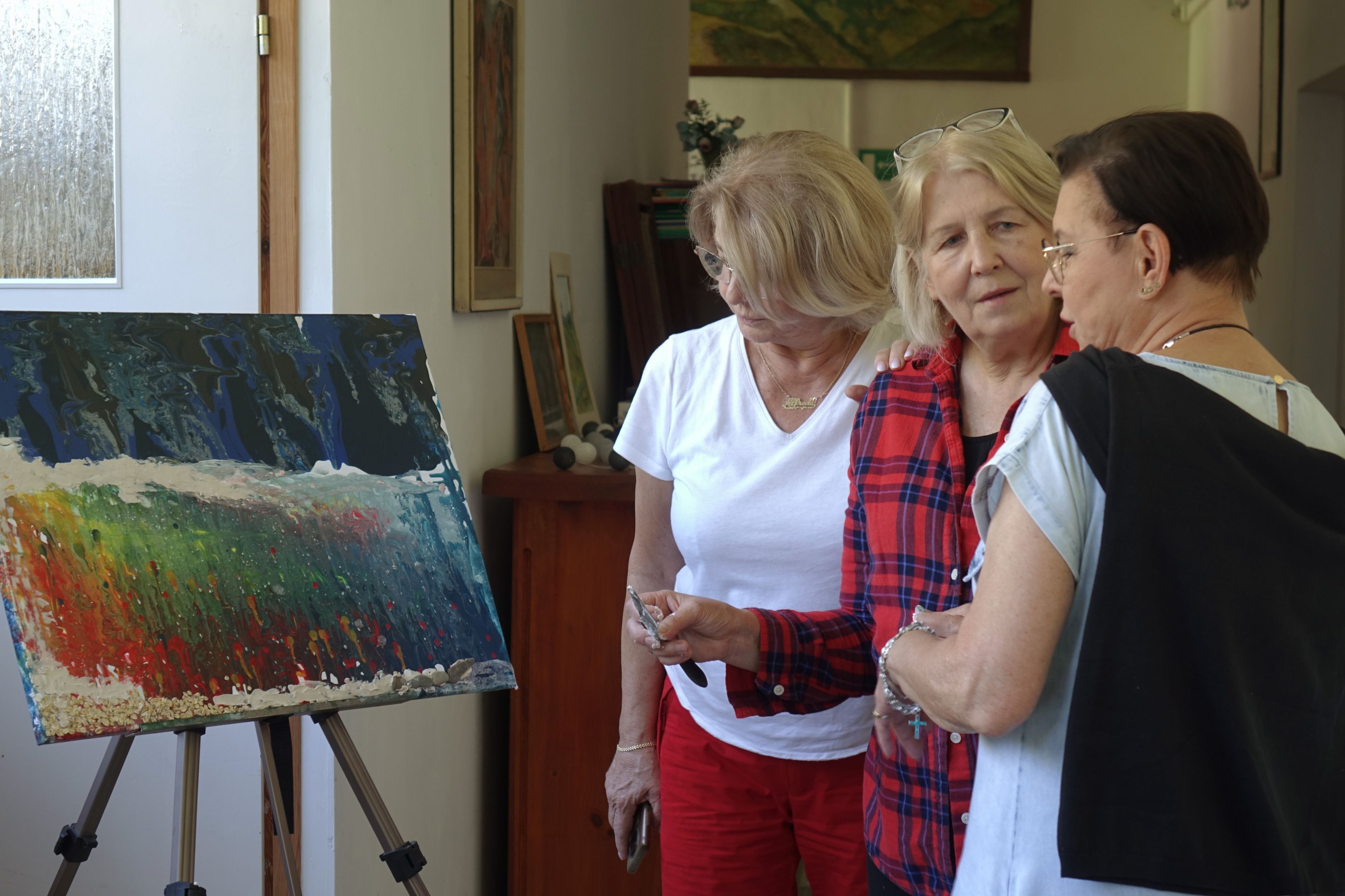 Jesienny plener Klubu malarstwa UTW-UR w Rudence koło Leska odbył się w dniach 18 do 22 września 2023. Pogoda dopisała, więc spacerowaliśmy po okolicy zbierając materiały na bieszczadzkie pejzaże. Obejrzeliśmy cerkiew „Opieki Najświętszej Maryi Panny”. Zwiedziliśmy klasztor „Sióstr Niepokalanej Oblubienicy Ducha Świętego”, gdzie zakonnice piszą ikony. Byliśmy również w Myczkowie, gdzie znajduje się Muzeum Kultury Duchowej i Materialnej Bojków. Muzeum prezentuje kulturową różnorodność Bieszczadów. Gromadzi przedmioty związane z dawnym życiem mieszkańców okolicznych wsi i dworów. Znajdują się tam pamiątki dotyczące życia w gospodarstwie wiejskim, rzemiosła, tradycyjnej sztuki, zwyczajów, obrzędów ludowych.