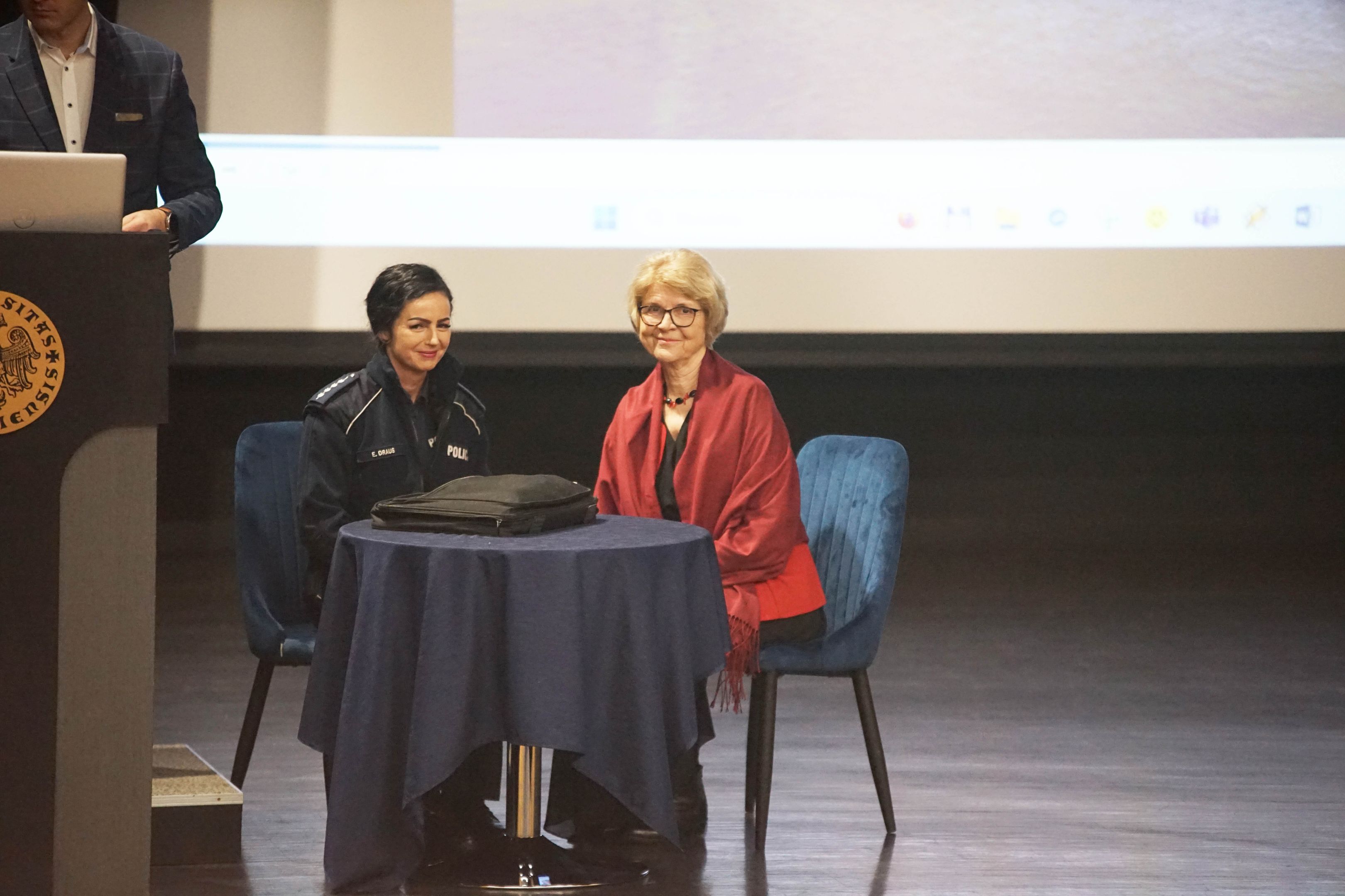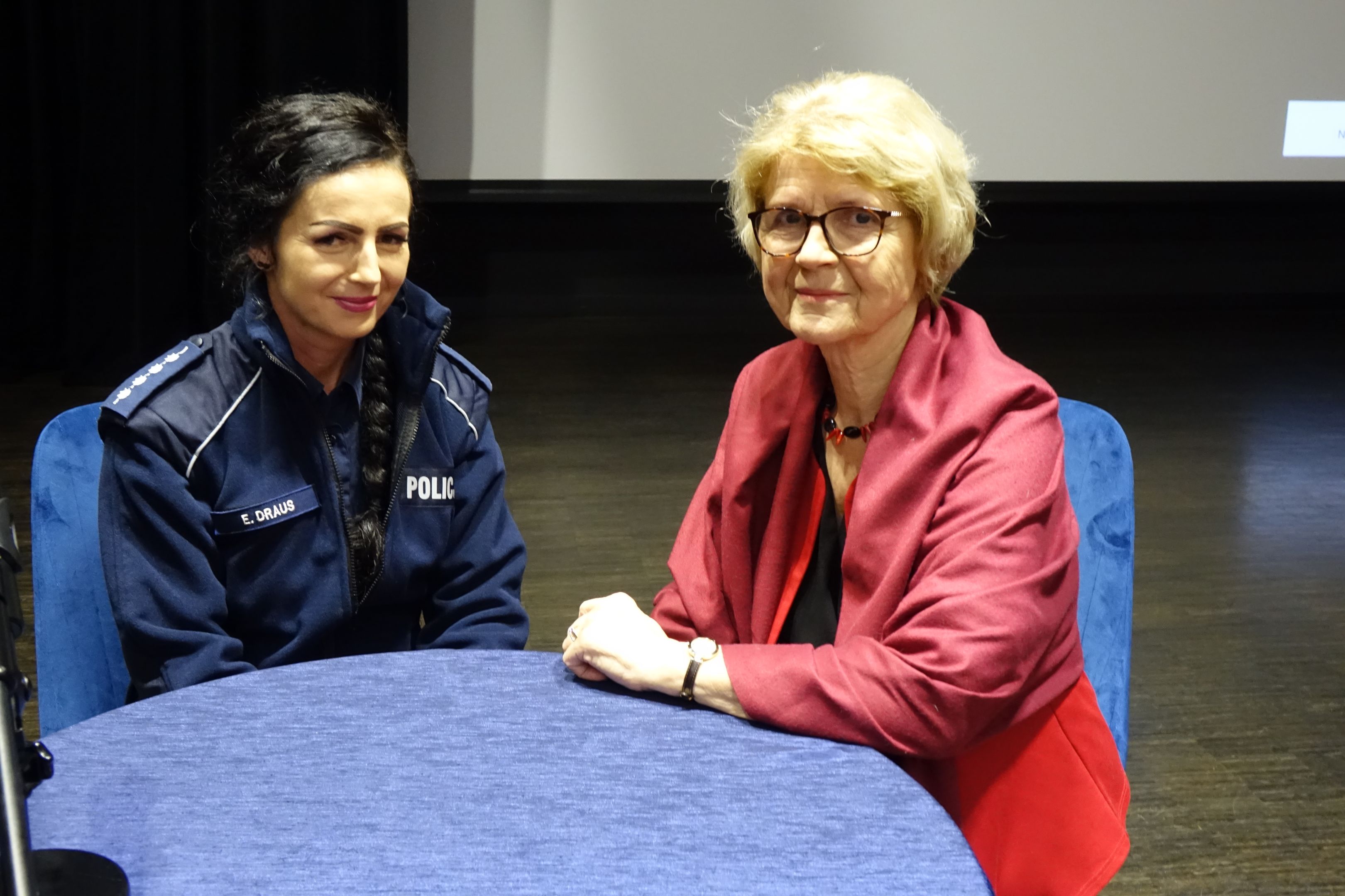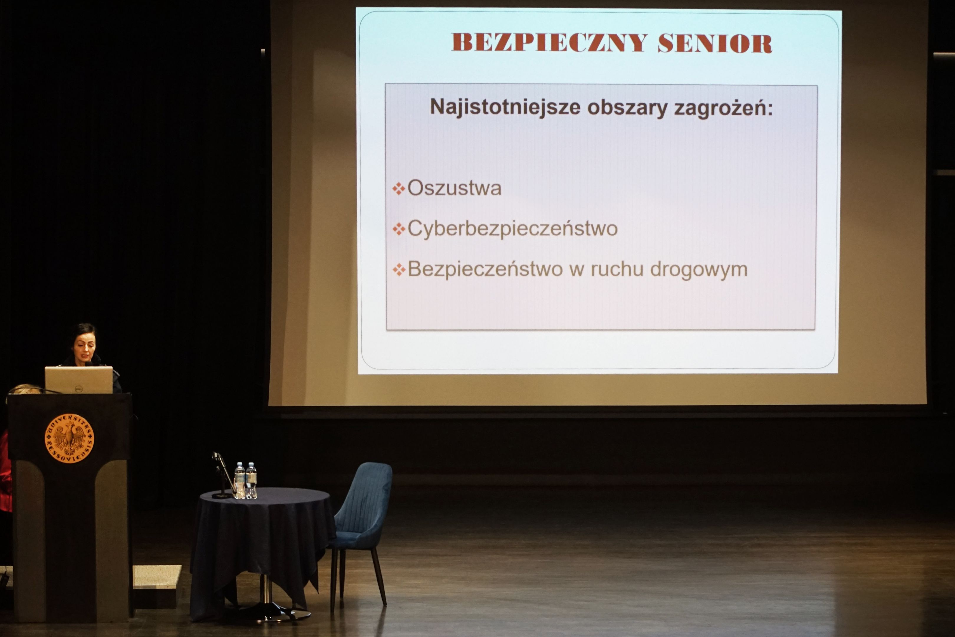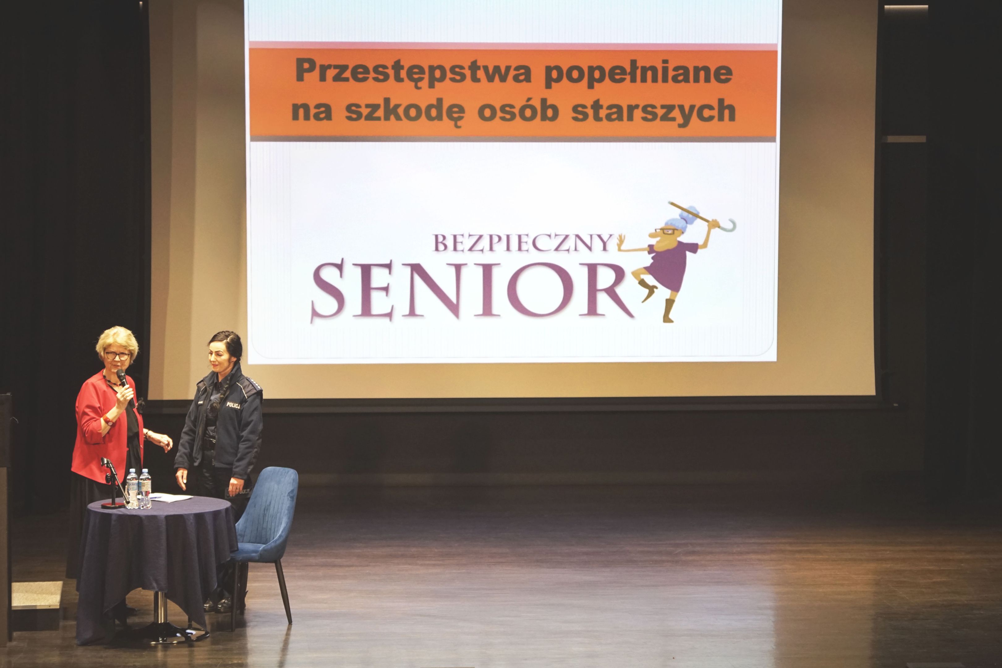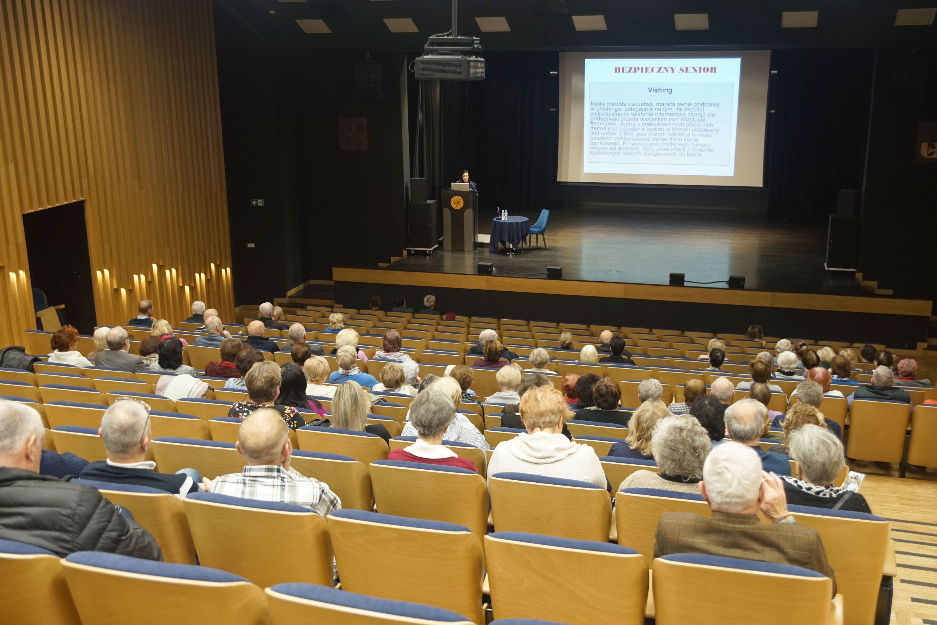 Kolejną częścią programu  była prelekcja funkcjonariusza Policji na temat bezpieczeństwa seniorów w cyfrowym świecie. Prezentację wygłosiła aspirant sztabowy Edyta Draus z Wydziału Prewencji KW Policji w Rzeszowie. W swoim wystąpieniu prelegentka poruszyła takie tematy jak: oszustwa „na wnuczka”, oszustwa „na policjanta”, oszustwa metodą „na legendę” oraz ,metodą „na Blik”. Omówiła także przykłady oszustw dokonywanych na starszych osobach z terenu Podkarpacia. Kolejne zagadnienia to wyjaśnienia, na czym polegają „phishing”, „vishing” oraz SCAM. Ostrzegła także przed fałszywymi sms-ami czy e-mailami.