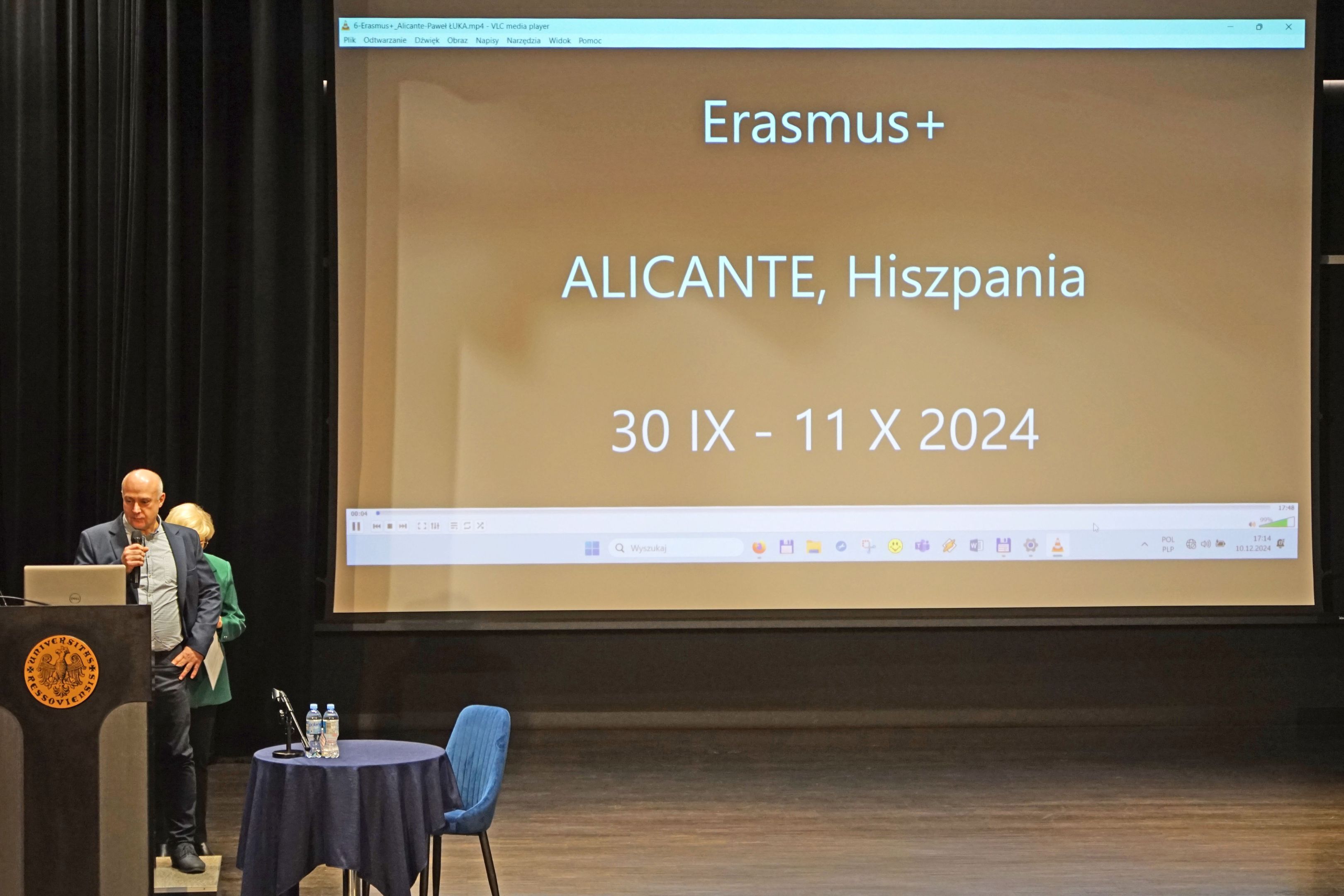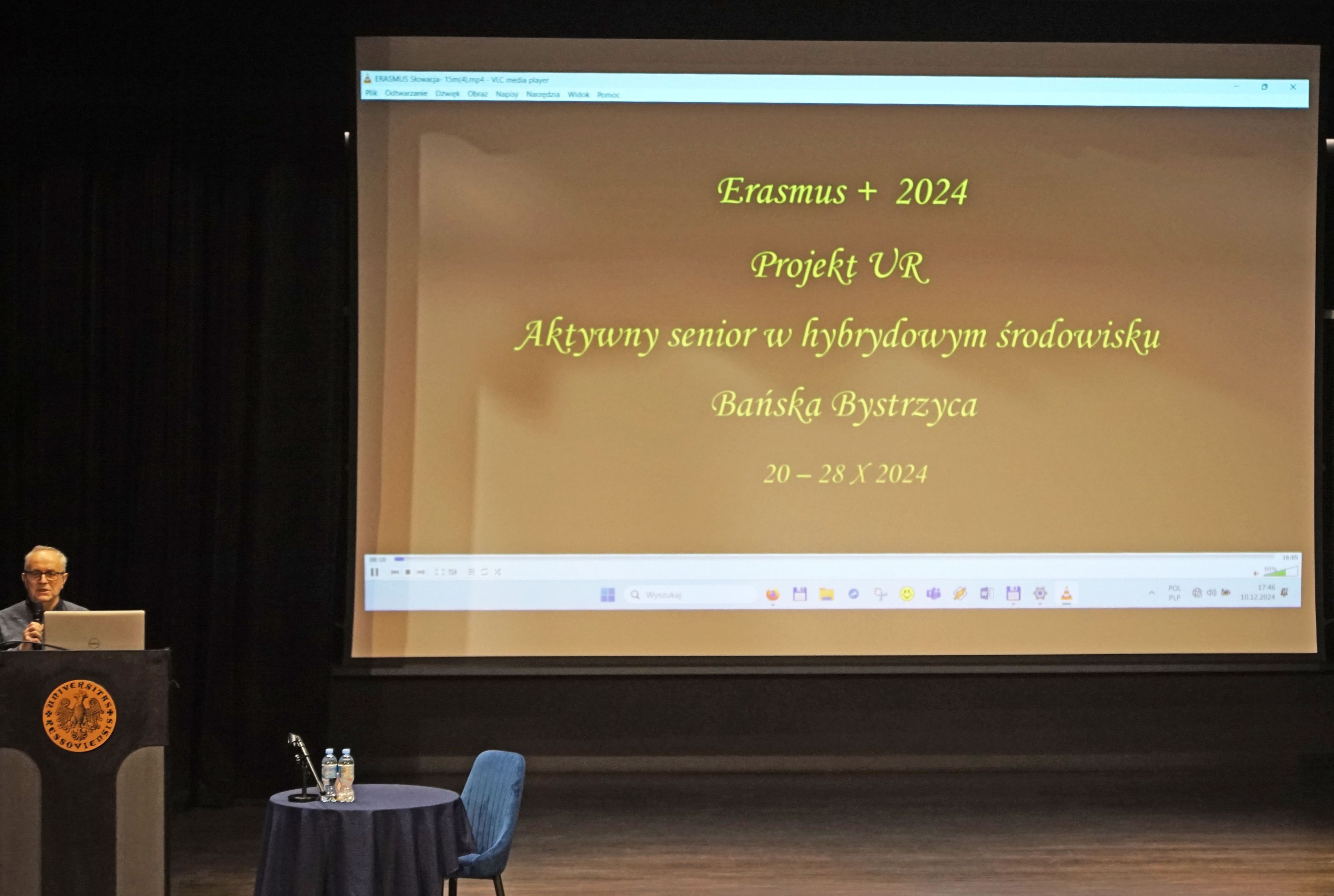 Przy okazji spotkania podsumowującego projekt „Działaj z nami – seniorami”, zostały zaprezentowane krótkie filmowe relacje z Projektu UR „Aktywny senior w hybrydowym środowisku” w programie Erasmus+. Po wyprawie do Hiszpanii - autor dr Paweł Łuka), Holandii  - autorka kol. Zofia Domino i Słowacji - autorzy kol. Emil Bis i kol. Bogumiła Krypel), uczestnicy zostali zaproszeni na catering.