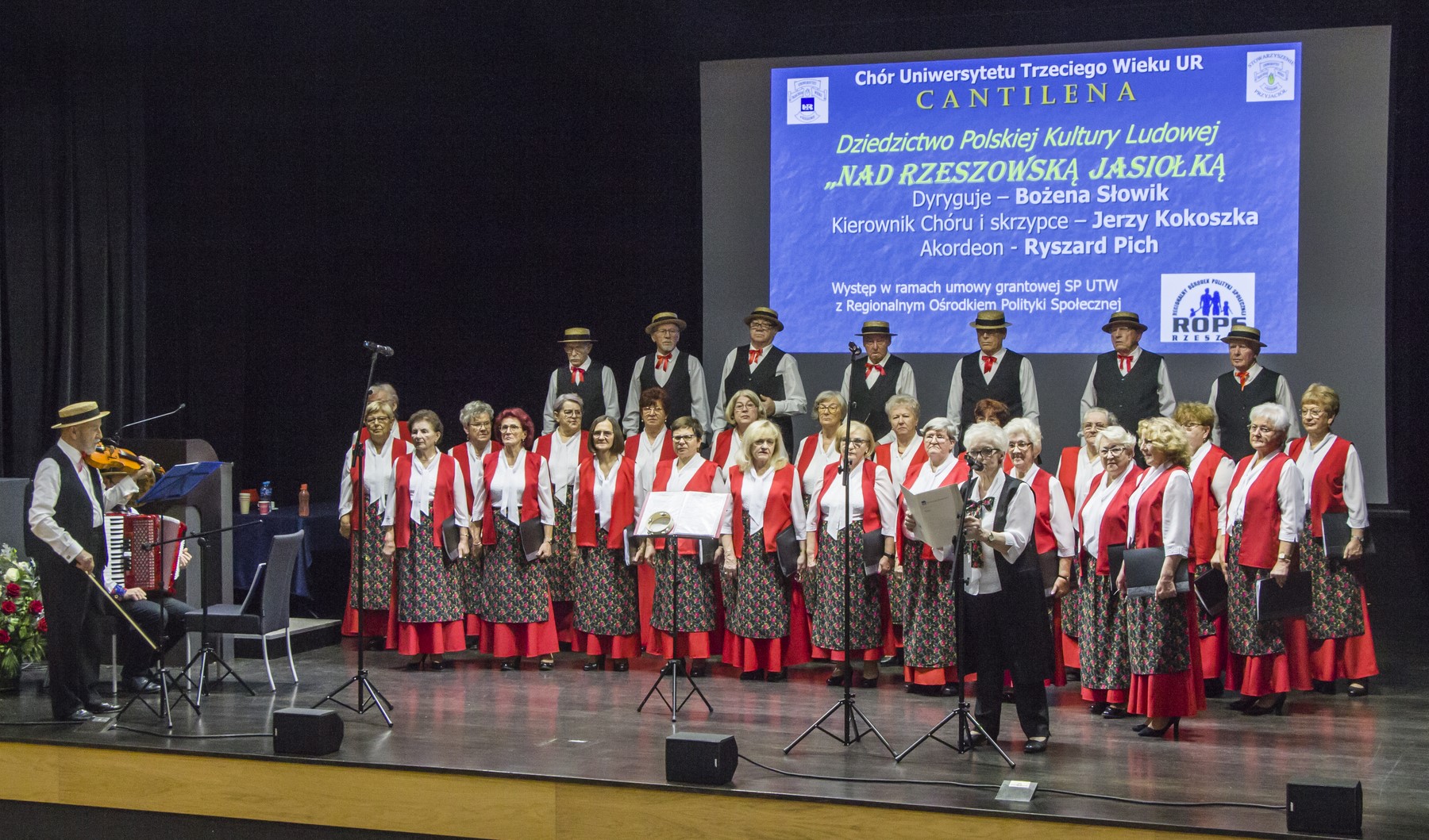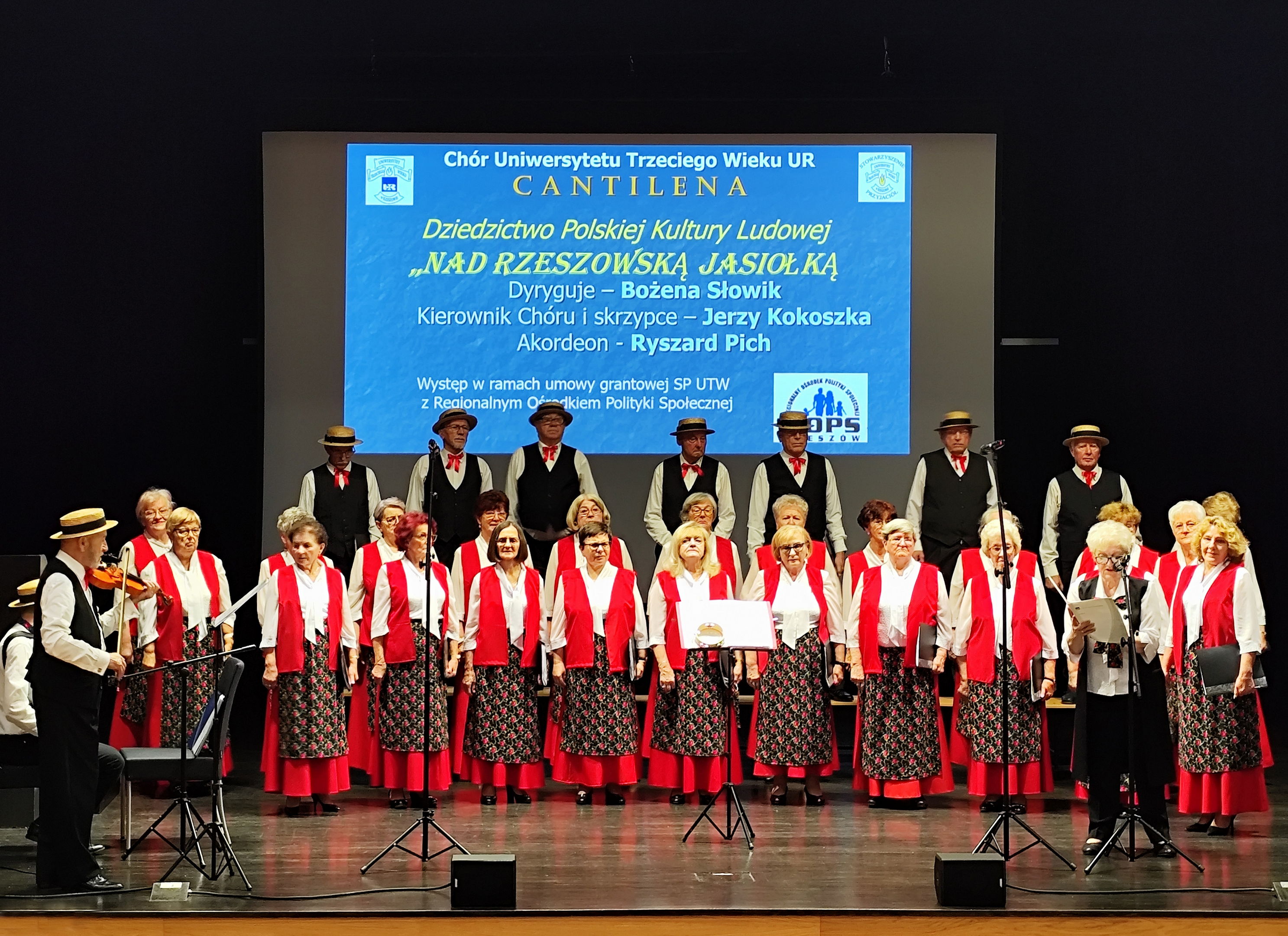 Po uroczystym otwarciu miała miejsce część oficjalna, zaś po przerwie kawowej Chór UTW-UR Cantilena wystąpił ponownie przy akompaniamencie Ryszarda Picha (akordeon) i Jerzego Kokoszki (skrzypce). Słowo wstępne o przygotowanym na ten dzień repertuarze wygłosiła dyrygentka chóru - Bożena Słowik. Repertuar był ściśle związany z projektem ROPS "Seniorzy poznają dziedzictwo Podkarpacia". Bożena Słowik, chcąc przybliżyć słuchaczom UTW wybór repertuaru, odwołała się do dorobku wybitnego polskiego etnografa i folklorysty Oskara Kolberga, który spisał i uwiecznił polskie pieśni i przyśpiewki ludowe, w tym tarnowskie i rzeszowskie.