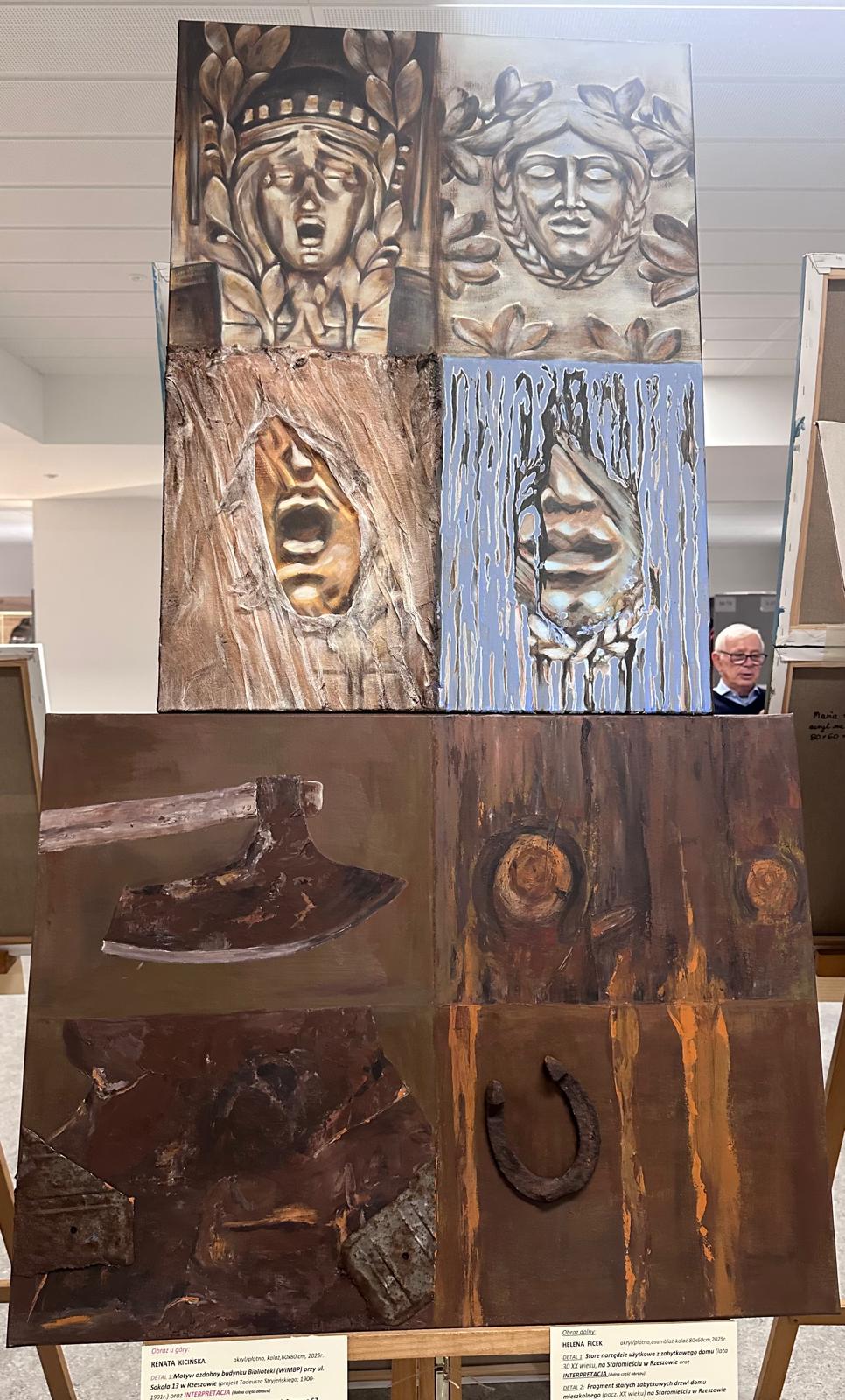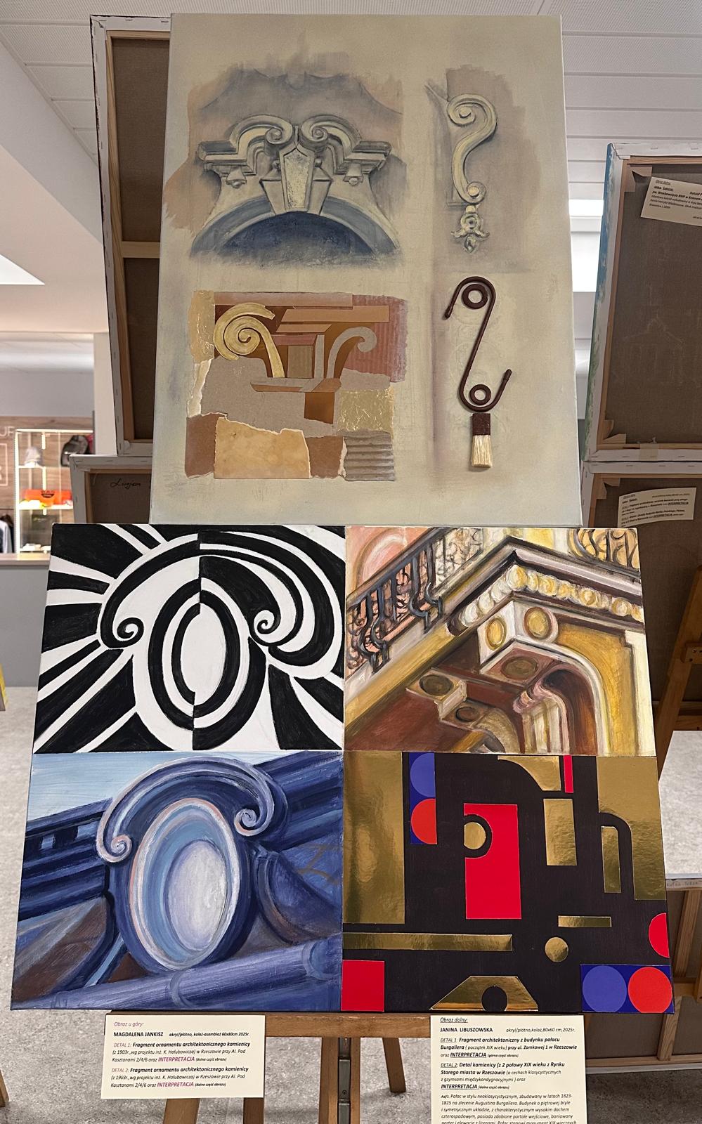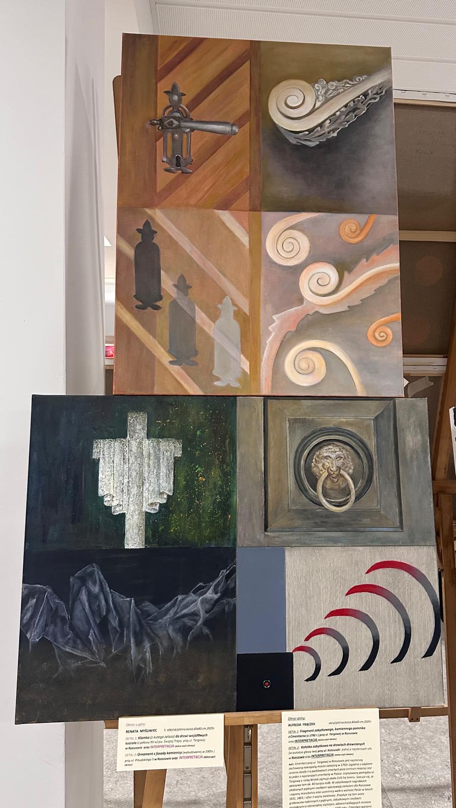 dwa realistyczne detale architektoniczne Rzeszowa i dwie malarskie interpretacje powyższych detali. Tu Grupa dała się poznać od strony niezwykłej pomysłowości, zarówno w interpretacji, jak i różnorodności technik malarskich /pędzel, szpachla, kolaż i inne.../.