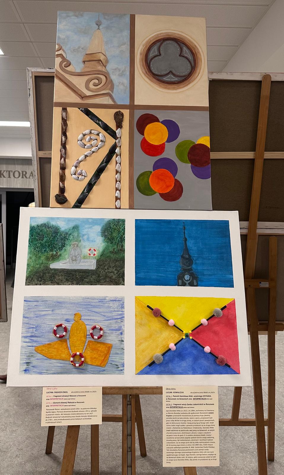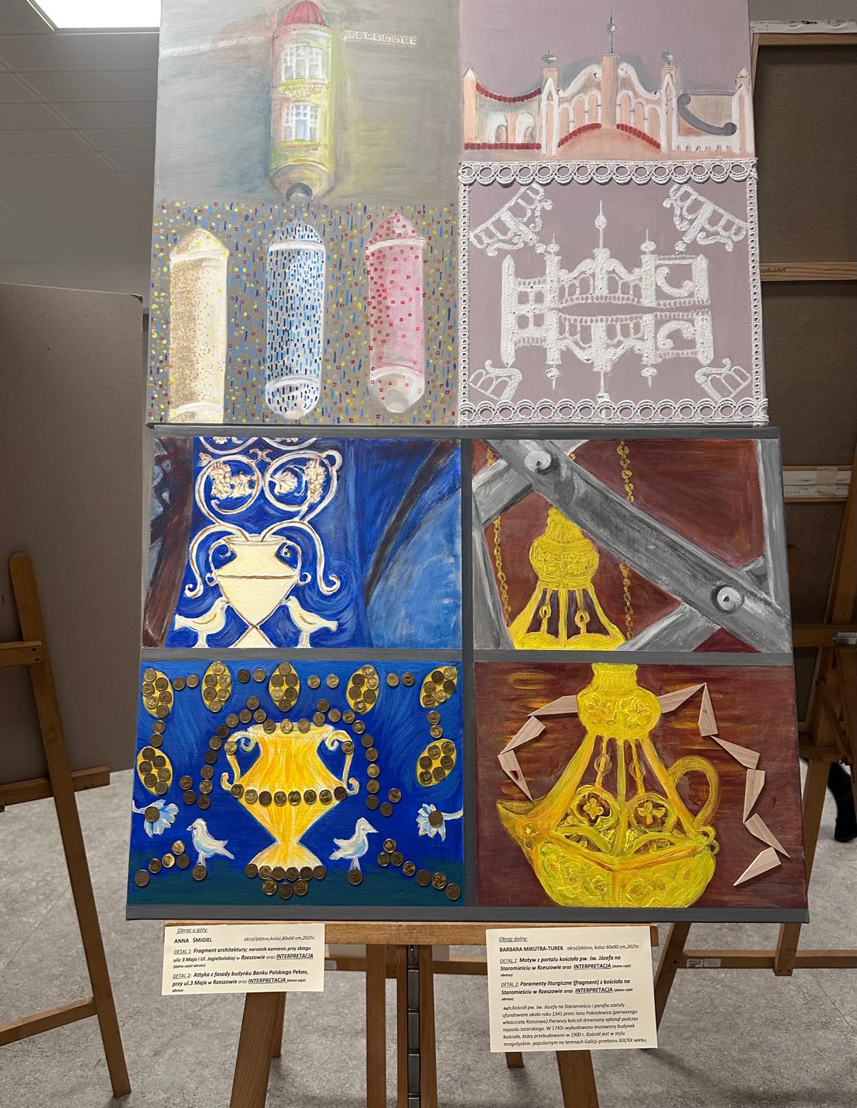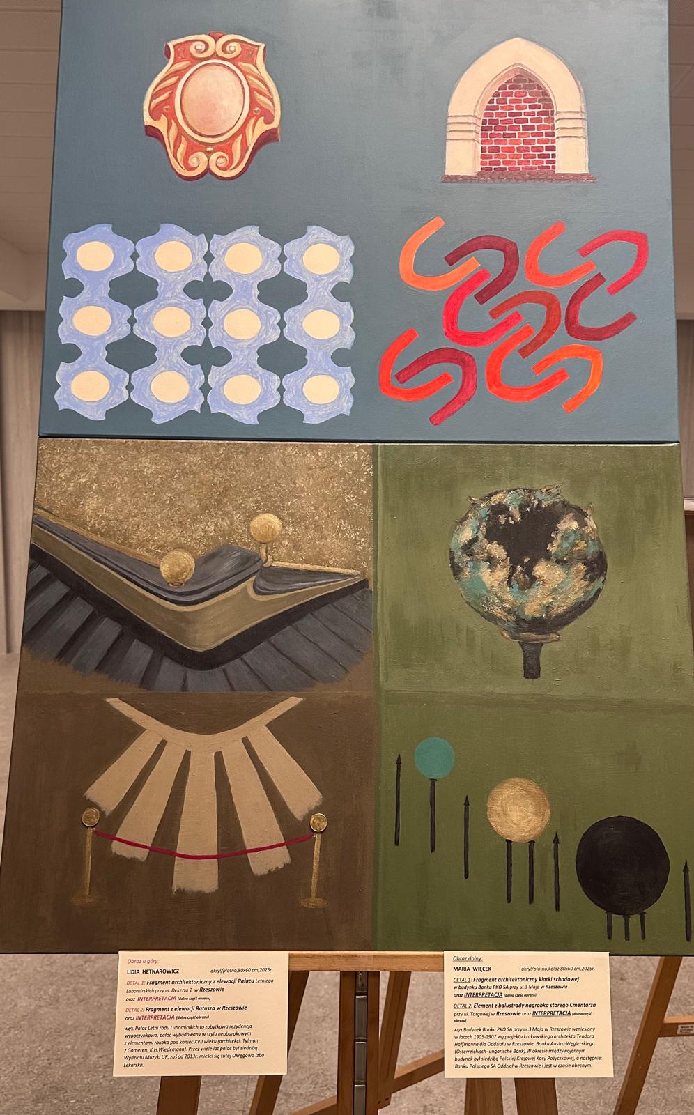 dwa realistyczne detale architektoniczne Rzeszowa i dwie malarskie interpretacje powyższych detali. Tu Grupa dała się poznać od strony niezwykłej pomysłowości, zarówno w interpretacji, jak i różnorodności technik malarskich /pędzel, szpachla, kolaż i inne.../.