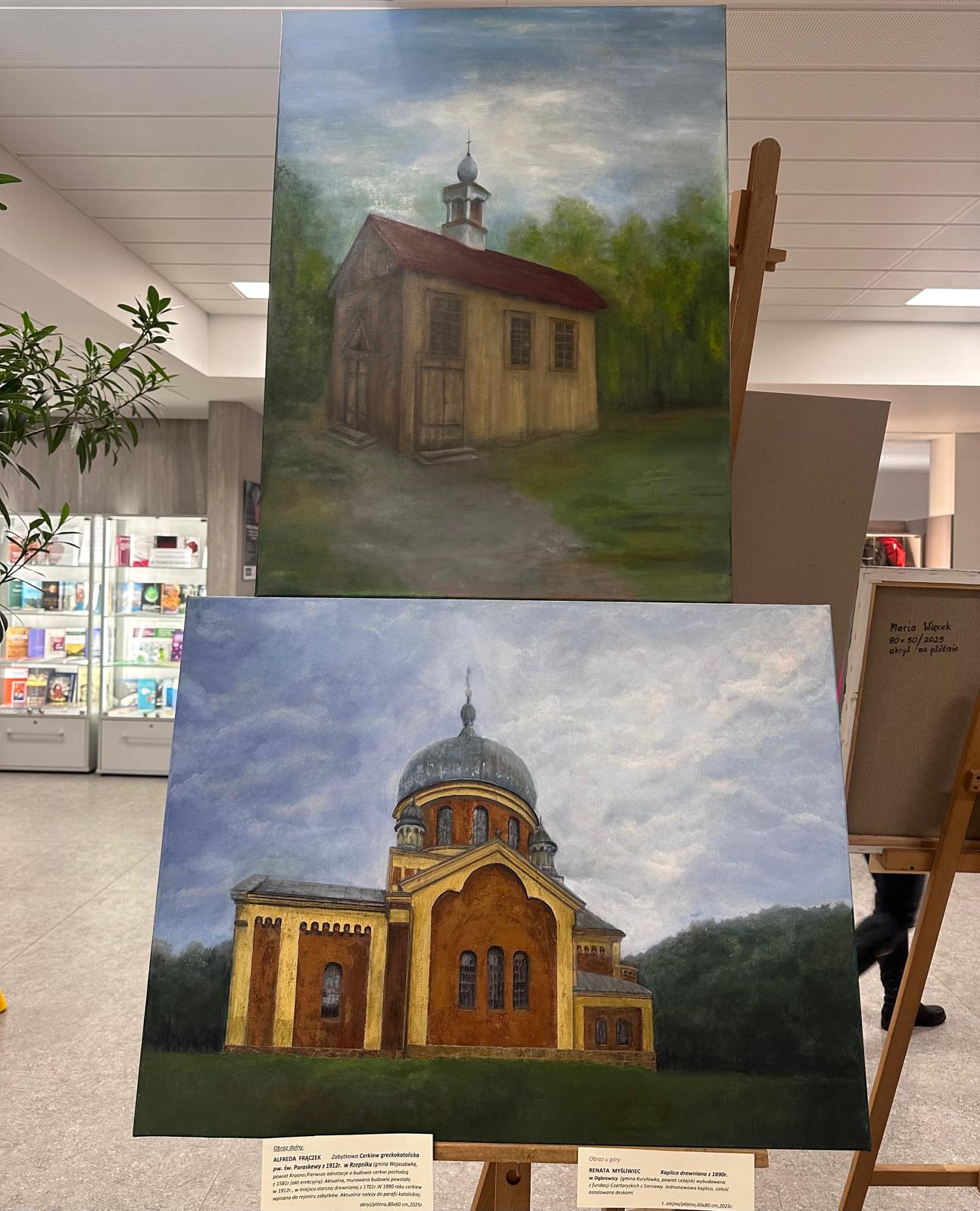 Całość WYSTAWY dopełniły podpisy każdego obrazu, gdzie oprócz imienia i nazwiska autorów prac, był dokładny opis miejsca, gdzie znajduje się dany obiekt i jego krótki rys historyczny. To wzbudzało ogromne zainteresowanie wśród osób oglądających i zachęcało do zatrzymania się i głębszego poznania danego obiektu.