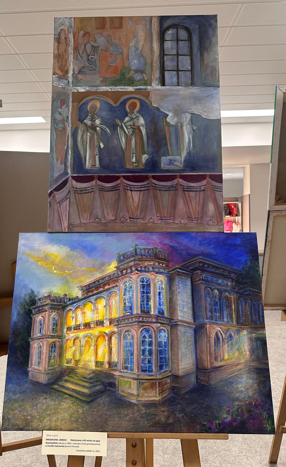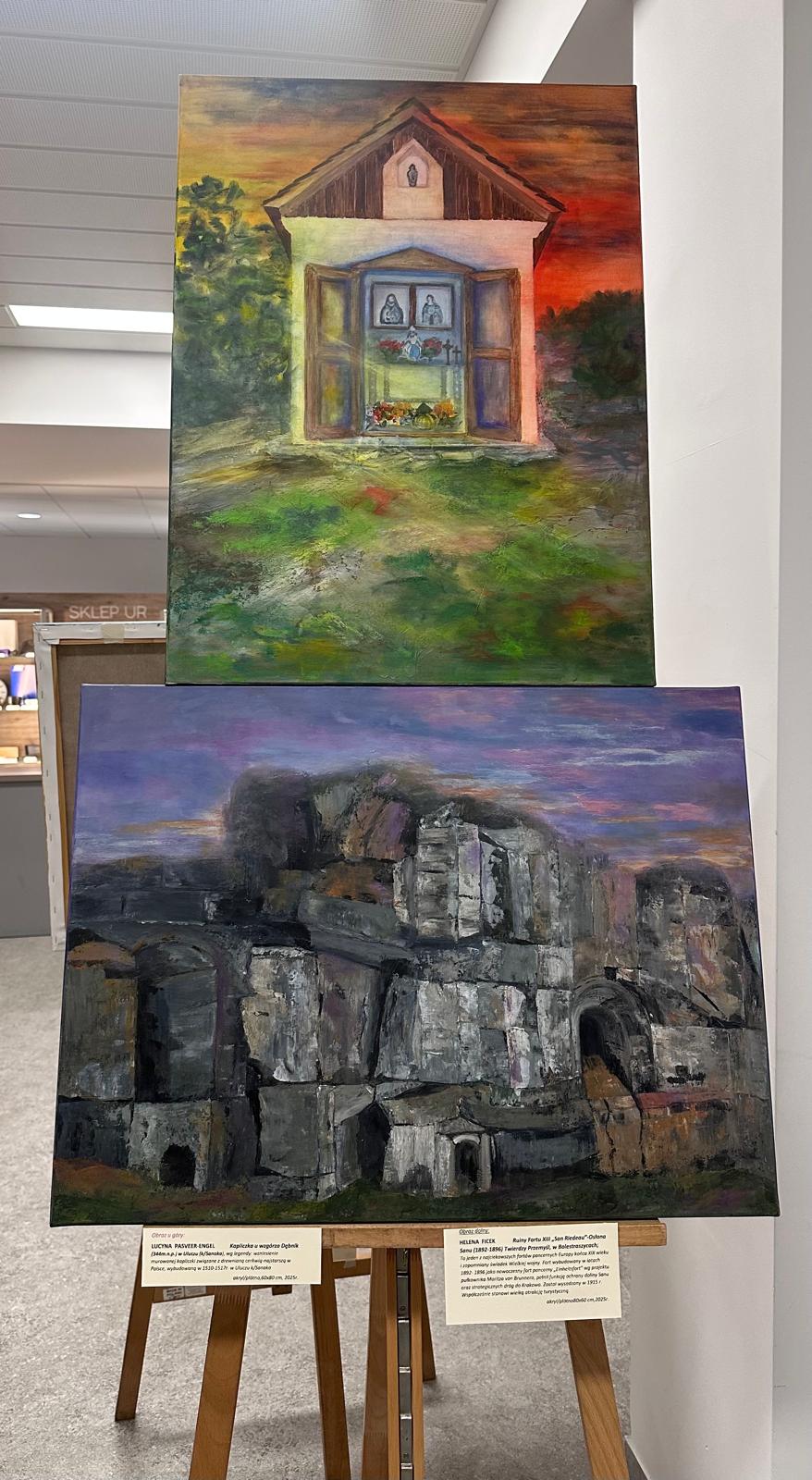 Wystawiliśmy 26 płócien o rozmiarach 80x60 - efekt wielomiesięcznej pełnej pasji i wytrwałości pracy naszej trzynastoosobowej grupy seniorów. Okazało się, że prace te "nie były tylko ćwiczeniem malarskim", ale niezwykłą lekcją historii. Wszyscy z pełnym oddaniem odwiedzali liczne zakątki Podkarpacia, by przypomnieć o starych budynkach, cerkwiach, kapliczkach w miejscach, które niekiedy mijamy nie zdając sobie sprawy z ich wartości. Każdy z nas świadomie poszukiwał innego obiektu, innego motywu i innego śladu historii, który wart jest zachowania, co uczyniło tę Wystawę nie tylko artystycznie różnorodną, ale też cenną historycznie.