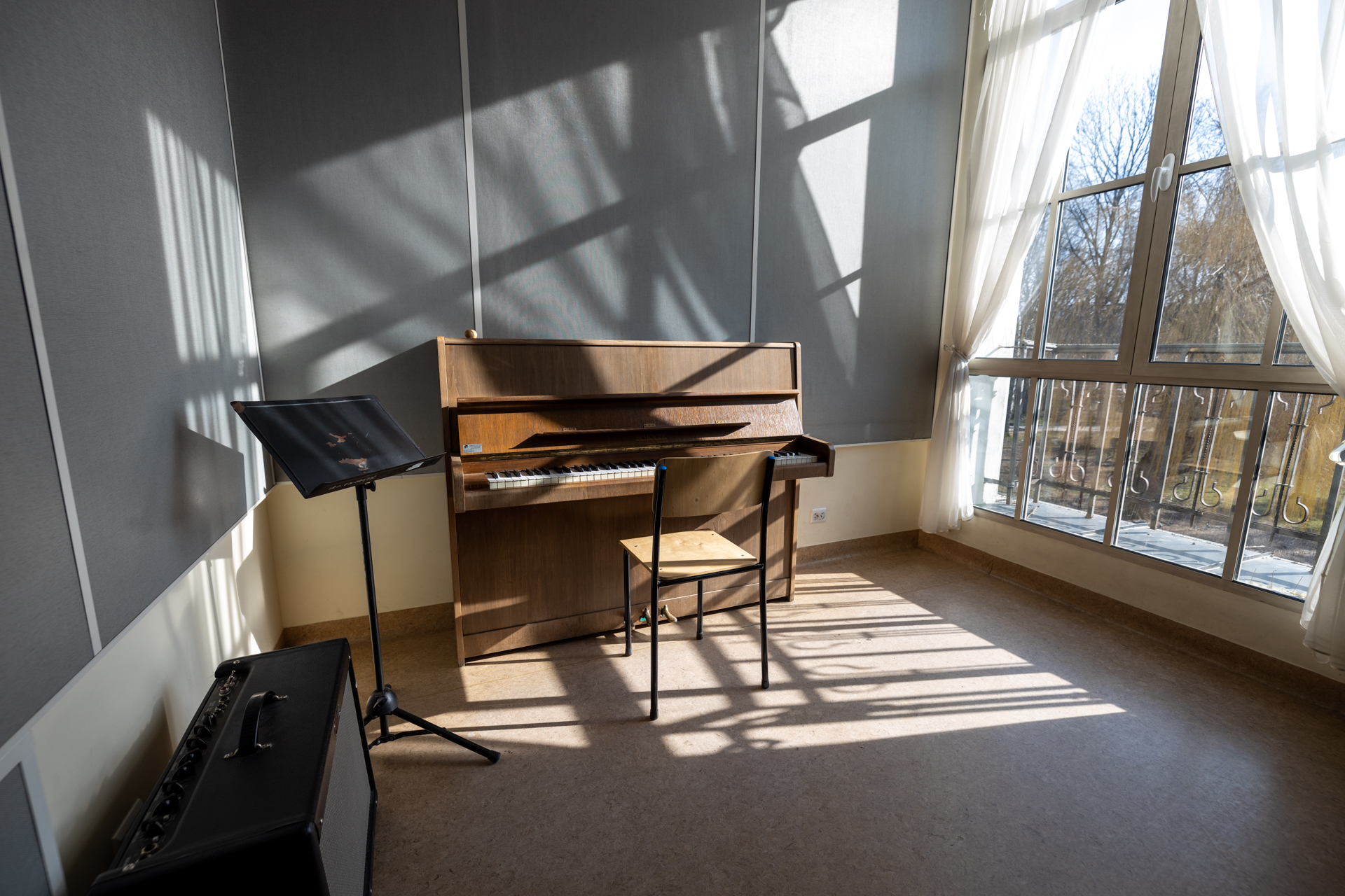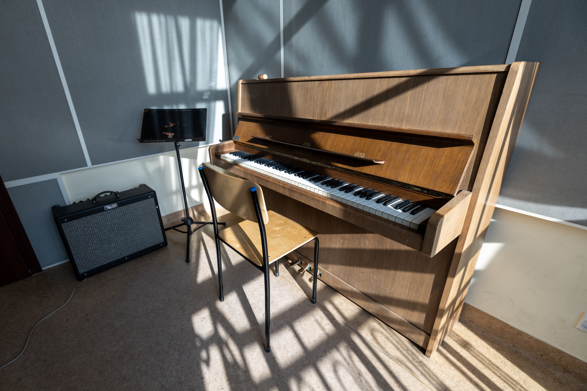 Sala pozostająca w dyspozycji Wydziału Muzyki, usytuowana w budynku E5 przy ul. Dąbrowskiego 83, z możliwością udostępniania do ćwiczeń na instrumentach klawiszowych oraz strunowych
