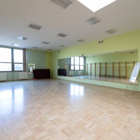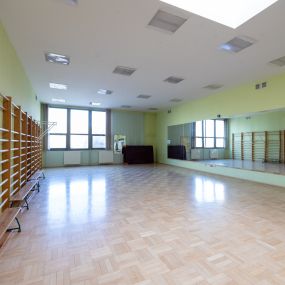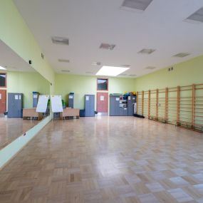 Sala gimnastyczna nr 111 znajdująca się w dyspozycji Instytutu Nauk o Kulturze Fizycznej, sytuowana na w budynku E4 przy ul. Cichej 2a