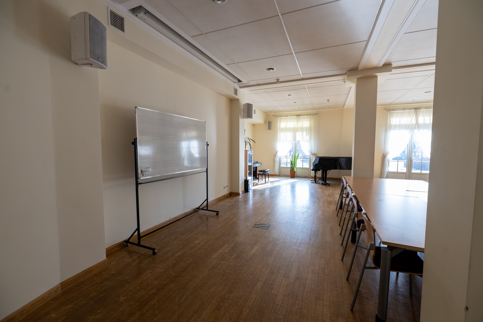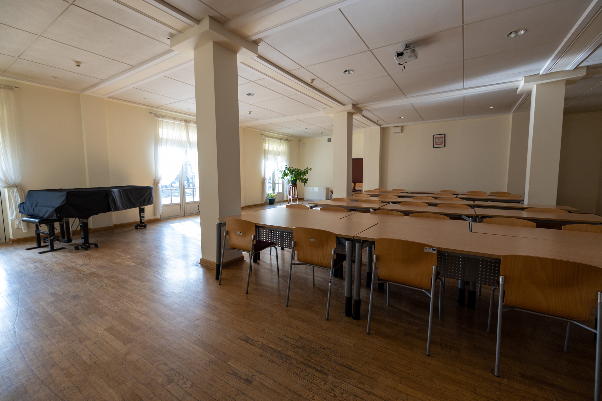 Sala pozostająca w dyspozycji Wydziału Muzyki, usytuowana w budynku E5 przy ul. Dąbrowskiego 83