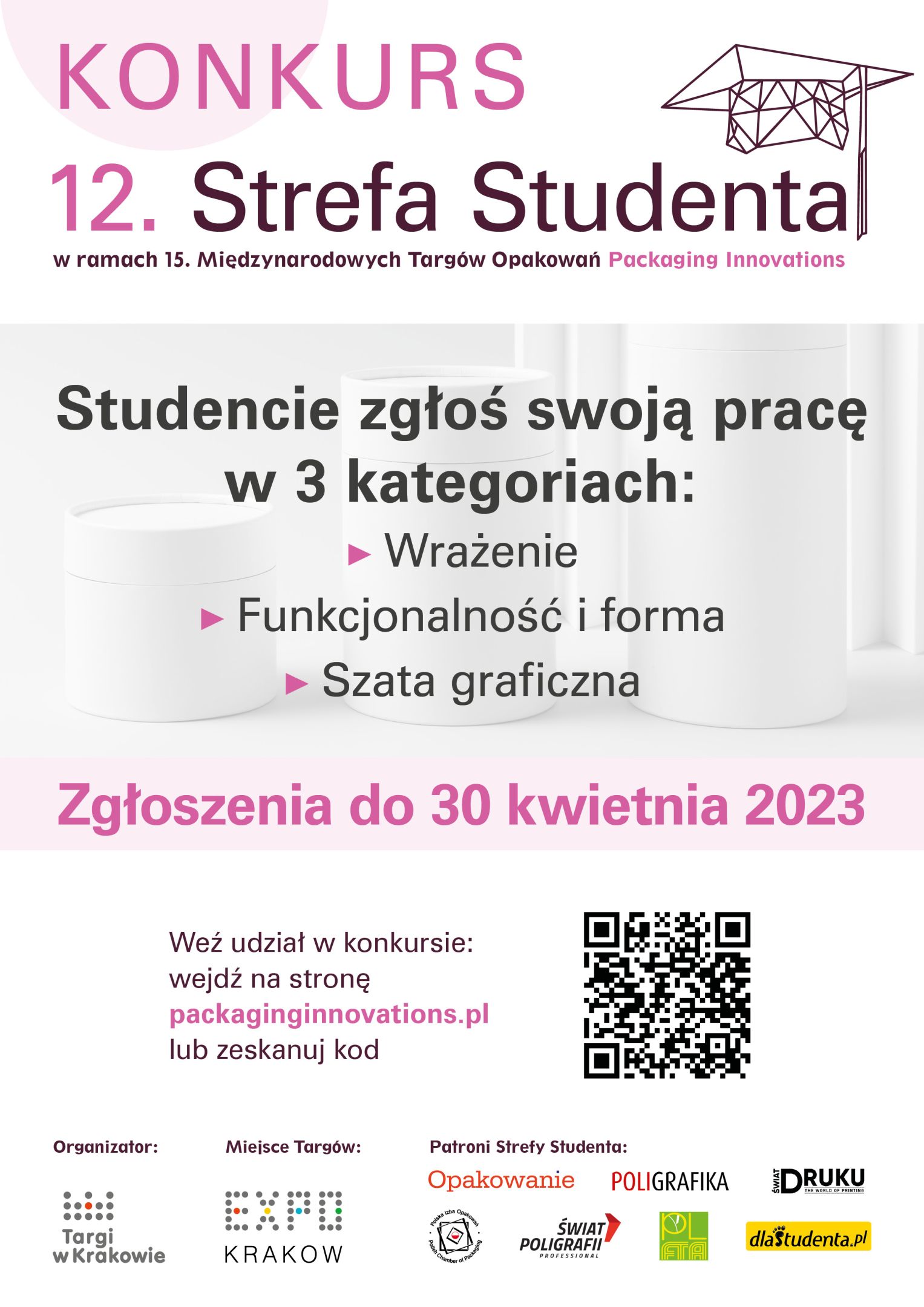 Strefa Studenta to konkurs skierowany do młodych projektantów, który stwarza niepowtarzalną szansę na nawiązanie pierwszych kontaktów biznesowych i pozyskanie poważnych zawodowych zleceń.Konkurs składa się z dwóch etapów i zostanie rozstrzygnięty w trzech kategoriach: Wrażenie, Funkcjonalność i forma oraz Szata graficzna.