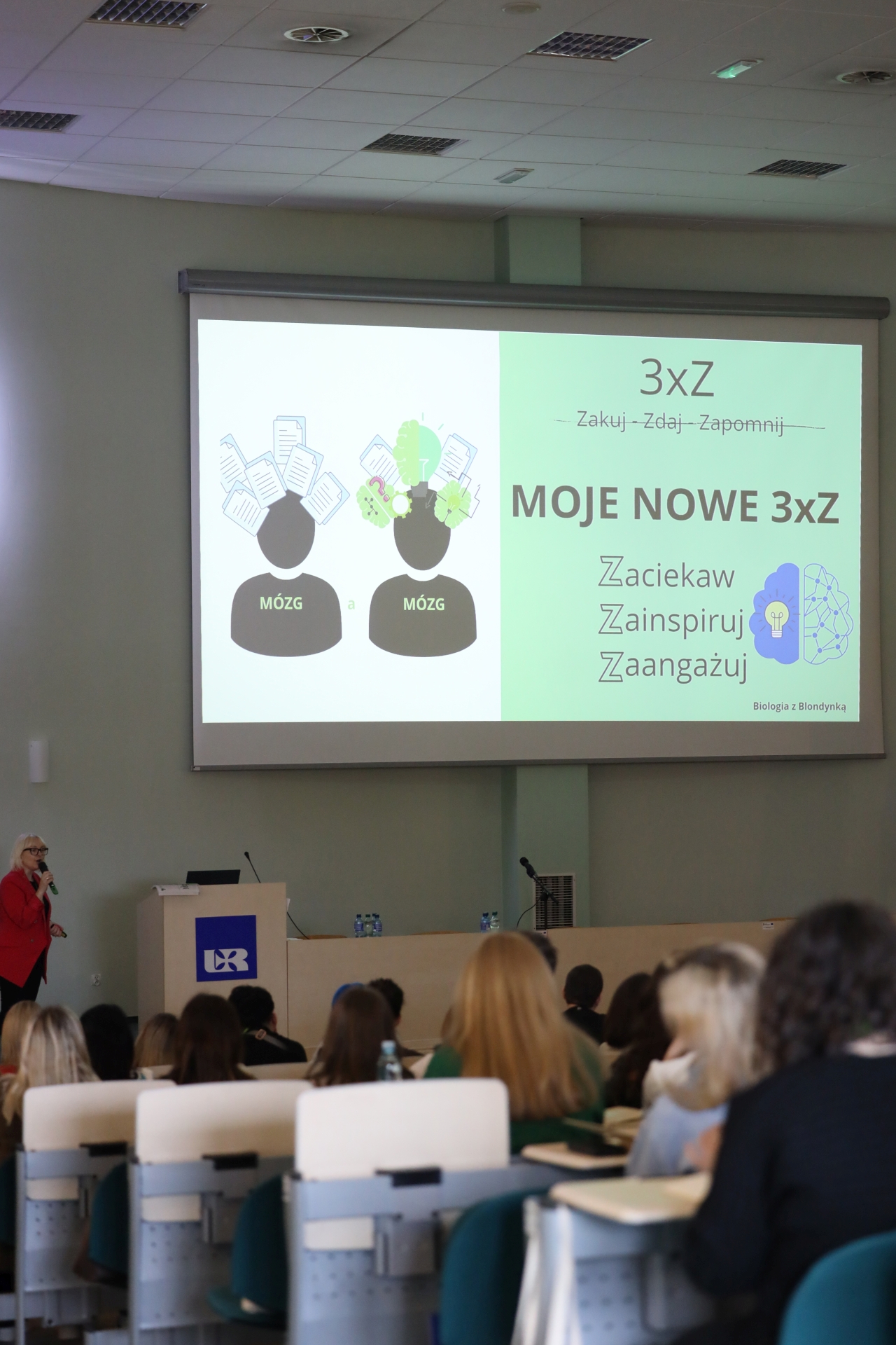 Wśród prelegentów znaleźli się: mgr Joanna Gadomska („Biologia z Blondynką”), która mówiła o angażowaniu wszystkich uczniów na lekcji; mgr Marta Grębosz, ekspert Okręgowej Komisji Egzaminacyjnej w Krakowie, podejmująca temat biologii na egzaminie maturalnym; mgr Jakub Stanek, współtwórca marki „Naukowców Dwóch”, prezentujący refleksję nad tym, jak uczyć o życiu i samemu nie tracić pasji; dr Małgorzata Marmola i dr Anna Wańczyk-Welc z Uniwersytetu Rzeszowskiego, które mówiły o dobrostanie i zdrowiu psychicznym młodzieży; prof. dr hab. Andrzej Skoczowski, przedstawiający światło jako sygnał biologiczny u roślin; oraz dr hab. Mateusz Mołoń, prof. UR, który zaprezentował wykład „Od sekwencji do funkcji: najnowsze odkrycia w genetyce i biologii molekularnej oraz ich zastosowania dydaktyczne”.