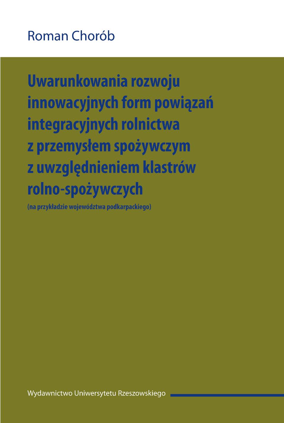 Chorób R.Determinants of development of innovative integration links between agriculture and food industry. Selected issuesWydawnictwo Uniwersytetu Rzeszowskiego, Rzeszów 2016 |
