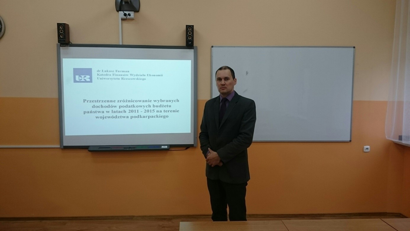 W dniu 22 marca 2017 r. Pan dr Wojciech Lichota z Wydziału Ekonomii Uniwersytetu Rzeszowskiego przeprowadził wykład dla uczniów III klasy Liceum Ogólnokształcącego im. Św. St. Kostki w Kamieniu pt. „Metody oceny kondycji finansowej przedsiębiorstw”.