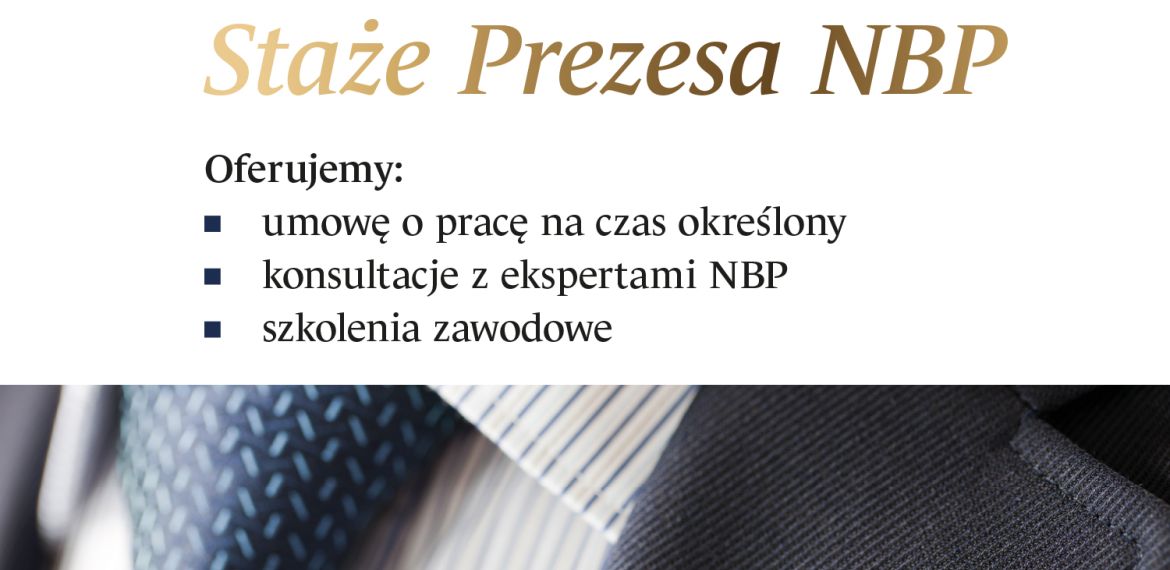 Narodowy Bank Polski informuje, że rozpoczęła się kolejna edycja programu „Staże Prezesa NBP”. Absolwenci uczelni wyższych mogą ubiegać się o staż w Centrali i Oddziałach Okręgowych Narodowego Banku Polskiego.