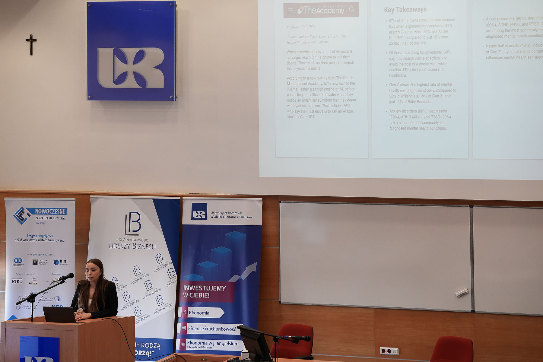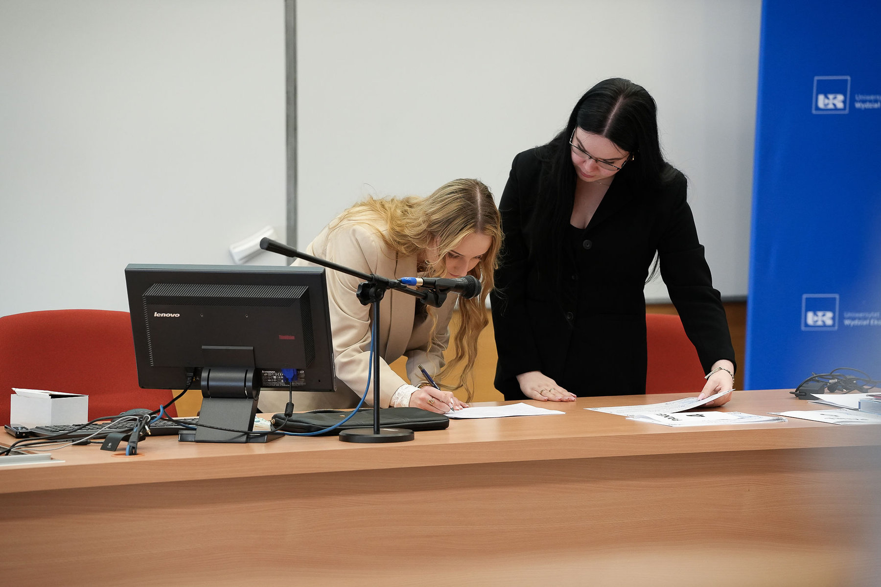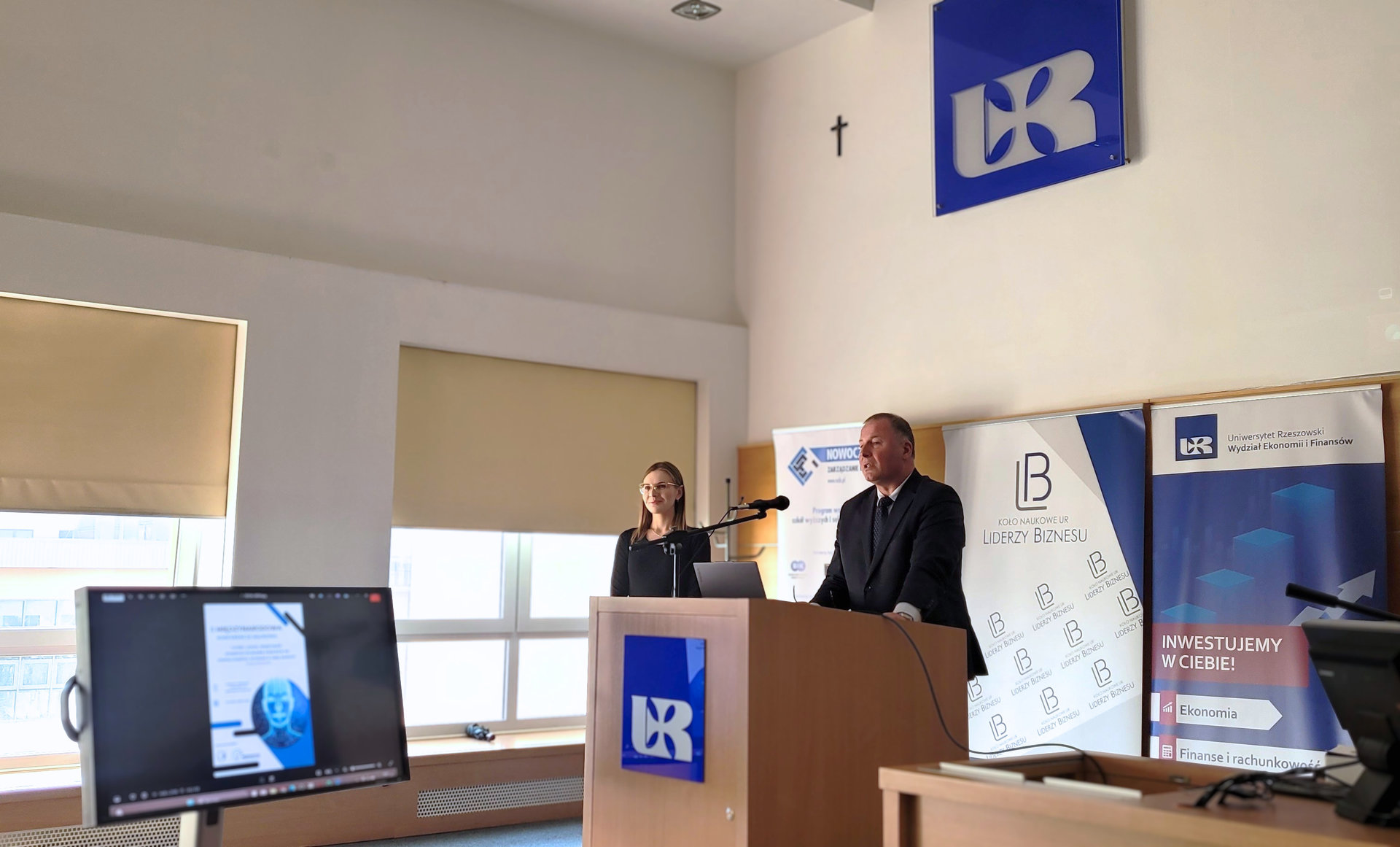 W dniu 18 marca 2026 roku na Wydziale Ekonomii i Finansów Uniwersytetu Rzeszowskiego odbyła się II Międzynarodowa Konferencja Naukowa pt. „Liczby, ludzie, przestrzeń – interdyscyplinarne podejście do współczesnych wyzwań w erze danych”. Wydarzenie zostało zorganizowane wspólnymi siłami przez Studenckie Koło Naukowe Ekonomistów „Interkreator” oraz Studenckie Koło Naukowe Matematyków Uniwersytetu Rzeszowskiego. Konferencja po raz kolejny stała się istotną przestrzenią prezentacji wyników badań oraz wymiany doświadczeń młodych naukowców w środowisku międzynarodowym, co dodatkowo podkreślił hybrydowy charakter spotkania.