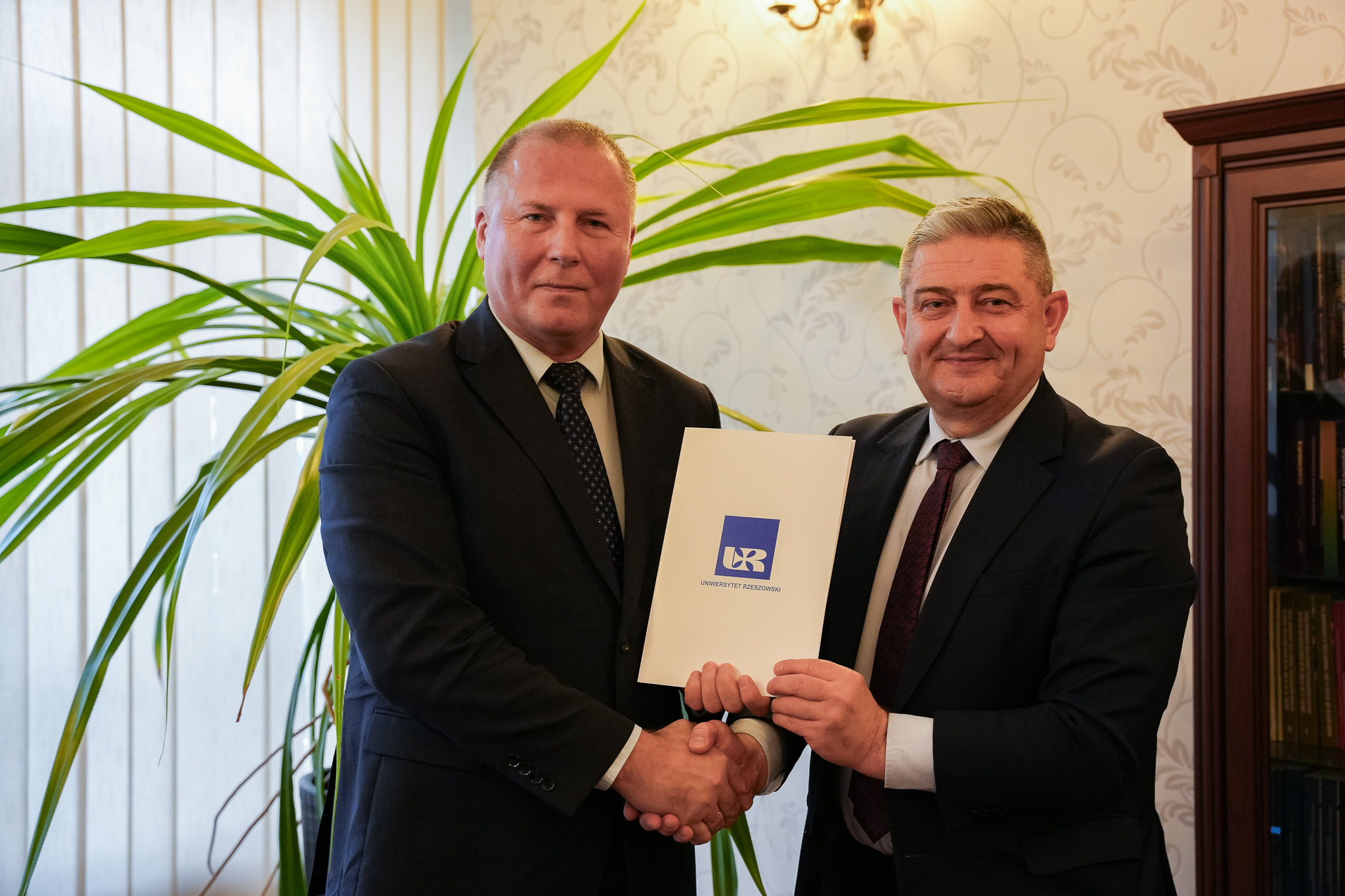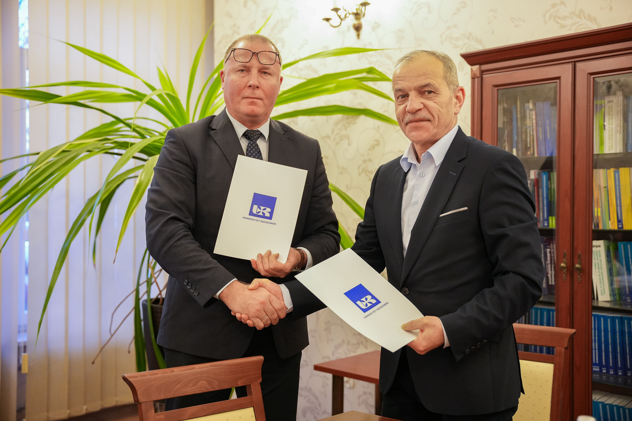 5 grudnia 2025 r. Wydział Ekonomii i Finansów Uniwersytetu Rzeszowskiego podpisał kolejne trzy umowy o współpracy ze szkołami średnimi. Podczas spotkania Dziekana Wydziału, dra hab. prof. UR Bogdana Wierzbińskiego, oraz Pełnomocnika ds. współpracy ze szkołami średnimi, dra Piotra Cyrka, z przedstawicielami dyrekcji: