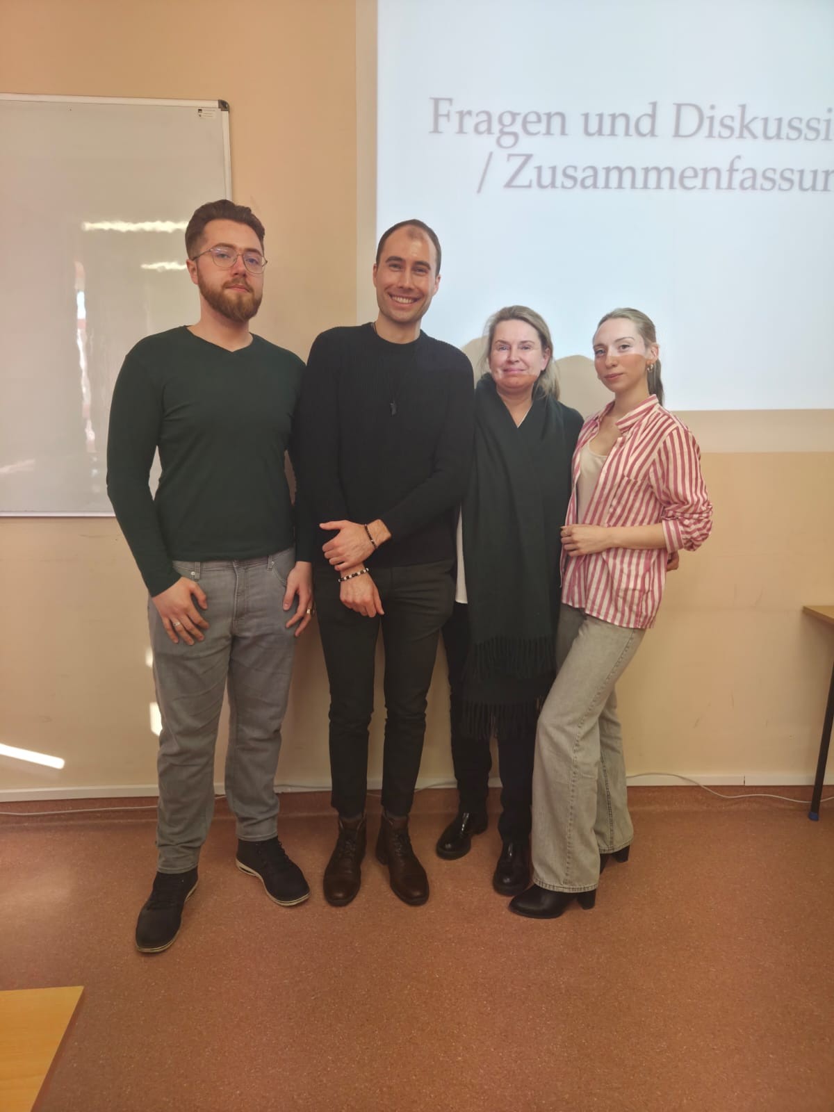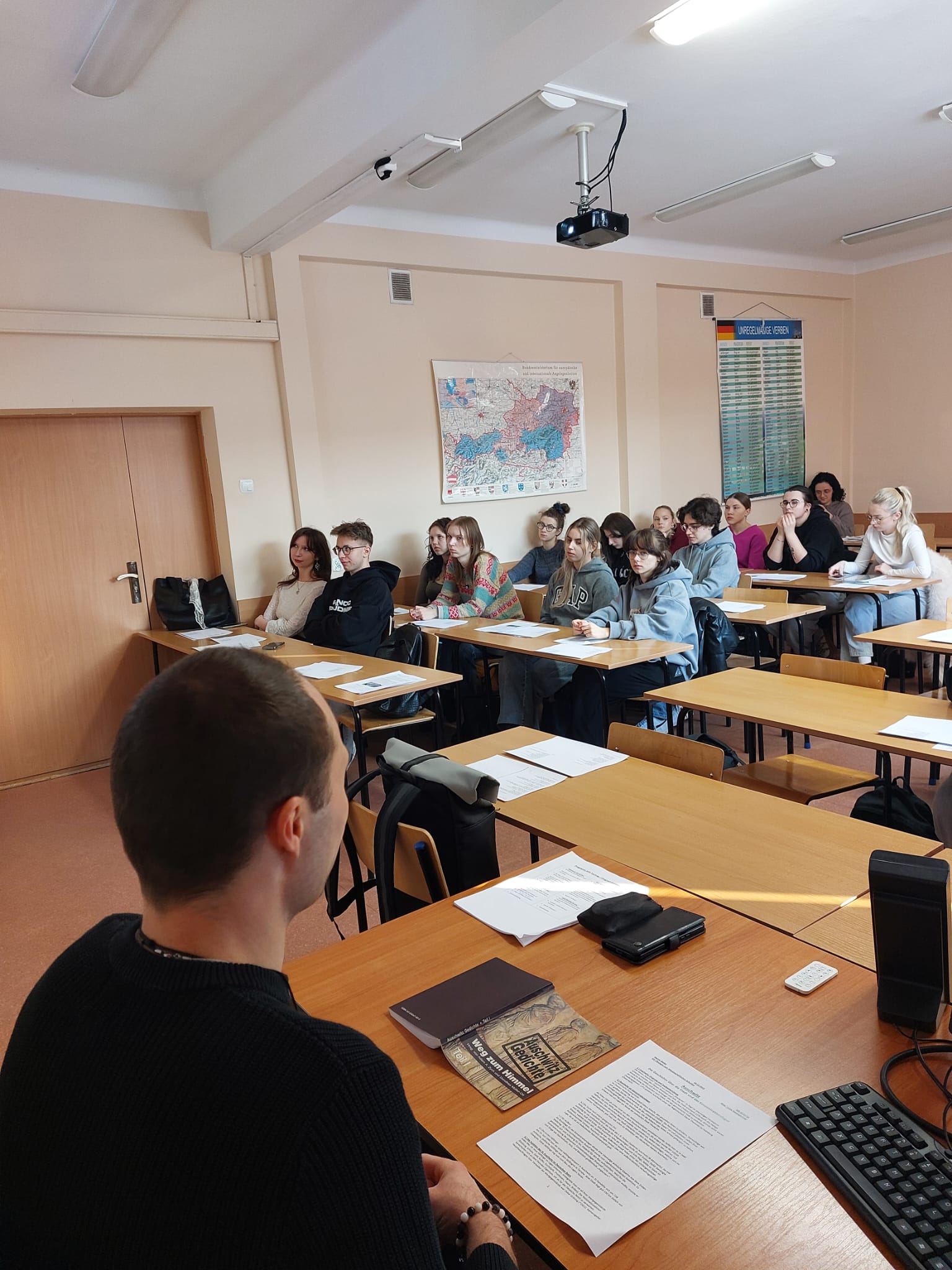 Teksty dostępne były w wersji polskiej i niemieckiej, co zapewniło duży komfort pracy. Studenci chętnie dzielili się również swoimi doświadczeniami i refleksjami. Mimo trudnej i wymagającej tematyki warsztaty przebiegły w miłej i pełnej szacunku atmosferze – dzięki zaangażowaniu studentów oraz prowadzącemu, który swoją otwartością i uśmiechem nadał całemu wydarzeniu wyjątkowy charakter.