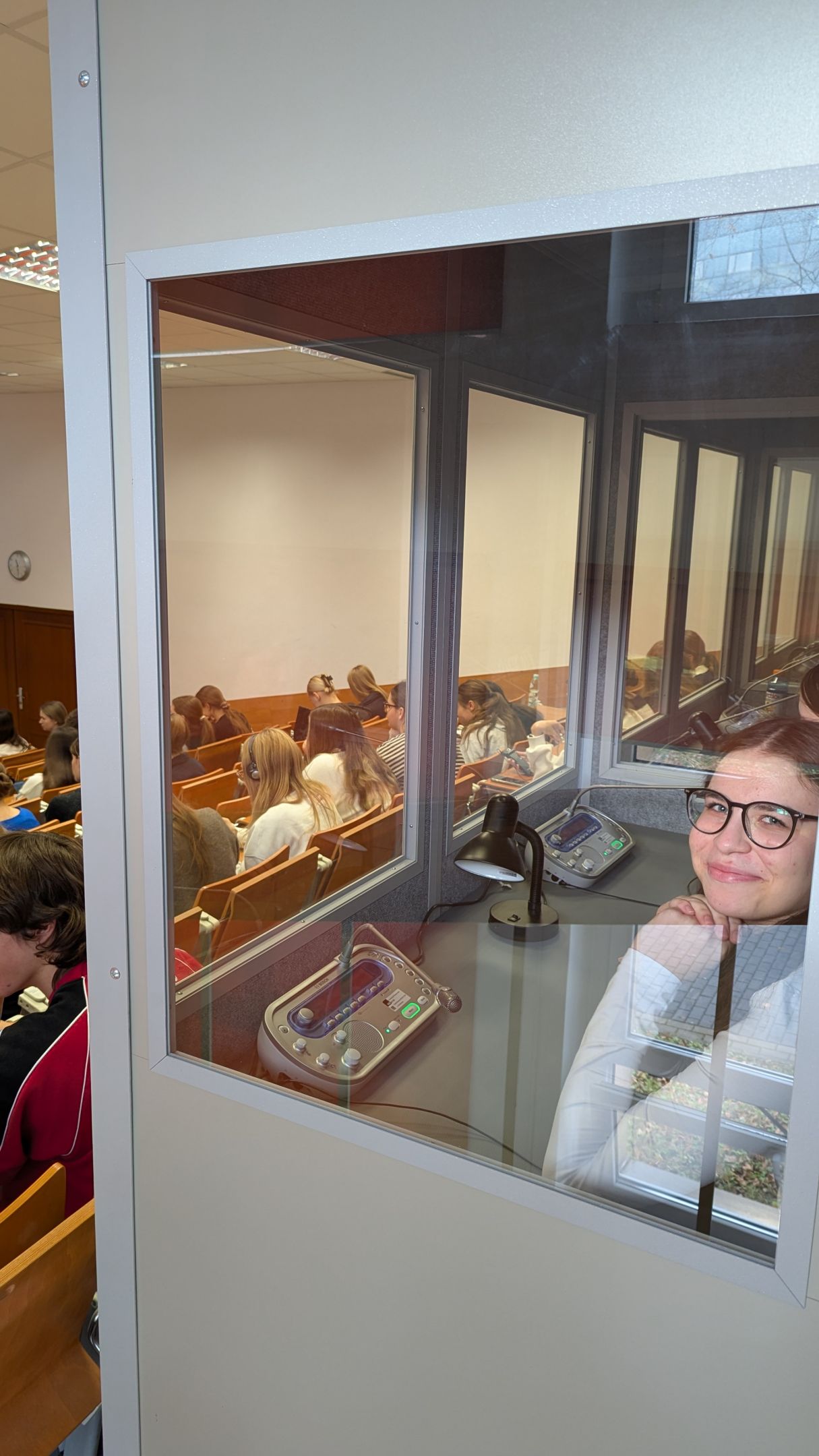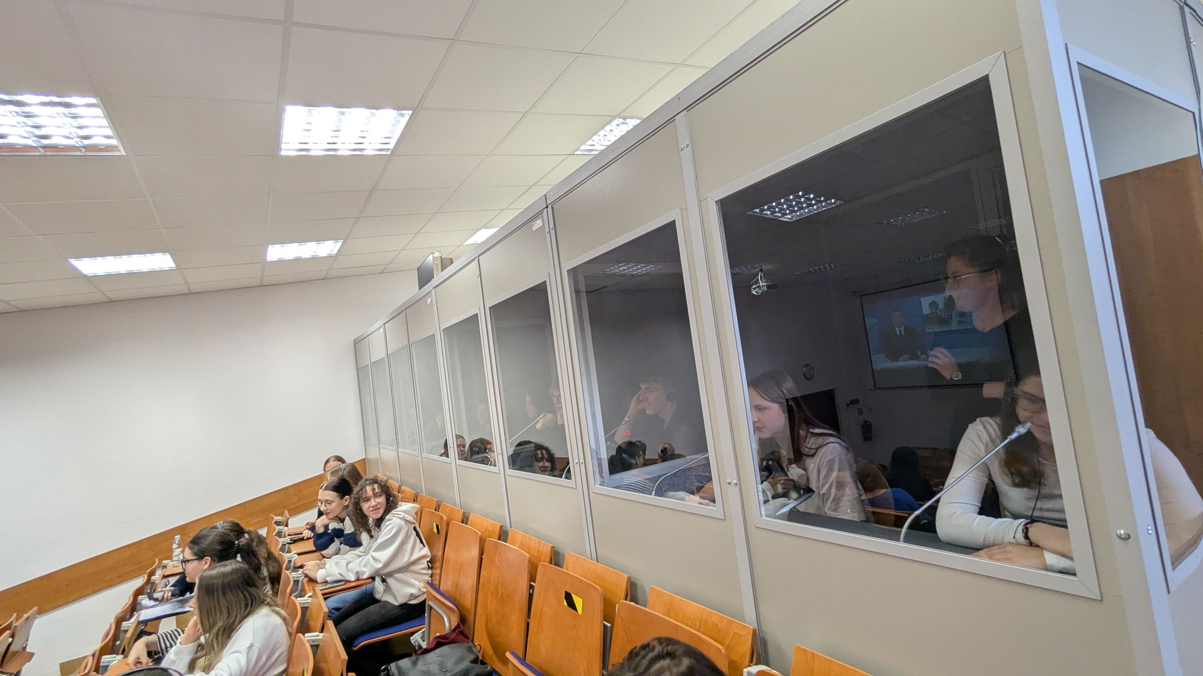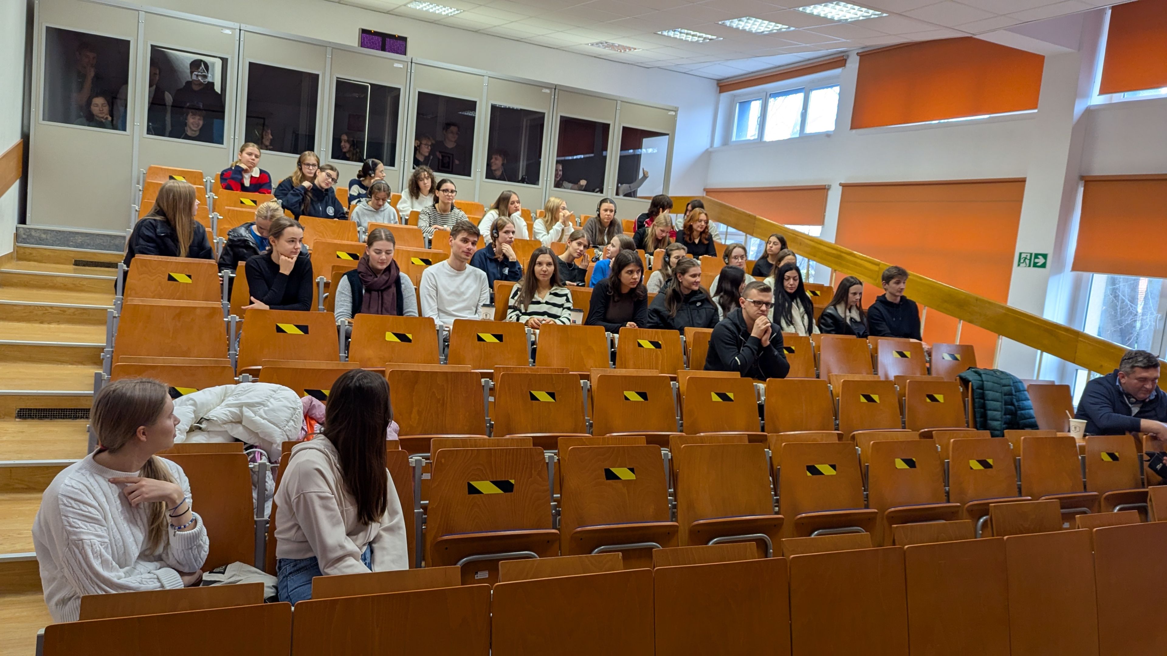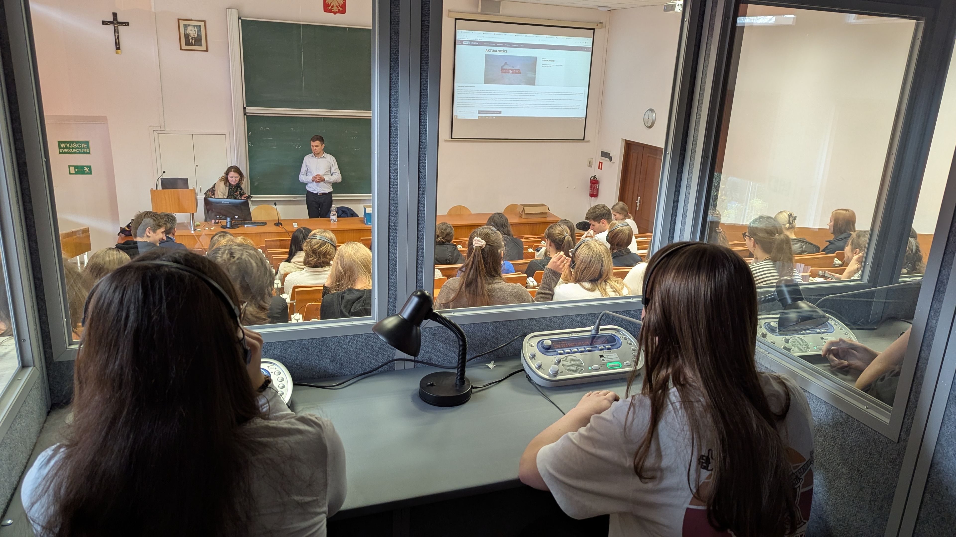 W dniu 18 listopada 2024 r. odbyły się kolejne warsztaty w ramach inicjatywy Linguistic Patronite. Katedrę Lingwistyki Stosowanej odwiedzili uczniowie z Liceum Ogólnokształącego im. Jana Pawła II Sióstr Prezentek z Rzeszowa wraz ze swoimi nauczycielami języka angielskiego, panią mgr Barbarą Rudawską i panem dr. Stanisławem Wojnarem. W ramach wizyty licealiści mieli okazję uczestniczyć w wykładzie dr. Bartosza Bucia zatytułowanym: "O tłumaczeniach i tłumaczach w pigułce", który swoją tematyką obejmował następujące zagadnienia: rodzaje tłumaczeń pisemnych i ustnych, wprowadzenie do teorii tłumaczeń, błędy w tłumaczeniach oraz sztuczna inteligencja w tłumaczeniach. Następnie uczniowie wzięli udział w warsztatach tłumaczenia symultanicznego, które poprowadzili dr Iwona Szwed oraz dr Bartosz Buć. Na wstępie uczniowie mogli podziwiać umiejętności tłumaczeniowe studentów 2 stopnia lingwistyki stosowanej pani Magdaleny Okoń i pana Michała Wilka, po czym sami przystąpili do ćwiczeń tłumaczeniowych w kabinach oraz przy użyciu tour-guidów. Mogli przy tym liczyć na wsparcie studentek 1 stopnia lingwistyki stosowanej, pań Weroniki Bokoty i Alicji Niemiec. Uczniowie z dużym zapałem podeszli do ćwiczeń i zadeklarowali chęć ponownej wizyty w KLS.