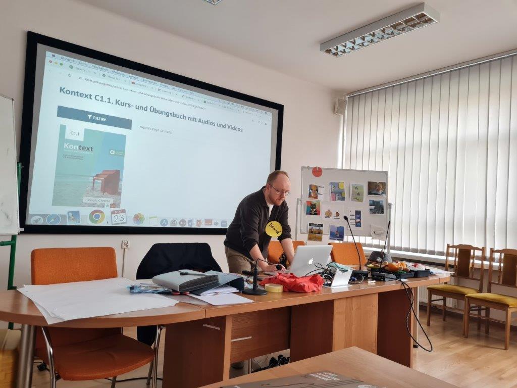 Katedra Lingwistyki Stosowanej wraz z Instytutem Goethego w Krakowie oraz Medioteką Instytutu Goethego w Rzeszowie przygotowały kolejne warsztaty w ramach cyklu szkoleń #krk_vernetzt. Dwudniowy kurs, przeprowadzony w dniach 22-23 listopada 2024, skierowany był do nauczycieli i lektorów języka niemieckiego i obejmował 16 jednostek zajęć. Warsztaty przeprowadził trener Instytutu Goethego w Krakowie, pan Dawid Borgosz. Tematyka zajęć obejmowała następujące zagadnienia: Umgang mit Hausaufgaben im DaF-Unttericht oraz Nachhaltiges Lernen im DaF-Unterricht.