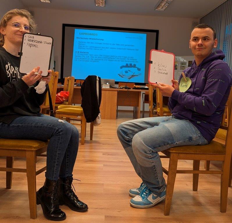 Udział w warsztatach okazał się niezwykłą okazją do porównania perspektywy studenta i nauczyciela. Mieliśmy okazję zarówno do integracji z nauczycielami i wykładowcami języka niemieckiego poprzez różne aktywności, jak też do dyskusji na temat prac domowych. Ta wymiana doświadczeń odbyła się w języku niemieckim, co dodatkowo podniosło poziom trudności. Jednak wszyscy byli wyrozumiali i otwarci na pytania z naszej, studenckiej strony. Moim ulubionym punktem programu była aktywność o tajemniczej nazwie „Rumpfdialog”. Jeśli ktoś chce się dowiedzieć, o co chodziło, koniecznie musi wziąć udział w kolejnym szkoleniu!