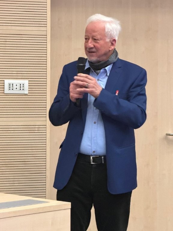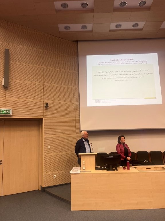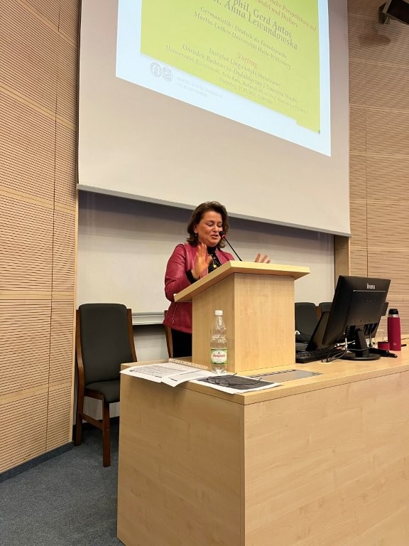 Spotkanie miało szczególny charakter również ze względu na rangę naukową prelegentów. Prof. Gerd Antos należy do grona najwybitniejszych niemieckich językoznawców, a jego dorobek obejmuje fundamentalne prace z zakresu lingwistyki tekstu, pragmatyki, analizy dyskursu i komunikacji publicznej. Dr Anna Lewandowska od lat prowadzi badania nad współczesną dynamiką słownictwa, zmianami znaczeniowymi oraz dydaktyką języka niemieckiego jako obcego, łącząc refleksję językoznawczą z perspektywą glottodydaktyczną.