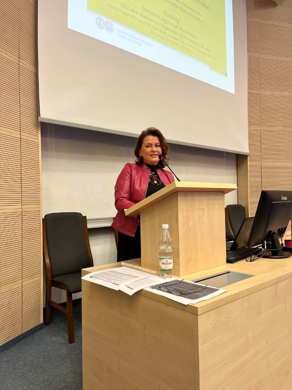 Szczególną uwagę poświęcono pojęciu KI-Ära, wybranemu przez Gesellschaft für deutsche Sprache [Towarzystwo Języka Niemieckiego, odpowiednik polskiej Rady Języka Polskiego] na niemieckie słowo roku 2025. Jak podkreślili prelegenci, termin ten wyraża nie tylko rosnącą obecność sztucznej inteligencji w codziennych praktykach komunikacyjnych, lecz także wskazuje na procesy redefinicji praktyk językowych, sposobów tworzenia tekstów oraz modeli uczestnictwa w dyskursie społecznym. W tym kontekście pokazano, że współczesna leksyka nie jest jedynie biernym odbiciem rzeczywistości, lecz aktywnie uczestniczy w jej konceptualizowaniu.