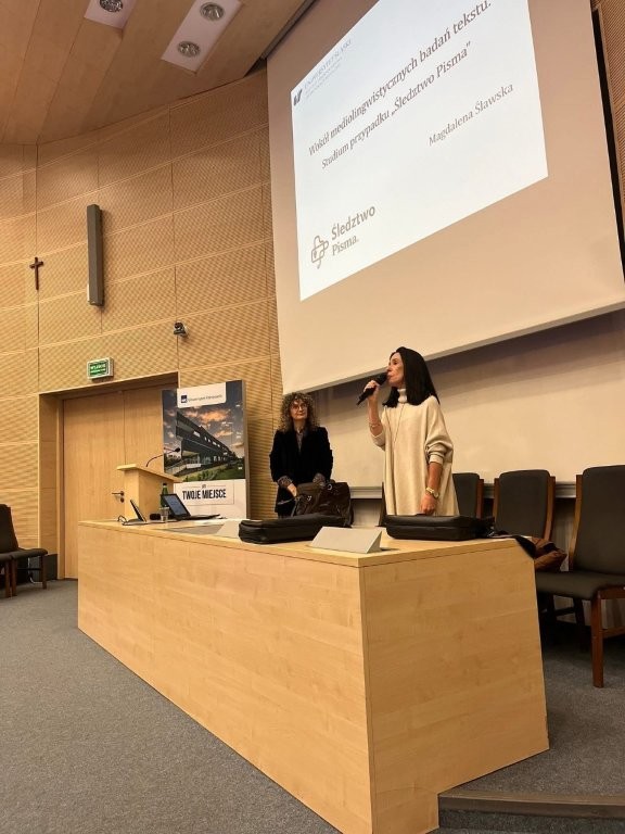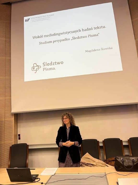 Centralnym punktem wykładu było studium przypadku cyklu reporterskiego „Śledztwo Pisma”, które posłużyło jako przykład pogłębionej analizy tekstów medialnych o wysokim stopniu złożoności gatunkowej i dyskursywnej. Prof. Ślawska zwróciła uwagę na możliwości badania tekstów medialnych z różnych perspektyw, tj. genologicznej, multimodalnej, paratekstowej, autorskiej i dyskursywnej. Wykorzystanie takiego konglomeratu badawczego ma pozwolić na holistyczne podejście do analizowanych zjawisk.