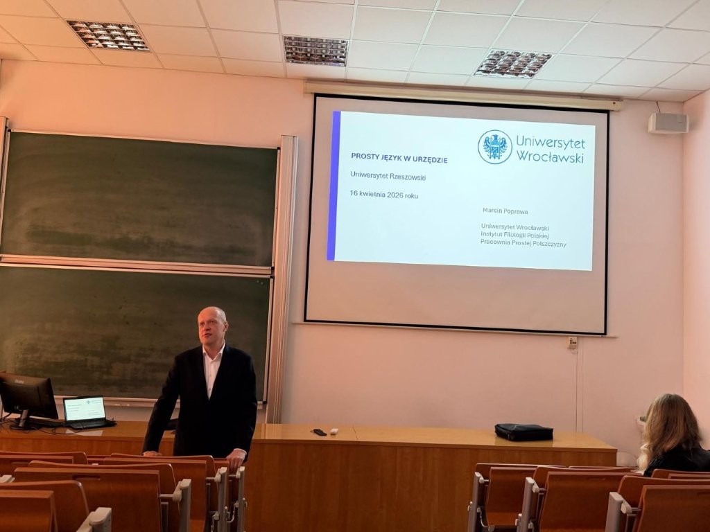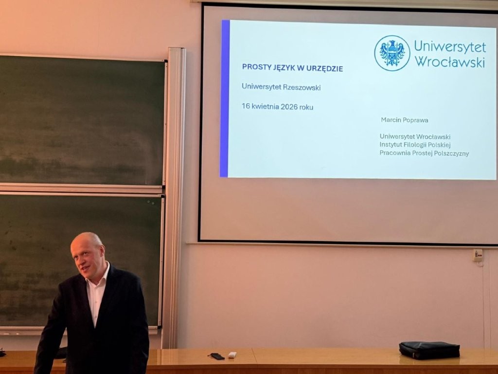 W dniu 16 kwietnia 2026 roku odbyło się kolejne spotkanie w ramach cyklu, którego gościem był dr hab. Marcin Poprawa z Instytutu Filologii Polskiej Uniwersytetu Wrocławskiego. Badacz wygłosił wykład pt. Prosty język w urzędzie, poświęcony współczesnym modelom upraszczania komunikacji administracyjnej oraz ich teoretycznym i praktycznym konsekwencjom dla badań nad komunikacją publiczną.