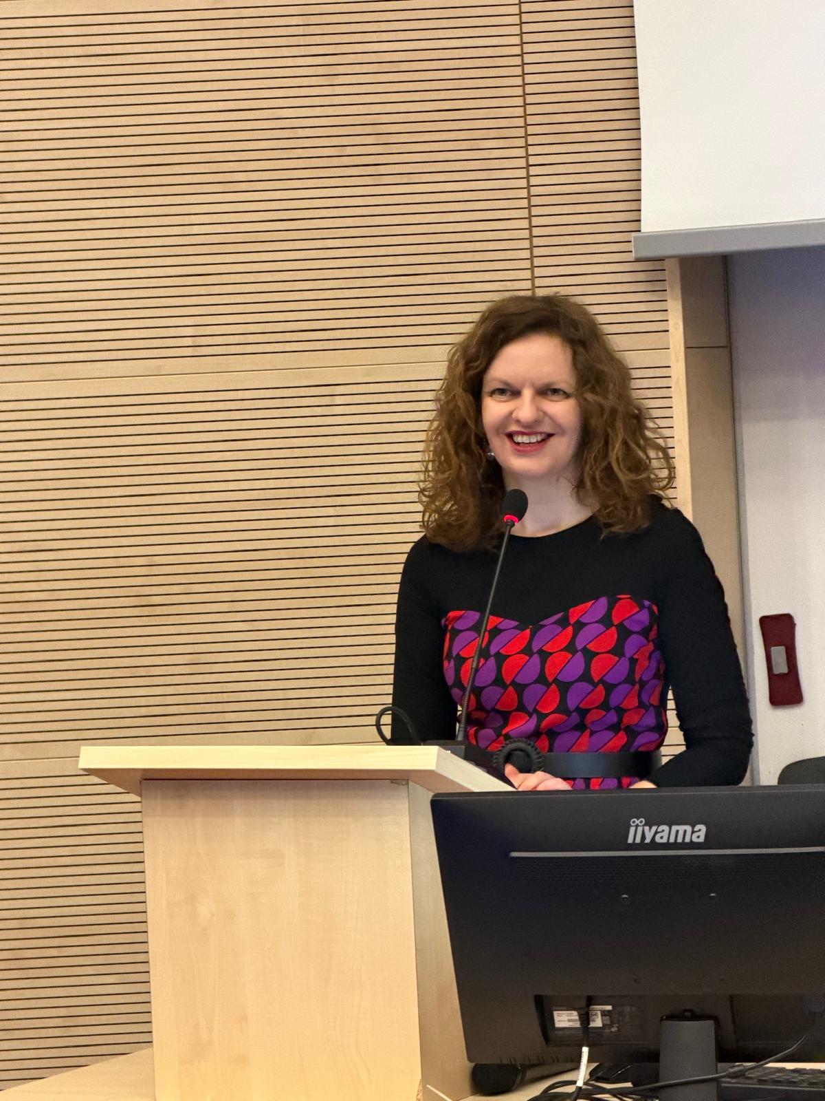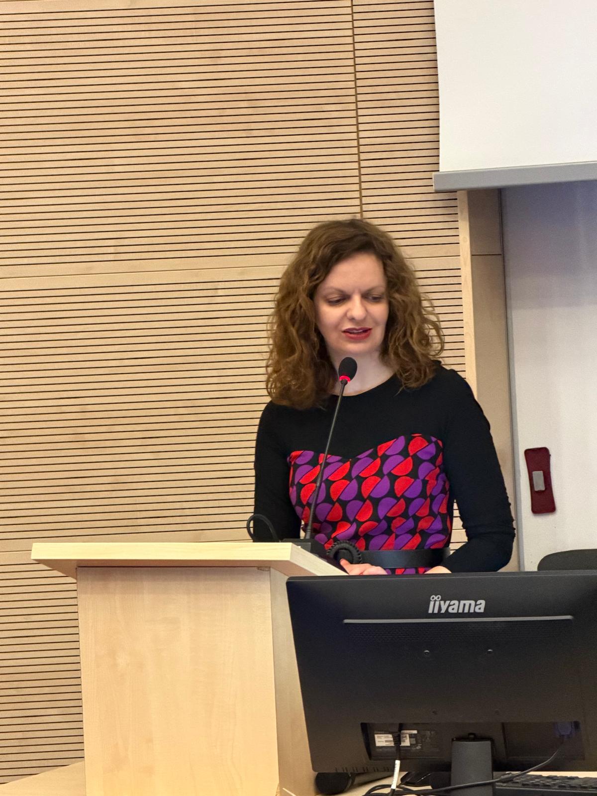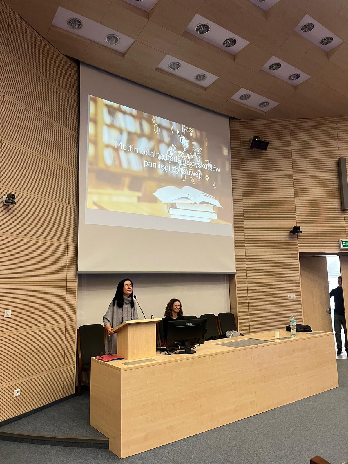 W swoim wystąpieniu badaczka przedstawiła autorskie podejście metodologiczne do analizy dyskursów pamięci zbiorowej. W centrum refleksji znalazło się rozróżnienie między pamięcią zbiorową — rozumianą jako kulturowo utrwalony obraz przeszłości — a pamiętaniem ujmowanym jako dynamiczna praktyka społeczna i komunikacyjna, w ramach której przeszłość podlega nieustannej aktualizacji, reinterpretacji i negocjowaniu znaczeń.