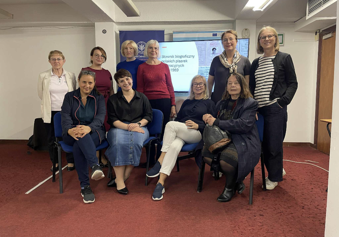 Ważnym punktem pobytu było spotkanie literacko-naukowe zorganizowane 13 września w POSK przez Związek Pisarzy Polskich na Obczyźnie. Wydarzenie moderowała Regina Wasiak-Taylor, prezeska Związku Pisarzy Polskich na Obczyźnie, redaktorka naczelna londyńskiego „Pamiętnika Literackiego”. Podczas spotkania Krystyna Gielarek-Gorczyca przedstawiła założenia projektu, jego dotychczasowe rezultaty oraz wyzwania związane z opracowywaniem biografii pisarek emigracyjnych. Omówiła również kryteria wyboru bohaterek Słownika. Erwina Dybisz zwróciła uwagę na znaczenie projektu w perspektywie dydaktycznej, szczególnie w roku, w którym jednym z priorytetów polityki oświatowej dotyczy rozwijania zainteresowania kulturą i językiem polskim w środowiskach polonijnych. Wspomniała także o rosnącej roli mediów społecznościowych i zasobów internetowych jako źródeł uzupełniających tradycyjne materiały archiwalne. Wystąpienie Anny Jamrozek-Sowy stanowiło symboliczne podsumowanie spotkania. Badaczka podkreśliła możliwości wykorzystania Słownika jako inspiracji do projektów edytorskich i kulturowych, popularyzacji dorobku pisarek zapomnianych. Posłużyła się przykładem krajowych edycji powieści Zofii Romanowiczowej. Przedstawiła także efekty projektu scenograficznego i reżyserskiego pt. „Fartuchy – między autoportretem a portretem” zrealizowanego w Uniwersytecie Artystycznym im. Magdaleny Abakanowicz w Poznaniu, którego „bohaterkami” były dwie autorki prezentowane w słowniku. Każda z trzech prelegentek przybliżyła sylwetki wybranych emigrantek. Wystąpienia uczestniczek spotkały się z dużym zainteresowaniem i stały się punktem wyjścia do ożywionej dyskusji na temat roli kobiet w historii literatury emigracyjnej.