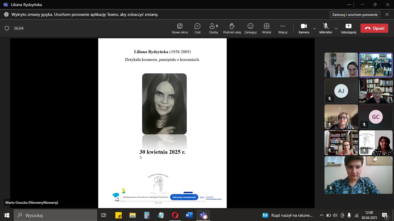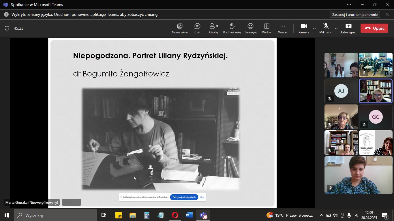 W formule zdalnej w spotkaniu wziął udział zespół projektowy Słownika biograficznego polskich pisarek emigracyjnych 1939–1989 (dr hab. Agata Paliwoda, prof. UR; dr hab. Anna Jamrozek-Sowa, prof. UR; dr Krystyna-Gielarek, dr hab. Anna Wal, prof. UR, mgr Erwina Dybisz). Prof. dr hab. Jolanta Pasterska, kierowniczka projektu, przedstawiła jego założenia oraz stan obecnych prac, podkreślając wagę współpracy z lokalnymi społecznościami, dzięki której możliwe jest dotarcie do źródeł nieuwzględnianych w archiwach instytucjonalnych.