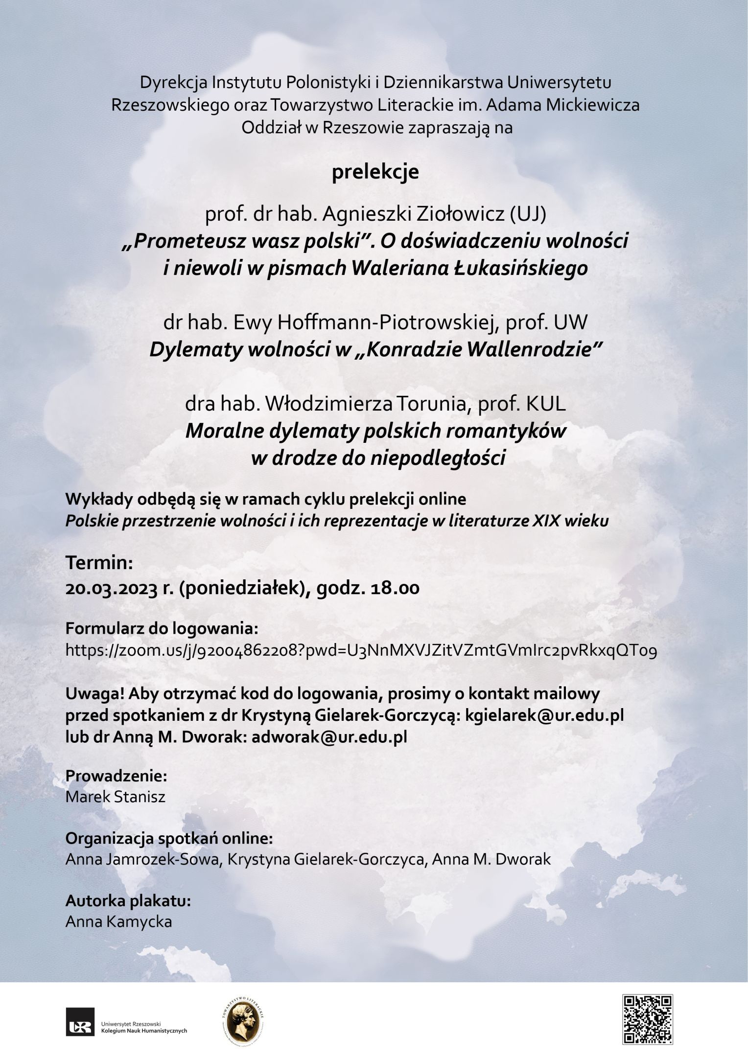 Zaproszenie na prelekcje online z cyklu „Polskie przestrzenie wolności i ich reprezentacje w literaturze XIX wieku”