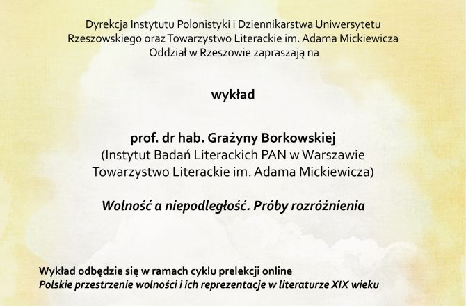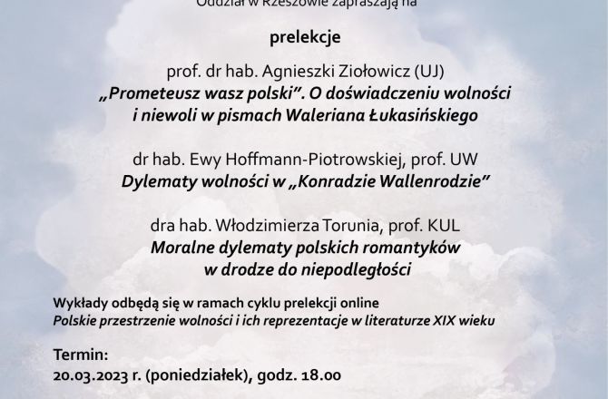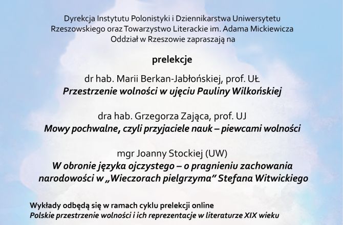 Spotkania Naukowe Instytutu Polonistyki i Dziennikarstwa z cyklu „Polskie przestrzenie wolności i ich reprezentacje w literaturze XIX wieku"