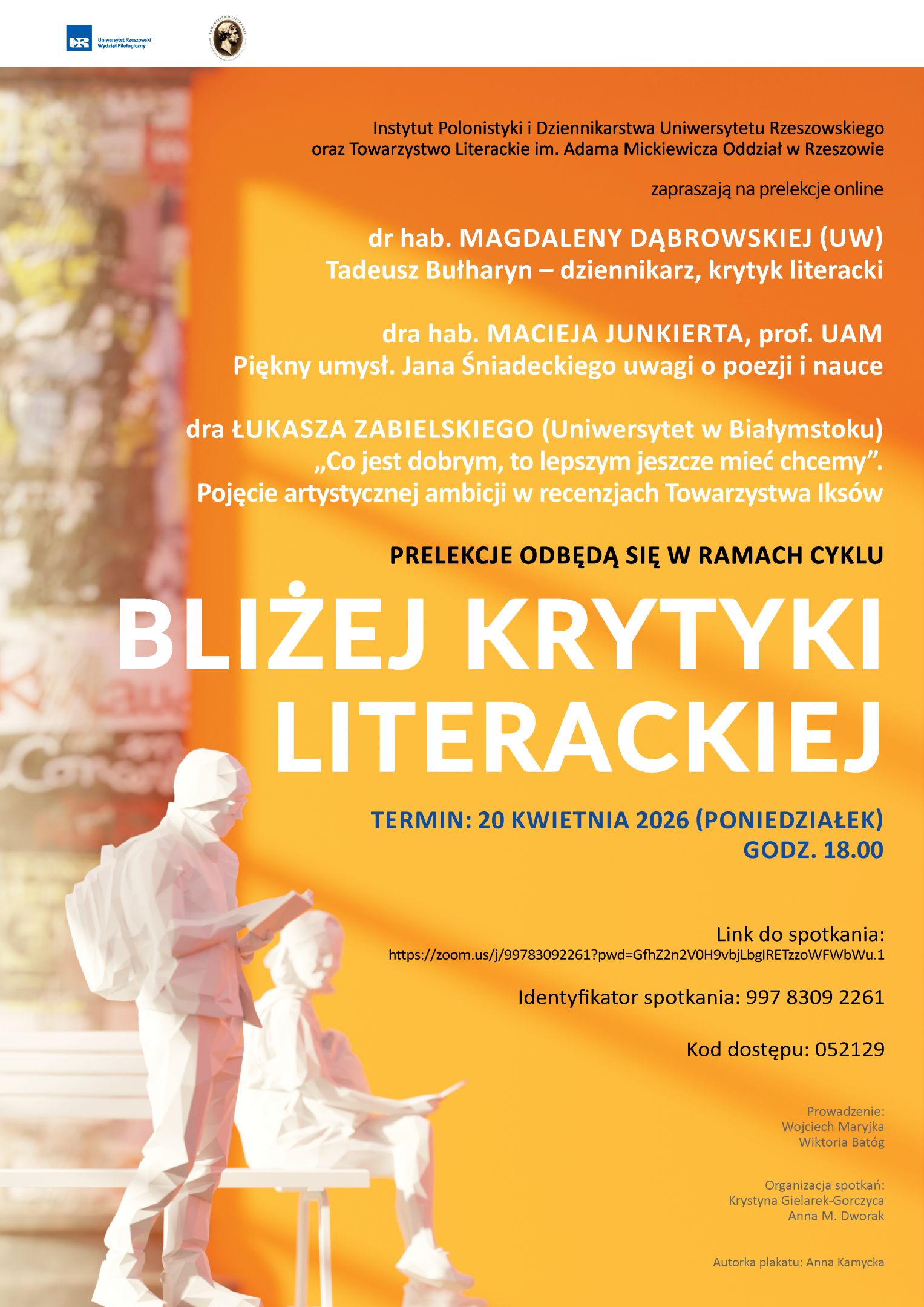 Towarzystwo Literackie im. Adama Mickiewicza oraz Instytut Polonistyki i Dziennikarstwa Uniwersytetu Rzeszowskiego zapraszają na prelekcje: