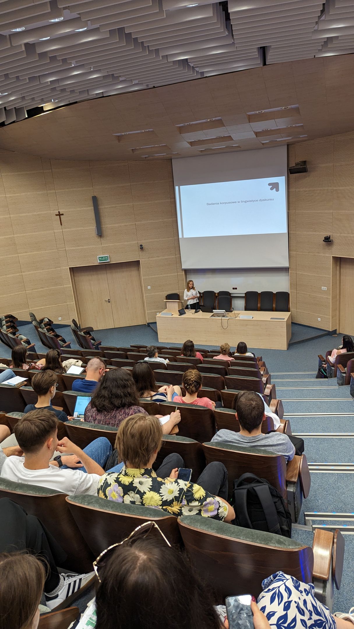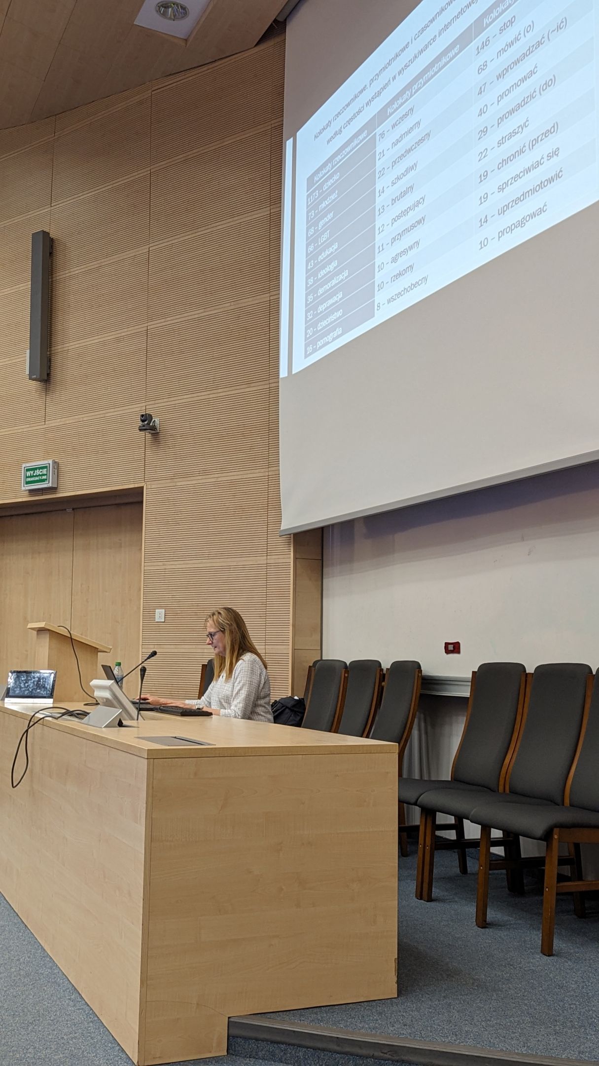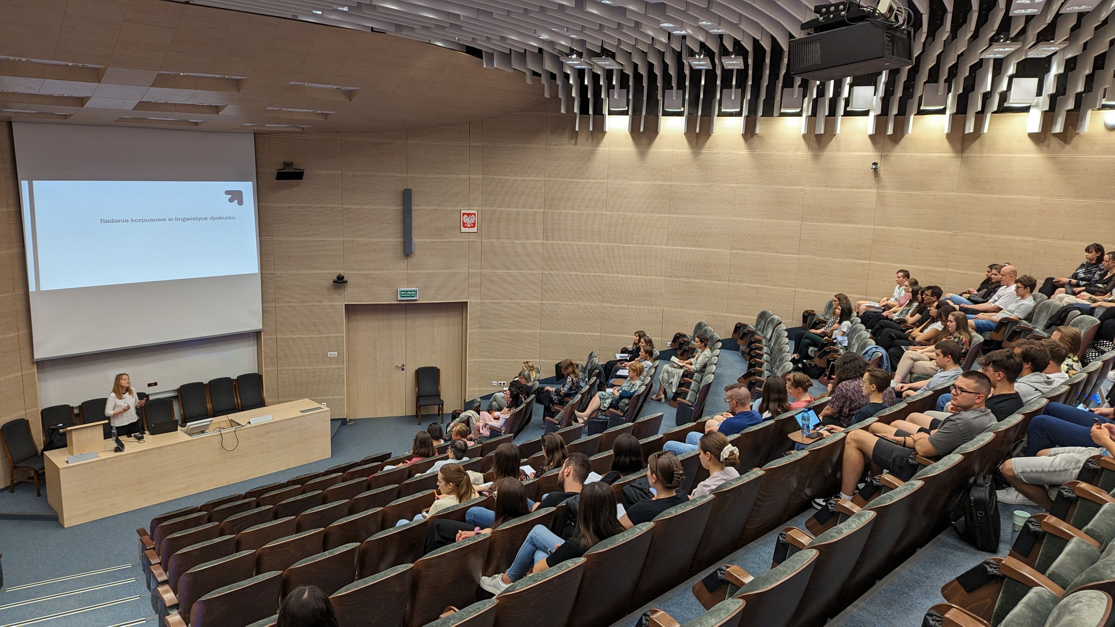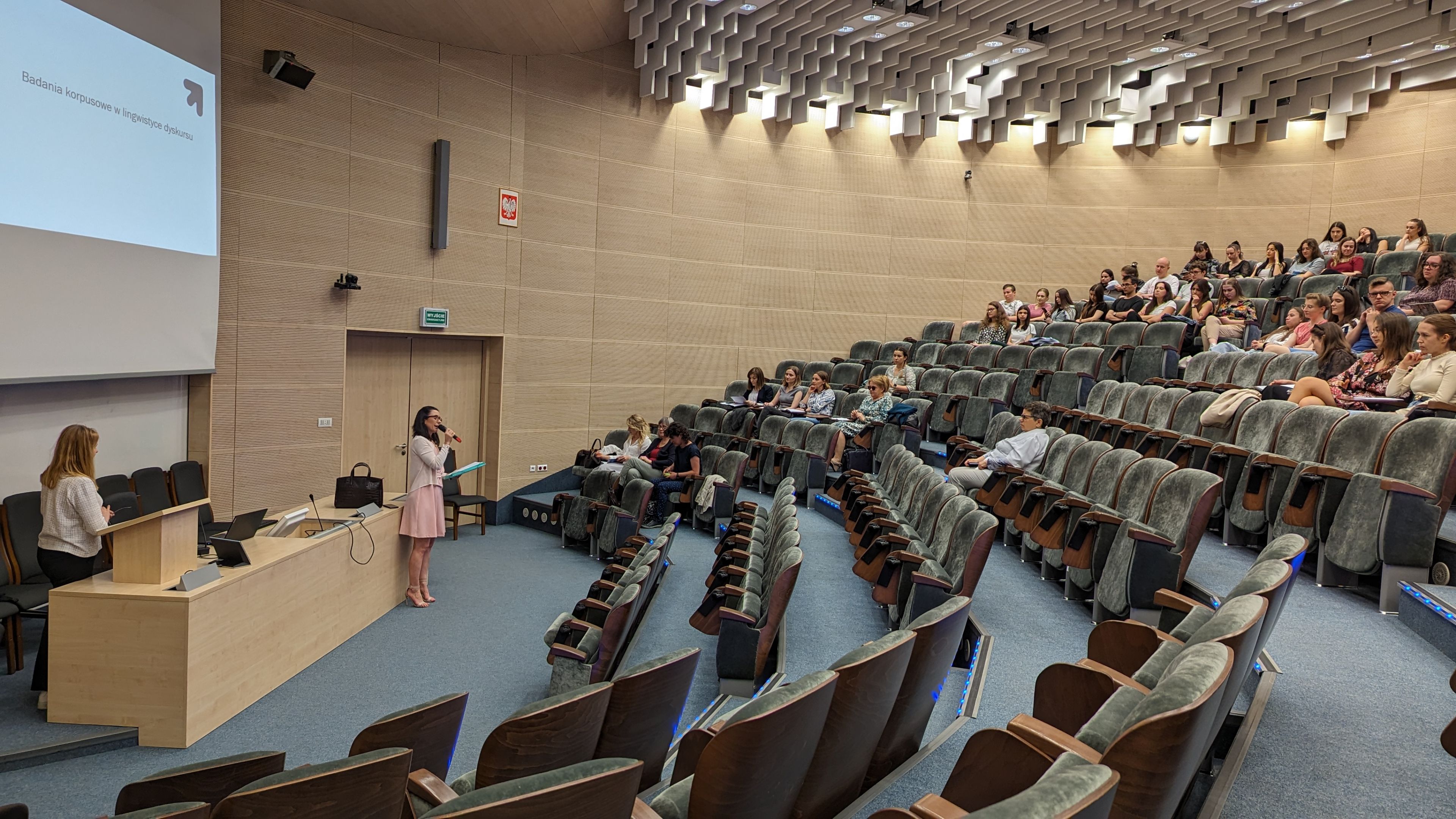 Wykład prof. Ewy Szkudlarek-Śmiechowicz z Uniwersytetu Łódzkiego zatytułowany "Badania korpusowe w lingwistyce dyskursu z użyciem narzędzi i aplikacji usprawniających proces analityczny" zgromadził liczne grono słuchaczy, wśród których znaleźli się pracownicy naukowi, doktoranci i studenci. Prof. Szkudlarek-Śmiechowicz przedstawiła nowoczesne metody i narzędzia stosowane w badaniach korpusowych, podkreślając ich znaczenie w analizie dyskursu.