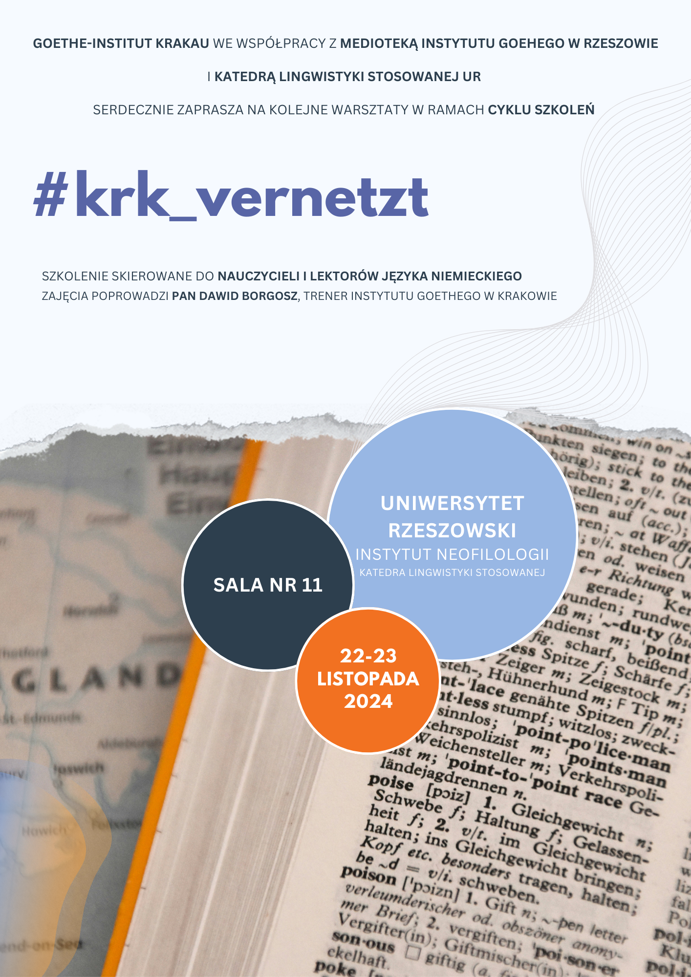 Szkolenie skierowane do nauczycieli i lektorów języka niemieckiego odbędzie się w dniach 22-23.11.2024 na Uniwersytecie Rzeszowskim.